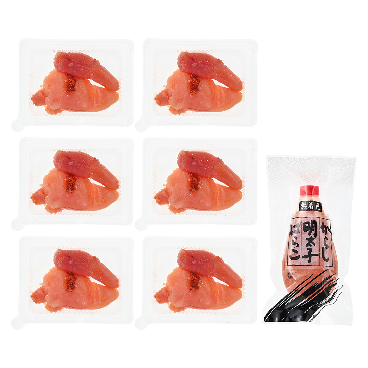 [アレルギー物質特定原材料8品目] なし [商品内容]以下よりお選びください <明太子&明太子チューブ> ・明太子6パック計1.05kg ・明太子チューブ200g <たらこ&明太子チューブ> ・たらこ6パック計1.05kg ・明太子チューブ200g [賞味期限] 出荷時点で賞味期限まで120日以上ある商品をお届けします [保存方法] 開封前:要冷凍(ー18℃以下) 開封後:解凍後は冷蔵庫で保存し、なるべくお早めにご賞味ください [お召し上がり方] 品位を保つために冷蔵庫内の低温で解凍してご賞味ください [注意事項] ※冷凍保存し、賞味期限内にお召し上がりください ※原材料には腹膜が黒い筋状に残り、まれに毛髪のように見える事がありますが、品質には問題ありませんので安心してお召し上がりください [原料原産地] スケトウダラの卵巣(米国産) [原産国] 日本 [原材料] 無着色辛子明太子: スケトウダラの卵巣(米国産)、食塩、米発酵調味料、還元水飴、清酒、唐辛子、鰹節、昆布/調味料(アミノ酸等)、酒精、酸化防止剤(ビタミンC)、香辛料、甘味料(甘草・ステビア)、酵素、発色剤(亜硝酸Na)、(一部に大豆を含む) 無着色たらこ: スケトウダラの卵巣(米国産)、食塩、鰹節、昆布/調味料(アミノ酸等)、酸化防止剤(ビタミンC)、酵素、発色剤(亜硝酸Na) 明太子チューブ: スケトウダラの卵巣(米国産)、食塩、米発酵調味料、還元水飴、清酒、唐辛子、鰹節、昆布/調味料(アミノ酸等)、酒精、酸化防止剤(ビタミンC)、香辛料、甘味料(甘草・ステビア)、酵素、発色剤(亜硝酸Na)、(一部に大豆を含む)