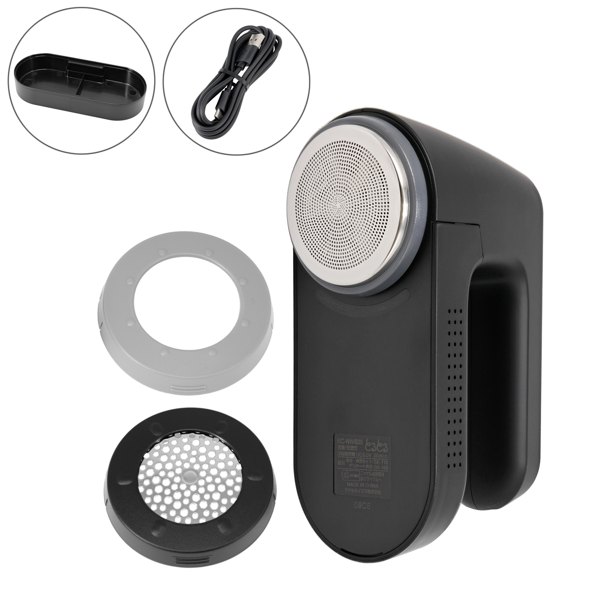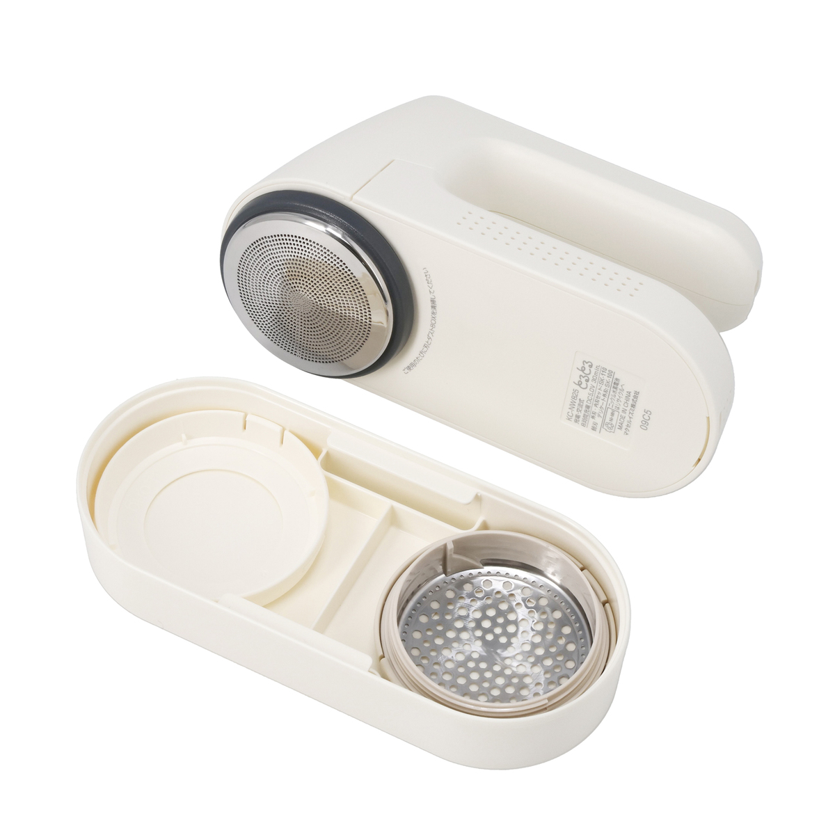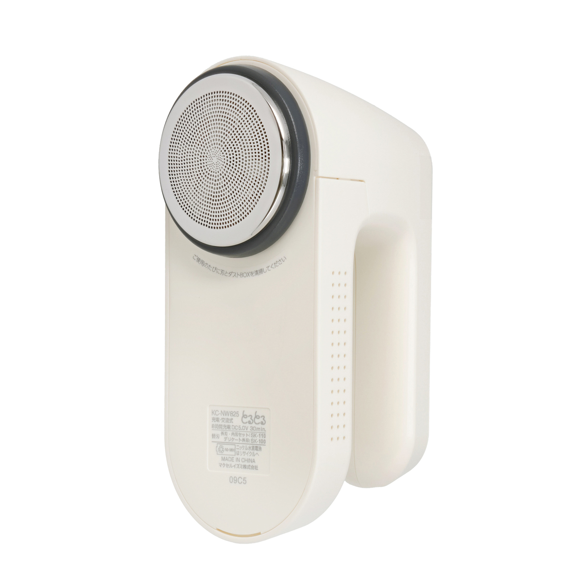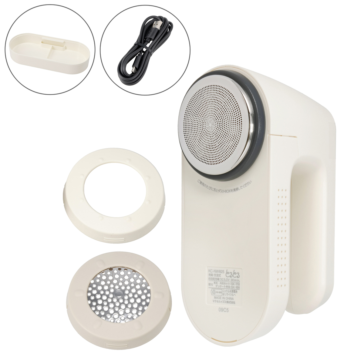 [商品内容] ・本体 ・ふわふわリングShort ・ふわふわリング Long ・外刃(スタンダード外刃) ・充電用USBケーブル(TypeーA to C) ・スタンド ※あらかじめ本体にデリケート外刃は装着されています。外刃・ふわふわリングShortはセットされた状態でスタンドに収納されています。ふわふわリングLongは単体でスタンドに収納されています ※ACアダプターは付属しておりません [サイズ] 幅6.2×奥行9.2×高さ14.5cm(スタンドは除く) [重量] 約197g(外刃・内刃セット、ふわふわリング装着時、スタンドは除く) [充電時間]8時間 ■取り扱い説明を充分にご確認の上、ご使用下さい 【中国製】 [使用方法] 【充電の仕方】 1.スイッチをoffする 2.USB Type-C コネクタを本体に差し込む 3.USB Type-Cコネクタを市販のACアダプターに差し込む 4.コンセントにACアダプターを差込む 5.充電完了後、コンセントからACアダプターを抜きUSB Type-Cコネクタを本体から抜く 【毛玉の取り方】 1.刃部に破れや変形がないか確認 2.平らな所において毛玉を取る場合:セーター、洋服、毛布等の毛玉の取りたい部分を平らな所におき、しわをのばす 着衣状態で毛玉を取る場合:セーター、洋服など毛玉を取りたい部分のしわをのばす ※着衣状態で毛玉を取るときは必ずふわふわリングを装着 ◆平らな所での毛玉取り スイッチモード:CareまたはPower ふわふわリング:使用するまたは使用しない ◆着衣状態での毛玉取り スイッチモード:Care ふわふわリング:必ず使用する 3.ふわふわリングを選ぶ。ふわふわリングを使用しない場合ははずす 調節目安 Long:毛足が長い生地、極太の毛糸のセーターなど。Short:毛足が中程度から短い生地、並太の毛糸のセーターなど。ふわふわリングなし:ジャージ、トレーナー等 【ふわふわリングの着脱方法】 取り付け方:カチッというまではめこむ 【取り外し方】 両手の指かけに指をかけて引っ張る 4.用途に応じてスイッチをCareまたはPowerにする。Care:おしゃれ着等の繊細な衣類の毛玉を風合いを残しながら取るとき、着衣状態で取るときに適する。Power:通常の毛玉取りに適する ◆デリケート外刃の使い方 デリケート外刃を使用することでストッキングやタイツ、薄手の衣類にも使用可能。衣類を平らな所において使用する。ほつれのある生地に使用しない 20デニール以下、レースまたは刺繍部分に使用すると生地を傷めたり穴が空く恐れがあるので注意する 使用生地:薄手の衣類、ストッキング、タイツ等 スイッチモード:careまたはPower ふわふわリング:使用しない 5.刃部を強く押しつけずに浮かせぎみにゆっくり毛玉を取る [注意事項] ※刃を強く押しつけたり、何度も反復しない ※モヘヤ・アンゴラ等の毛足の長い製品に使用しない ※生地に皺がある状態で使用しない ※絡まった繊維が小さく玉状になっていないものを取らない ※くつした等の伸縮性の高いもの及びレース、刺繍部分に使用しない ※縫い合わせ部分や編み込みの部分など生地が凹凸になっている部分に使用しない ※高額・貴重な衣類に使用しない ※分解・修理・改造をしない ※本体を水につけたり、水をかけたり、水洗いしない ※お手入れの際はUSBケーブル・ACアダプターをコンセントから抜く ※濡れた手で抜き差ししない ※充電用USBケーブルが傷んでいるときは使用しない ※充電用USBケーブルを傷つけたり、無理に曲げたり、引っ張ったり、ねじったり、束ねたり、重い物を乗せたり、挟み込んだり、加工したり、本体に巻きつけた状態で保管しない ※ご使用前に刃の破れや変形がないか確認し、異常がある場合は使用しない ※交流式で使用する場合と充電中以外はUSBケーブル・ACアダプターをコンセントから抜く ※ダストBOXをはずした状態でスイッチをCareまたはPowerにしない ※内刃の刃先は鋭いので取扱いに注意する ※外刃をはずすときや取り付けるときは必ずスイッチをoffにする ※外刃は薄いので表面を強く押したり、固い物にぶつけないようにする ※コネクタにピンやゴミを付着させない ※毛玉取り以外の用途に使用したり、業務用として使用しない ※落としたり、ぶつけたりしない ※外刃と内刃はセットで正しく取り付ける ※子供の手の届くところに置かない ※他の商品のUSBケーブルは取付できない場合があります ※シンナーやベンジン等を使用するとプラスチック部分を傷めるとともに火災や感電の恐れがあるためおやめください ※周辺温度が5℃以下または35℃以上の場所、直射日光の当たる場所、暖房器具や白熱灯などの発熱体の近くでは充電しない ※充電時間が短くなるとともに火災や感電、本体の変形などが起こる可能性があります ※充電中の外出はやめる
