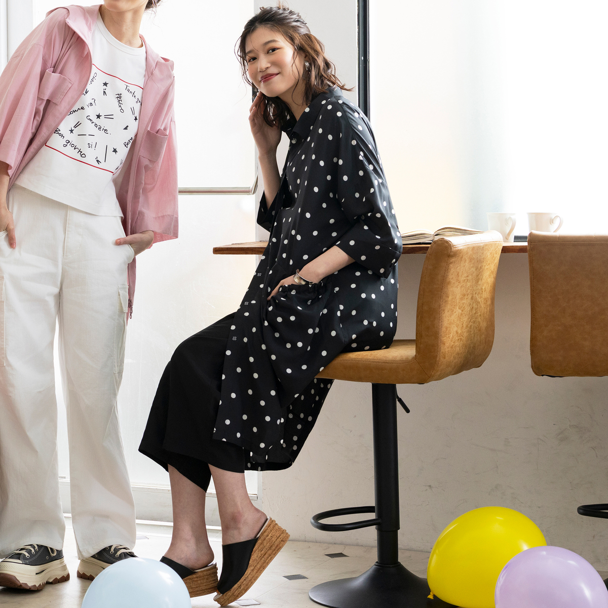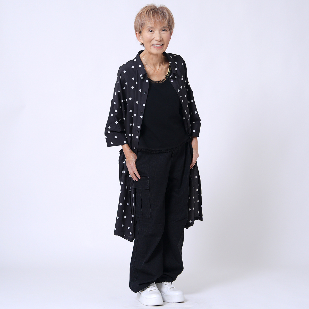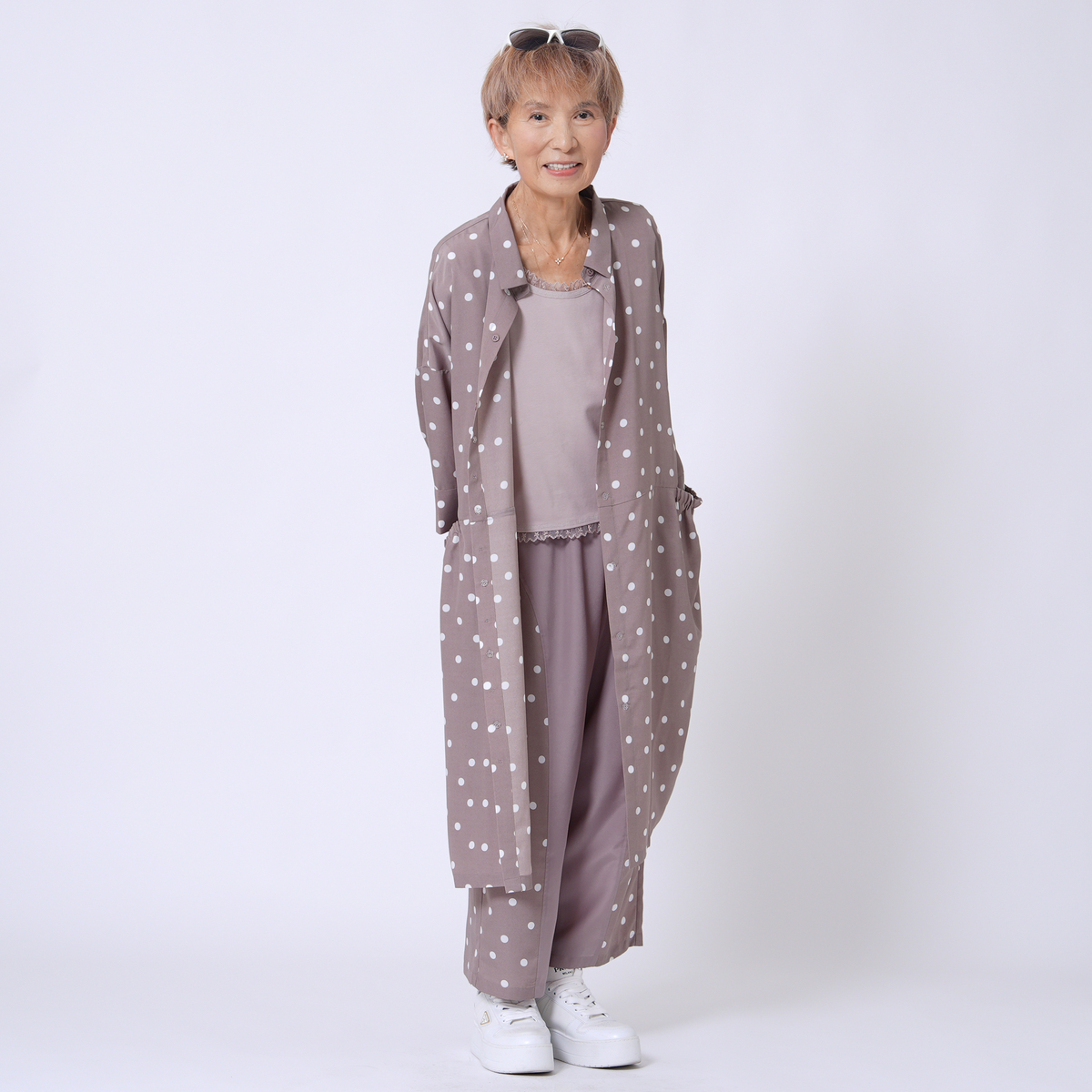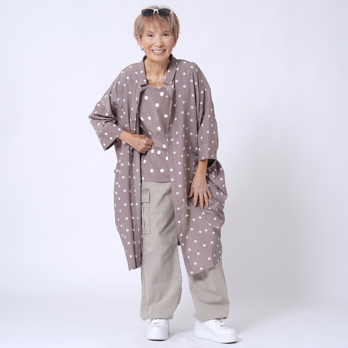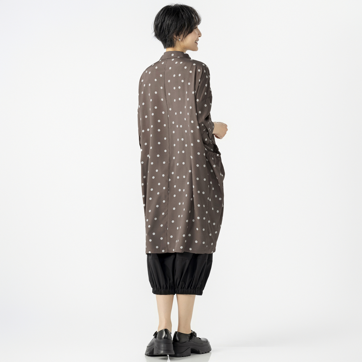[商品寸法(ヌード)cm] サイズ バスト 着丈 S : 134(74〜82) 94.5 M : 140(81〜89) 96.5 L : 146(88〜96) 97.5 LL : 152(95〜103) 98.5 3L : 160(102〜110) 99.5 サイズ 裄丈 S : 60 M : 61.5 L : 63 LL : 64.5 3L : 66 [素材] ポリエステル100% [仕様] ボタン・ホック:有 ファスナー:無 ポケット:有(両脇) スリット:無 [お手入れ] 洗濯機洗い可 [注意事項] ※商品寸法の誤差は多少発生します。ご了承下さい ※洗濯後はすぐに脱水し、形を整えて干して下さい。長時間、水につけたままにしないで下さい ※濃色製品は着用中の摩擦により色移りすることがあります。また、雨や汗等で濡れた状態で着用すると色移りすることがあります。その際はお早めに洗濯をして下さい ※洗濯・クリーニングの際、色落ちすることがありますので他の物と分けて洗って下さい ※デリケートな素材を使用していますので、爪やアクセサリーなどの引っ掛かりによりキズがつきやすくなっております。縫目や生地を強く引っ張らないよう注意して下さい ※過度な引っ張りを受けると縫い目が開くことがありますので、取扱いには注意して下さい <ブラウス(ブラックドット・ネイビードット・ローズグレードット)> ※この製品は生地の表面にプリントを施しています。生地の構造上、細かなひきつれが見られる場合がありますが、製品の特徴としてご理解下さい ※強い力が加わると細かなひきつれや、糸返りによる筋が発生します。摩擦や引っ掛かりにご注意下さい 【中国製】