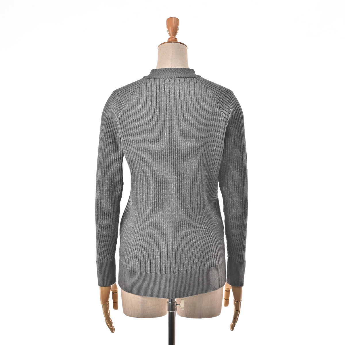 No. 751202 calma デザインボタンアクセント ラメリブニットカーディガン