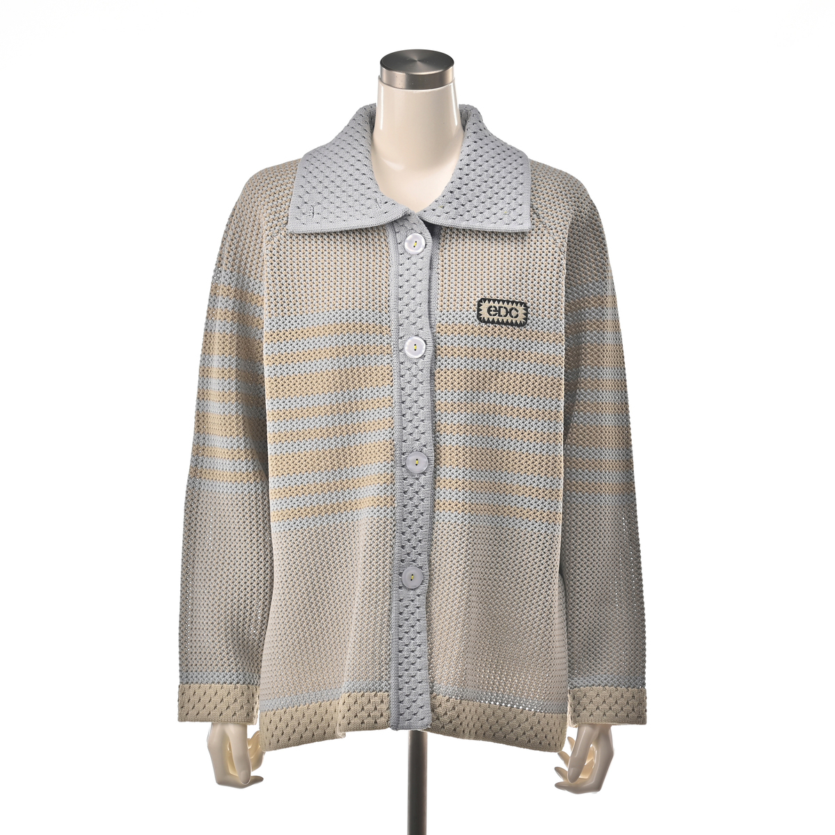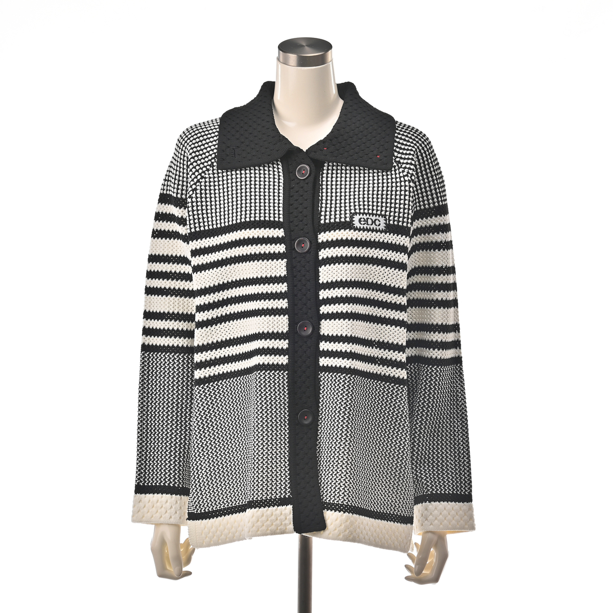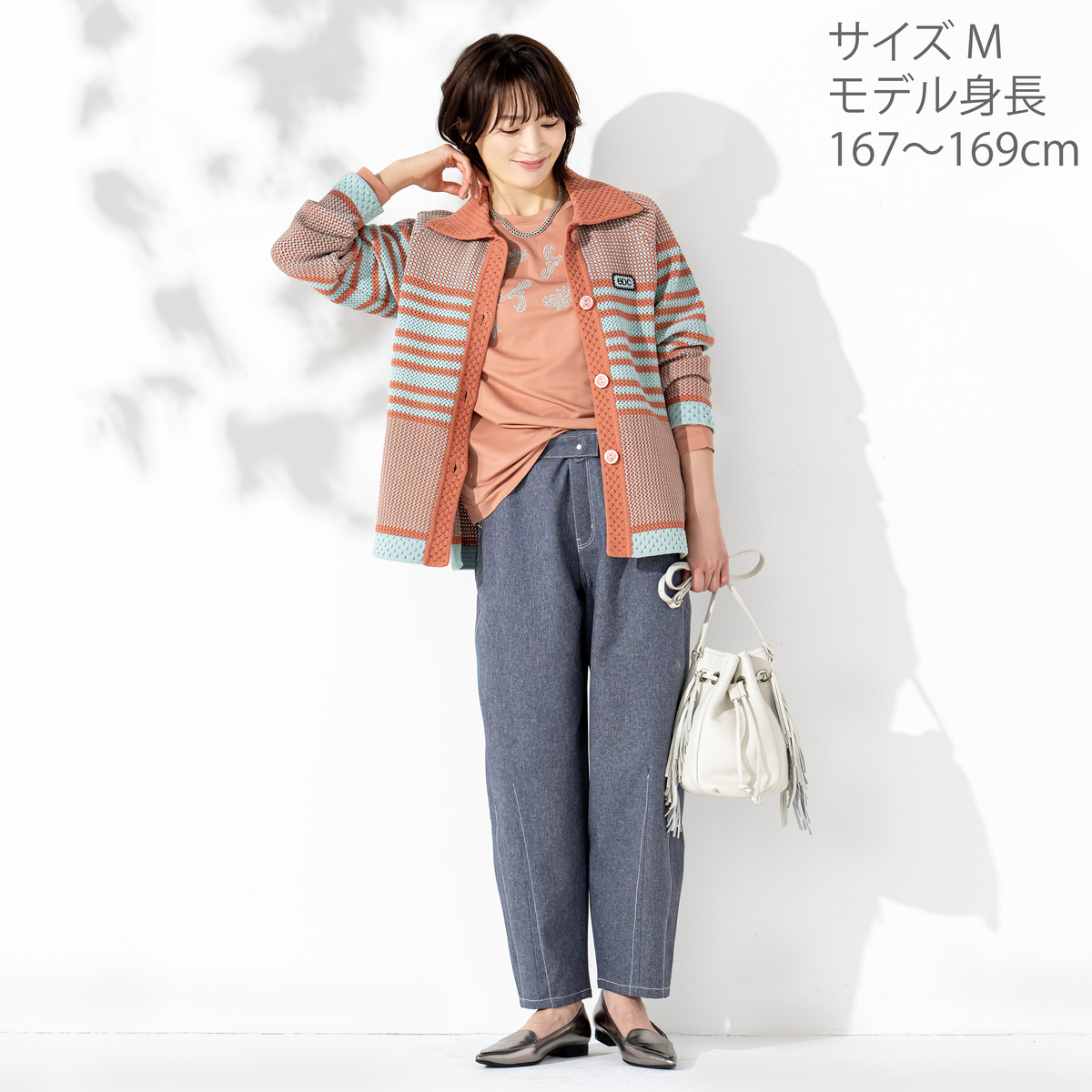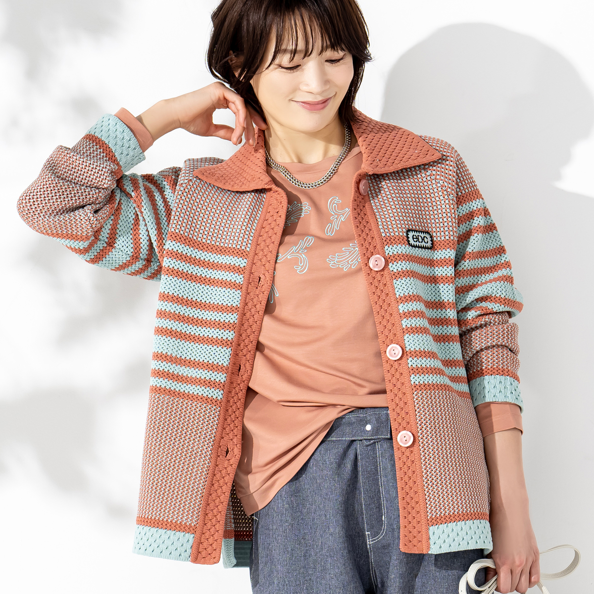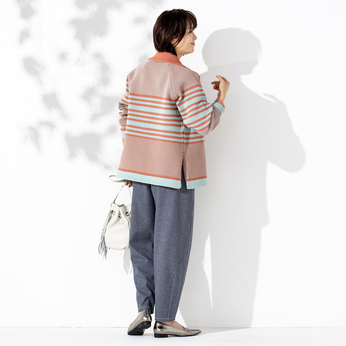 No. 751208 calma モスステッチ編み ライトなボーダーニットカーデ