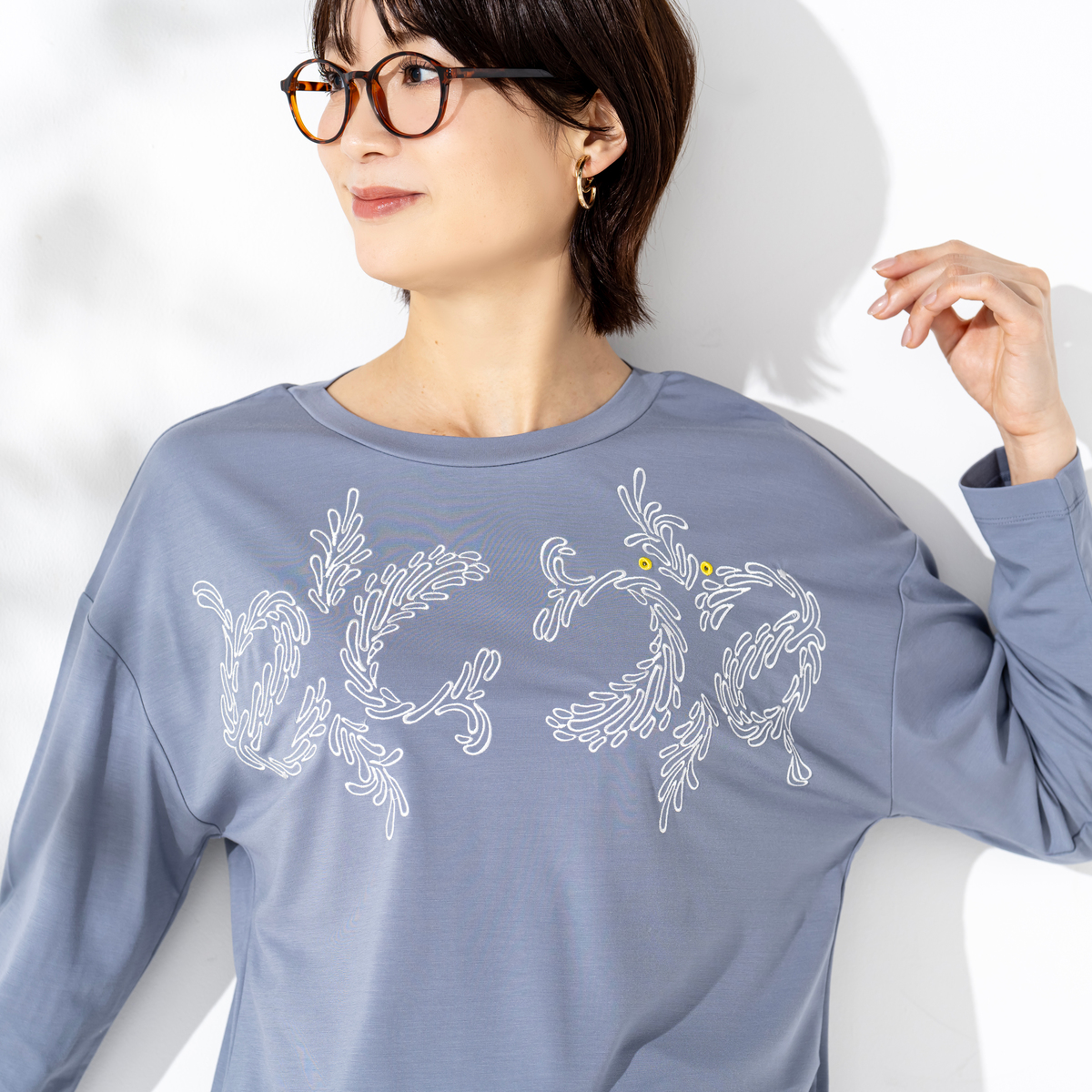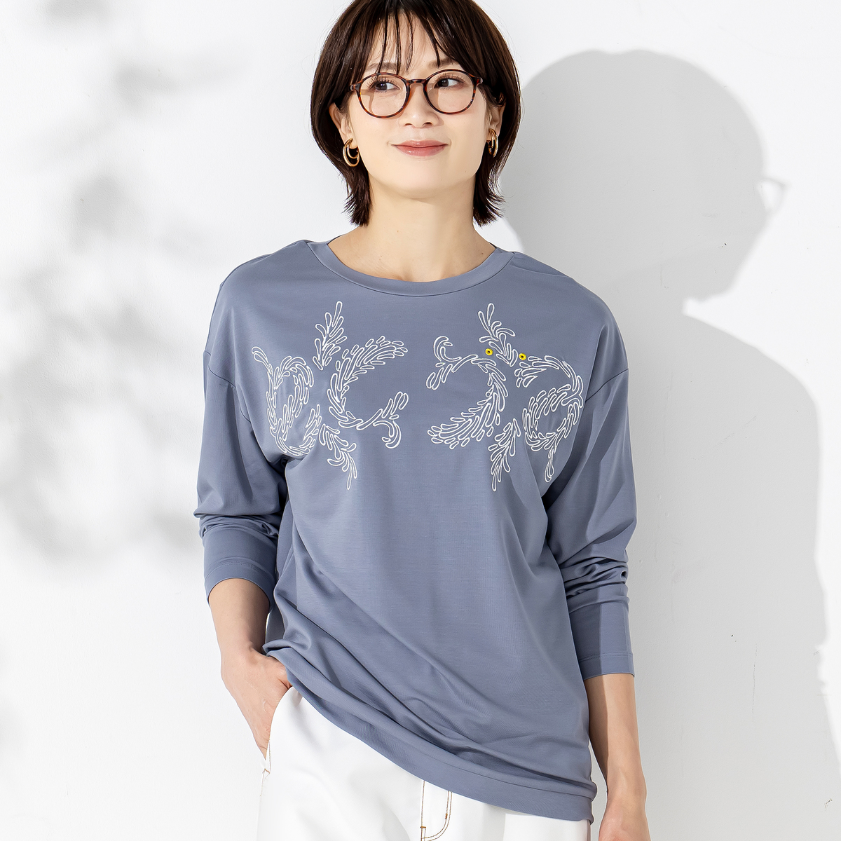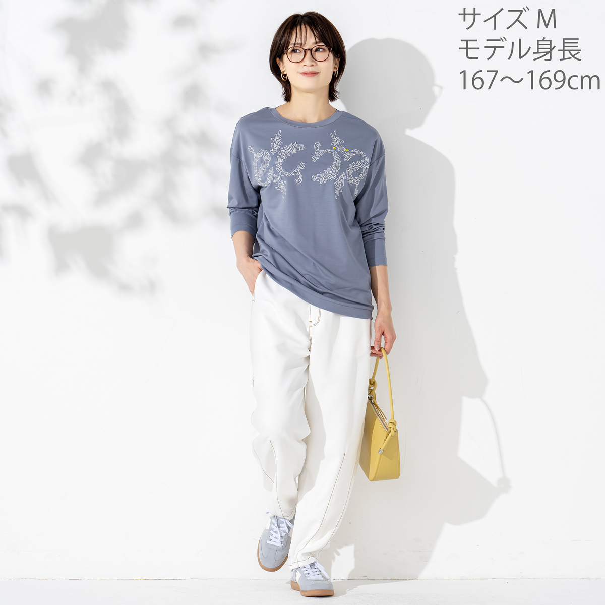 No. 751213 calma リーフモチーフ刺繍プルオーバー
