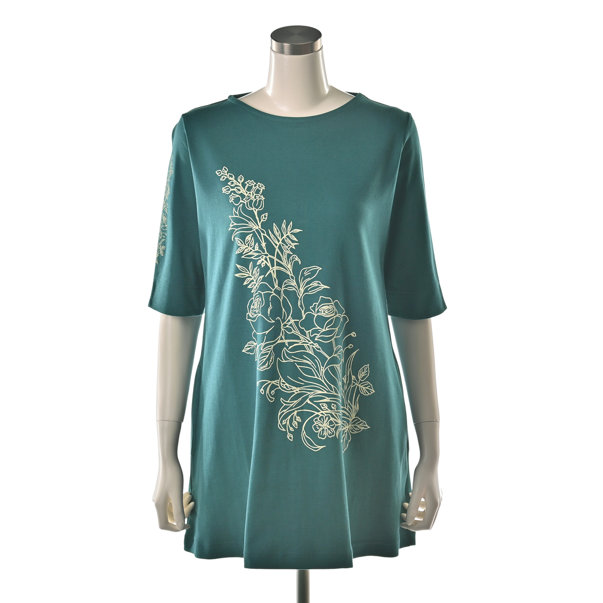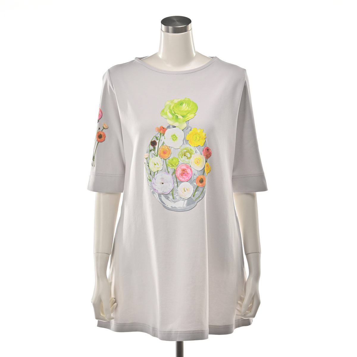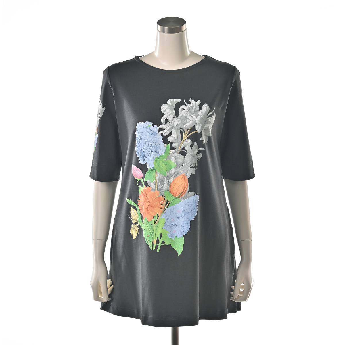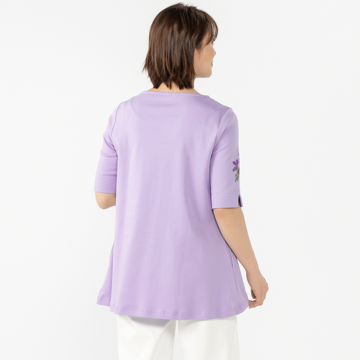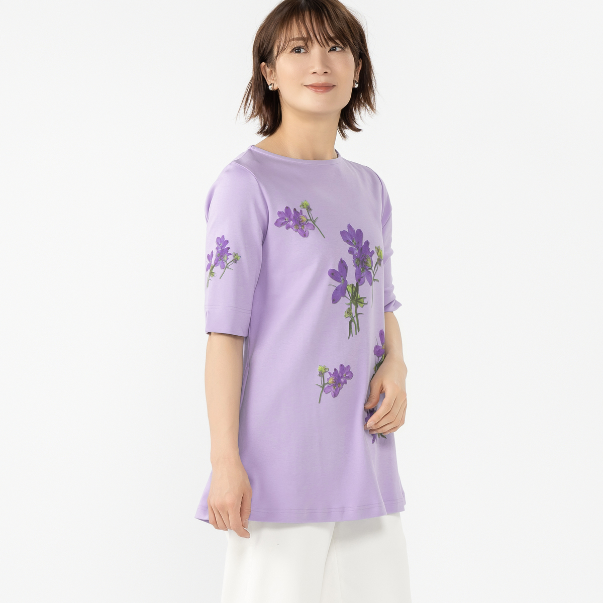 美しいお花をモチーフにしたチュニック。緻密に計算されたネックラインが胸元を美しく見せ、裾に向かって緩やかに広がるデザインが上品な雰囲気に。ヒップラインまでしっかりカバーしてくれる長さで、両脇にはポケット付きです