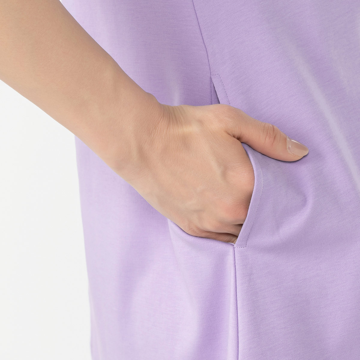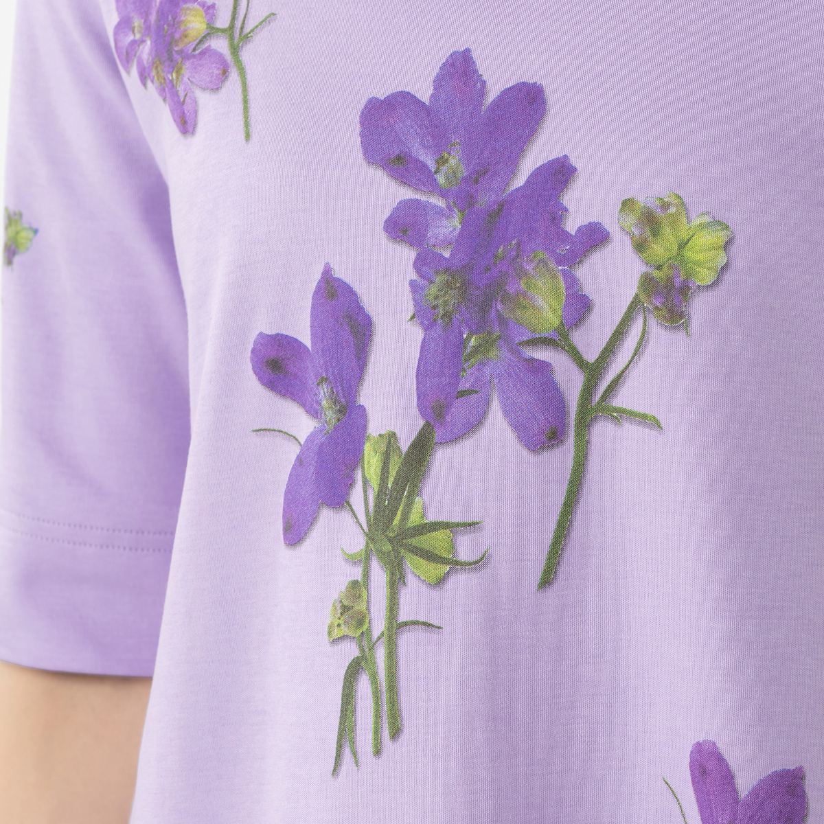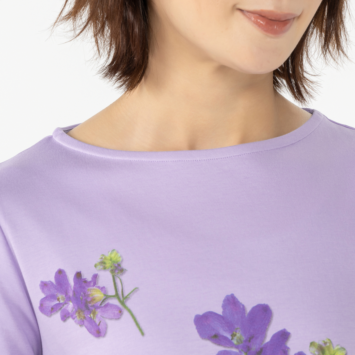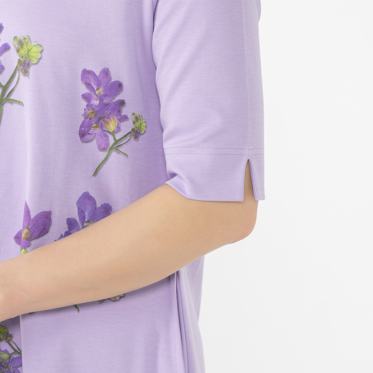 プリントは、きれいなグラデーションを映し出した繊細で手の込んだつくり。綿100%で肌触りが良く着やすいのも魅力です。シルケット加工・バイオ加工を施すことで毛羽立ちが抑えられ、生地色やプリントがきれいに。風合いがよく、しなやかで軽い着心地です