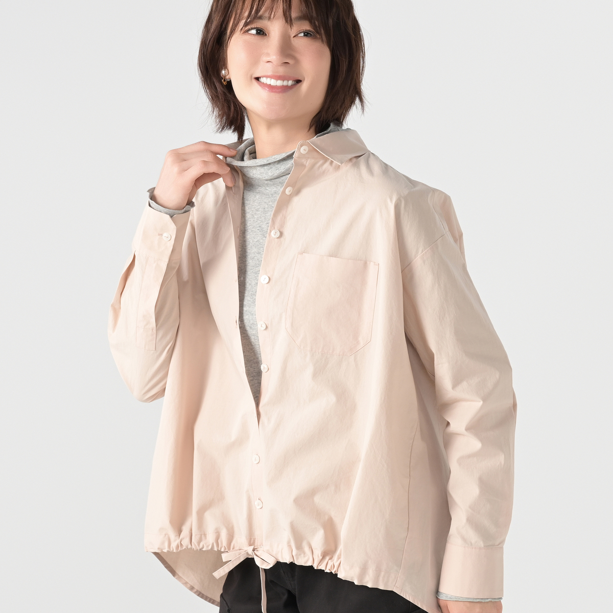 様々なコーデに活躍してくれるシャツブラウス。フロントの裾にあしらったドロストでシルエット変化が楽しめます