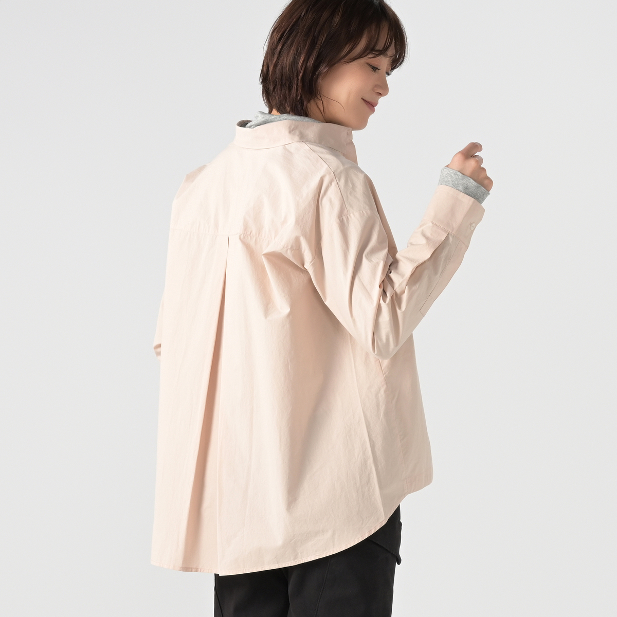 ややコンパクトに仕上げた衿もポイント。重ね着もしやすく、着回しやすい1枚です