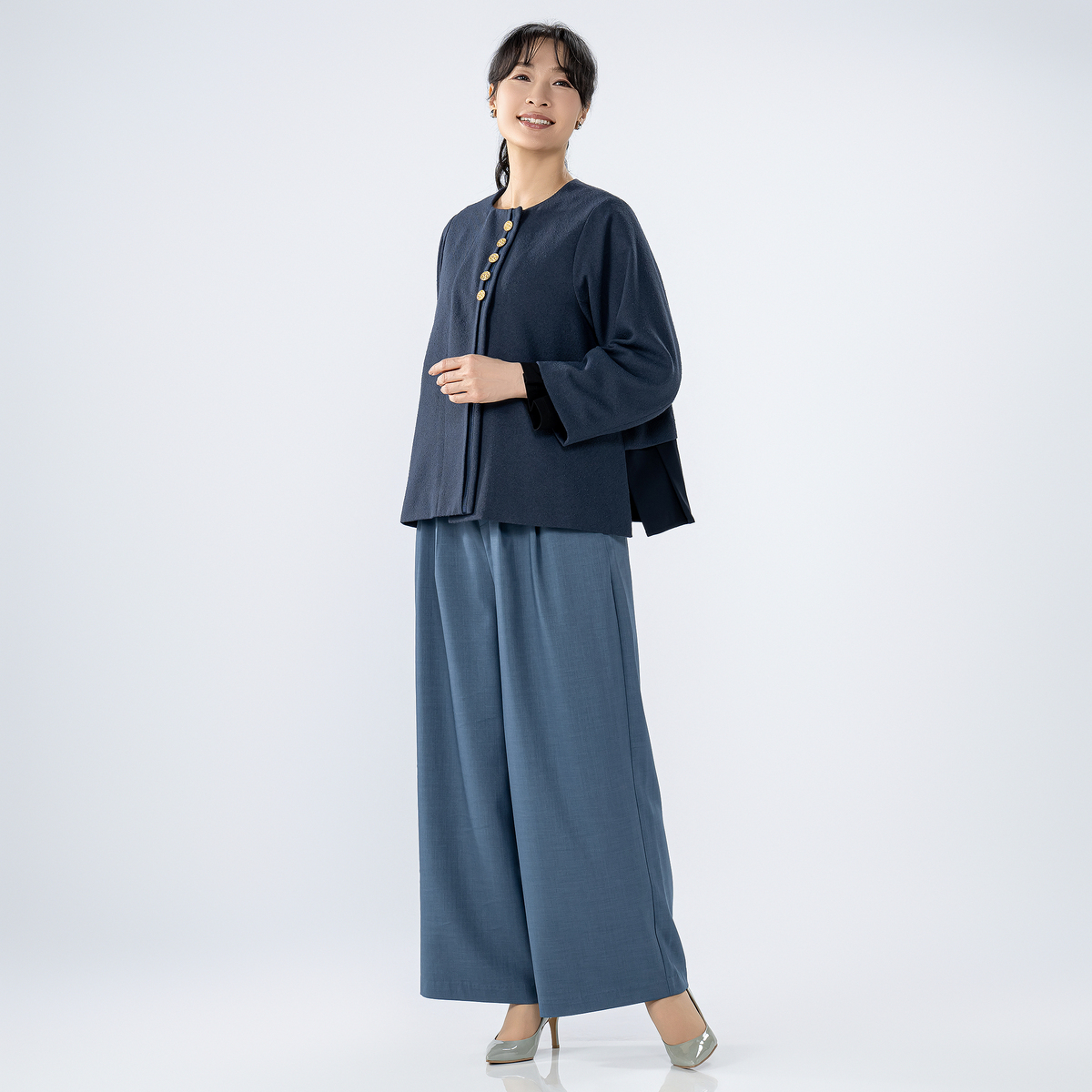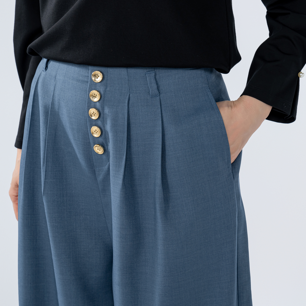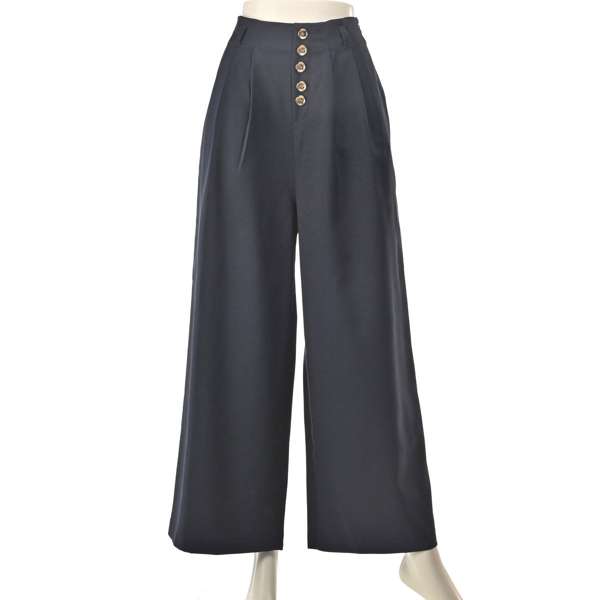 フロントに並んだボタンがポイントのワイドパンツ。様々なトップスと合わせやすく、上品なコーディネートが楽しめます