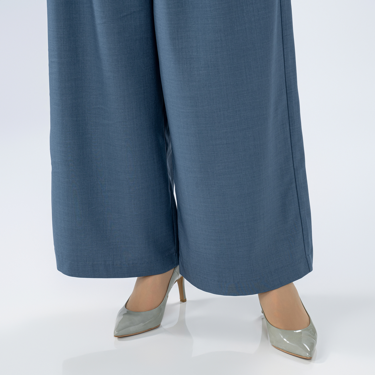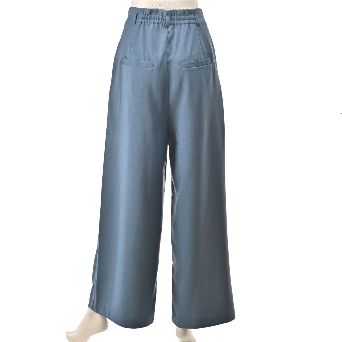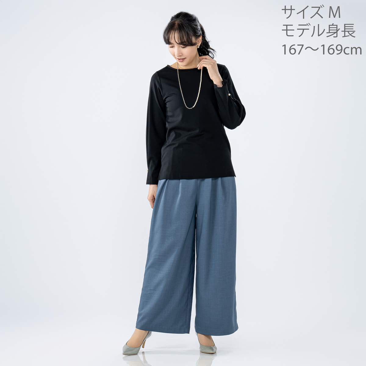 脚をすっきり見せてくれるワイドなシルエット。ウエストは後ろ一部にゴムを使い、穿き心地良く仕上げました