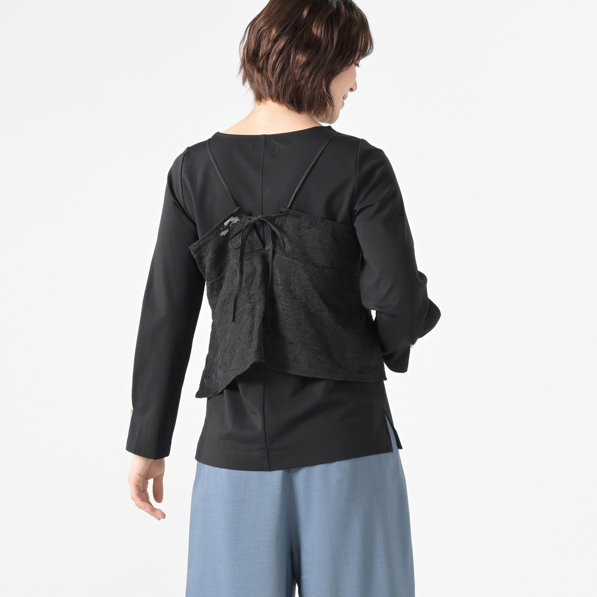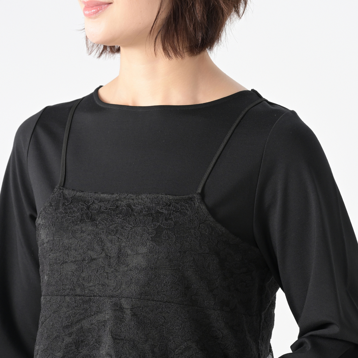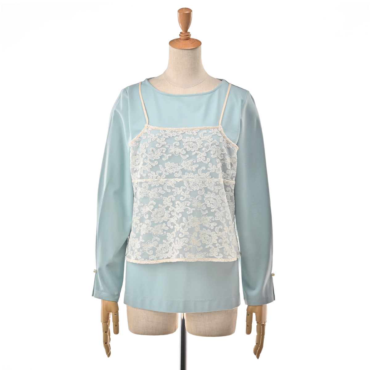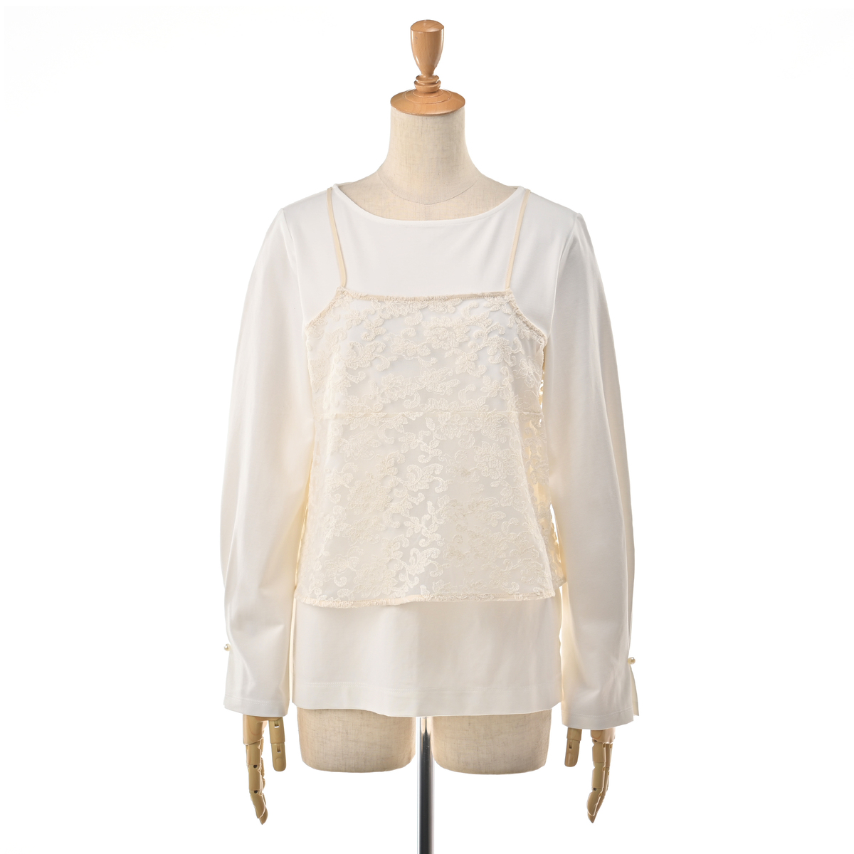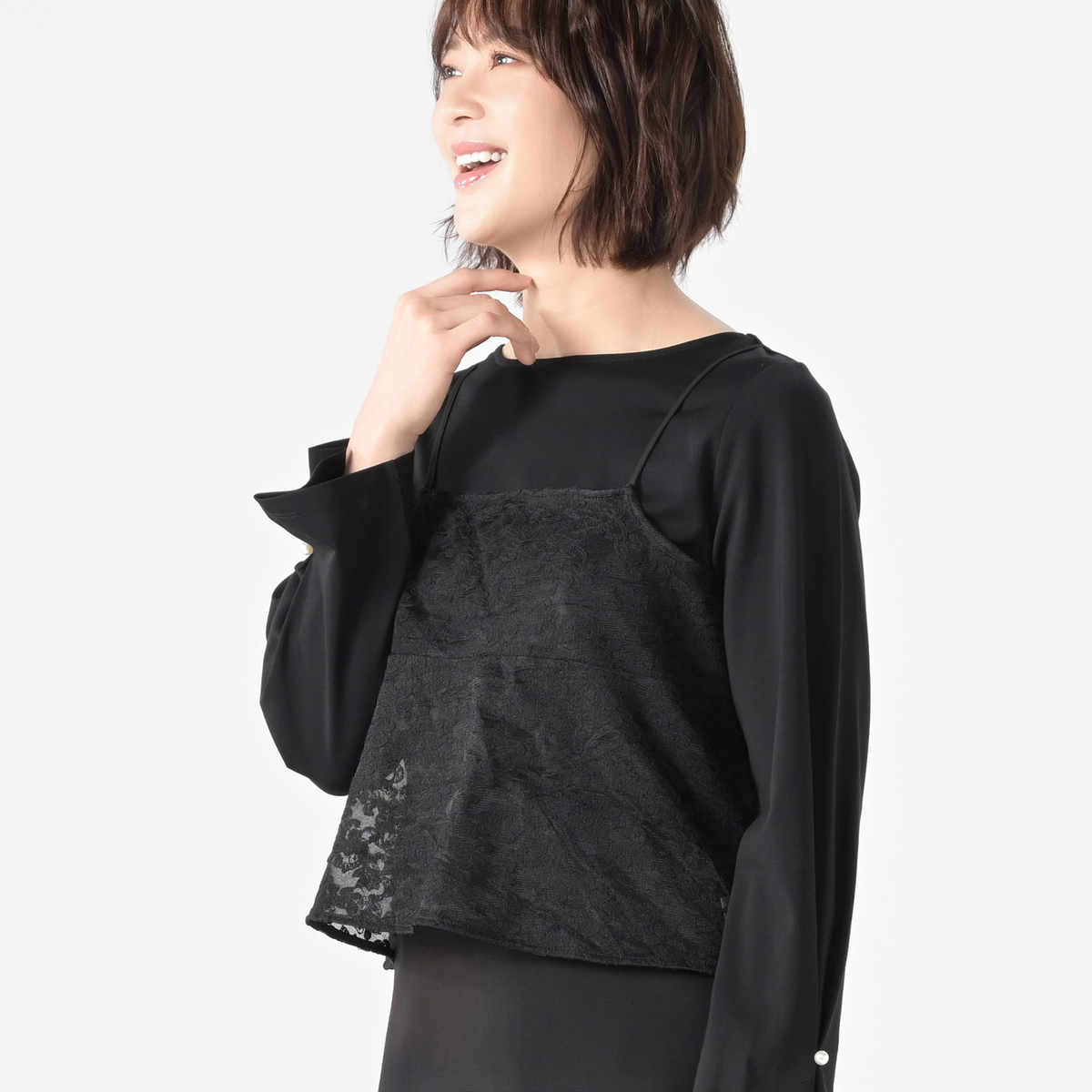立体感のあるレースのキャミソール付きプルオーバー。重ねることで華やかなレイヤードコーデが楽しめます