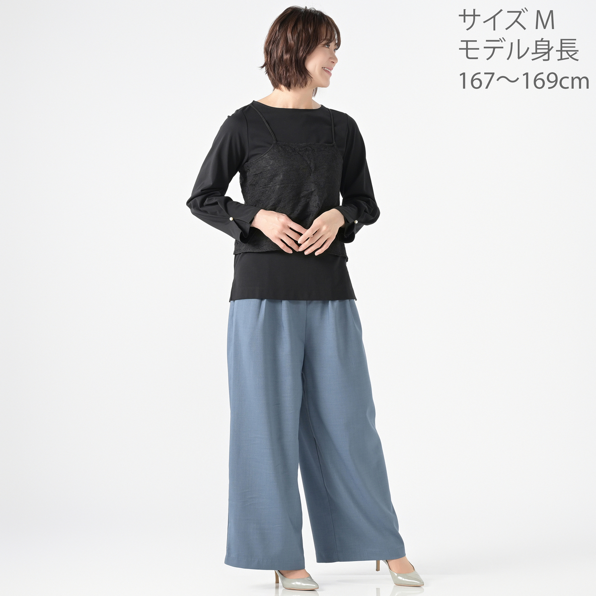 <プルオーバー> [商品寸法(ヌード)cm] サイズ バスト 着丈 S : 88(72〜80) 61 M : 92(79〜87) 61 L : 97(86〜94) 62 LL : 103(93〜101) 62 3L : 109(100〜108) 62 サイズ 肩幅 袖丈 S : 35 55.5 M : 36 55.5 L : 37 56.5 LL : 38 56.5 3L : 39 57.5 [素材] レーヨン65% ナイロン30% ポリウレタン5% <キャミソール> [商品寸法(ヌード)cm] サイズ バスト 着丈 S : 88(72〜80) 28 M : 92(79〜87) 28 L : 97(86〜94) 29 LL : 103(93〜101) 29 3L : 109(100〜108) 29 [素材] <本体> 基布:ナイロン100% 刺繍糸:上糸 綿100% 刺繍糸:下糸 ポリエステル100% <別地> ポリエステル95% ポリウレタン5% <共通> [お手入れ] 洗濯機洗い可 [注意事項] ※商品寸法の誤差は多少発生します。ご了承下さい ※淡色製品には蛍光増白剤入り洗剤を使用しないで下さい ※洗濯後はすぐに脱水し、形を整えて干して下さい。長時間、水につけたままにしないで下さい ※洗濯・クリーニングの際、色落ちすることがありますので他の物と分けて洗って下さい ※ドライクリーニングの際は洗濯ネットを使用して下さい ※濃色製品は着用中の摩擦により色移りすることがあります。また、雨や汗等で濡れた状態で着用すると色移りすることがあります。その際はお早めに洗濯をして下さい ※肌が敏感な方は刺激を感じることがあります。その場合は素肌への着用はお避け下さい ※アイロン時にはあて布を使用して下さい ※装飾部分にはアイロンを当てないで下さい ※洗濯ネットを必ず使用して下さい ※この製品は、光により退色しやすいので太陽光や蛍光灯等が長時間当たる所で保管しないで下さい ※着用時にベルトやバッグ、周囲の壁など、表面の粗いものとの摩擦や引っかかりに注意して下さい 【中国製】