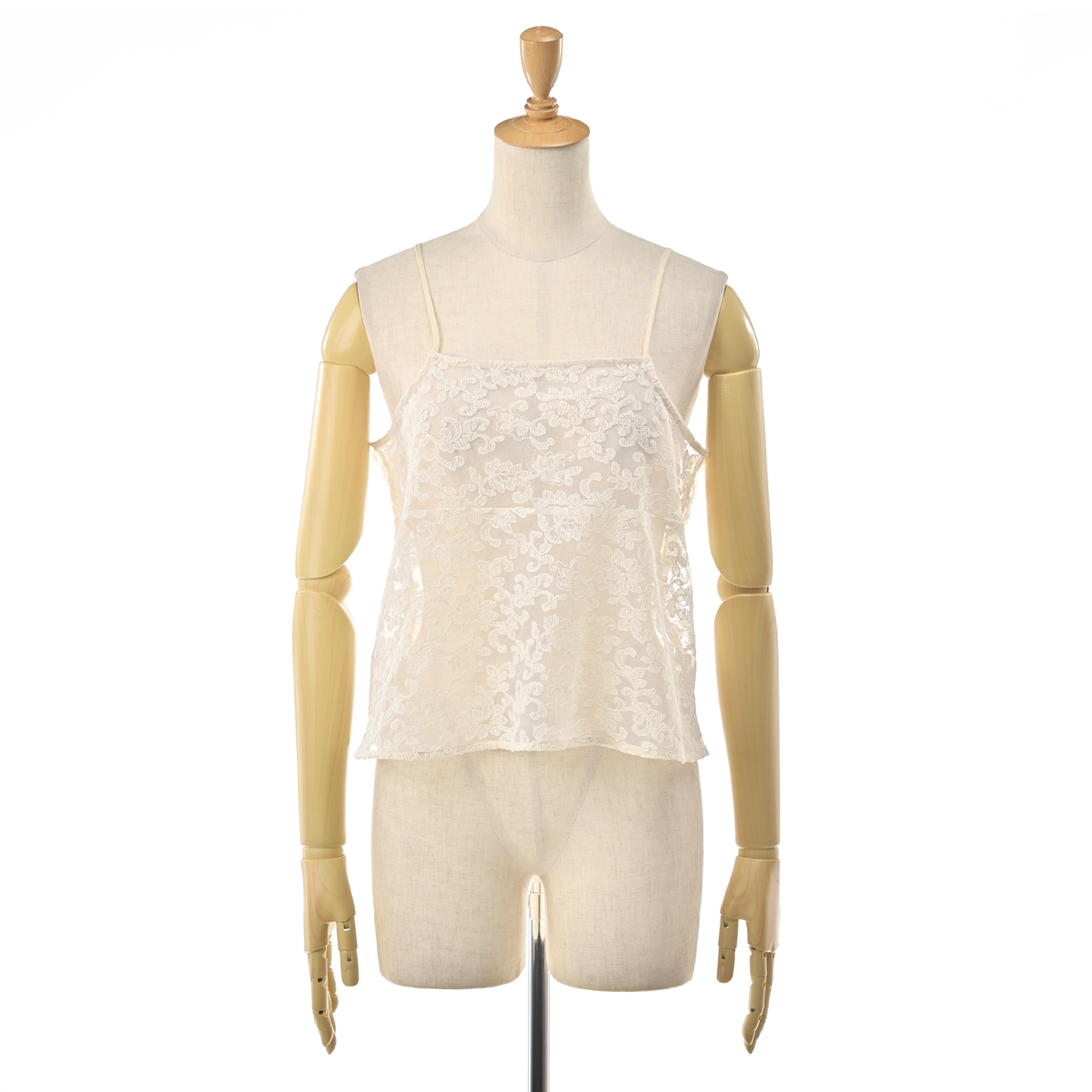 繊細なレースを使用したキャミソールは程よく透け感があり、背面のリボンデザインが愛らしいアクセントになっています