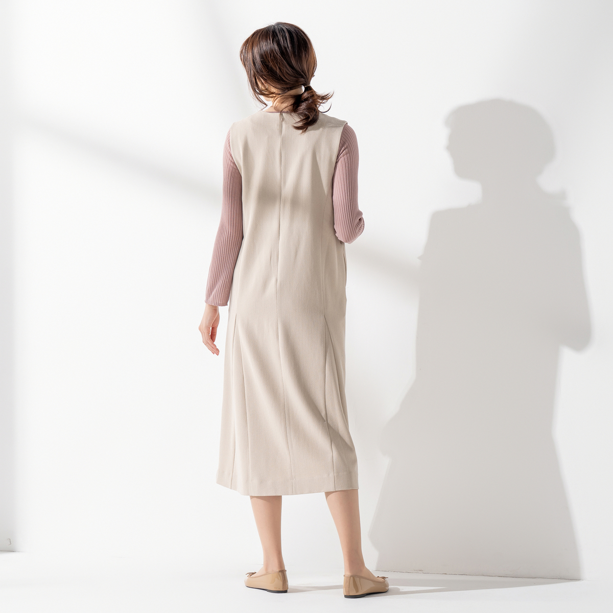 軽やかなフレアシルエットのジャンパースカート。シーズン問わず長く着回せるので、1枚あると便利です