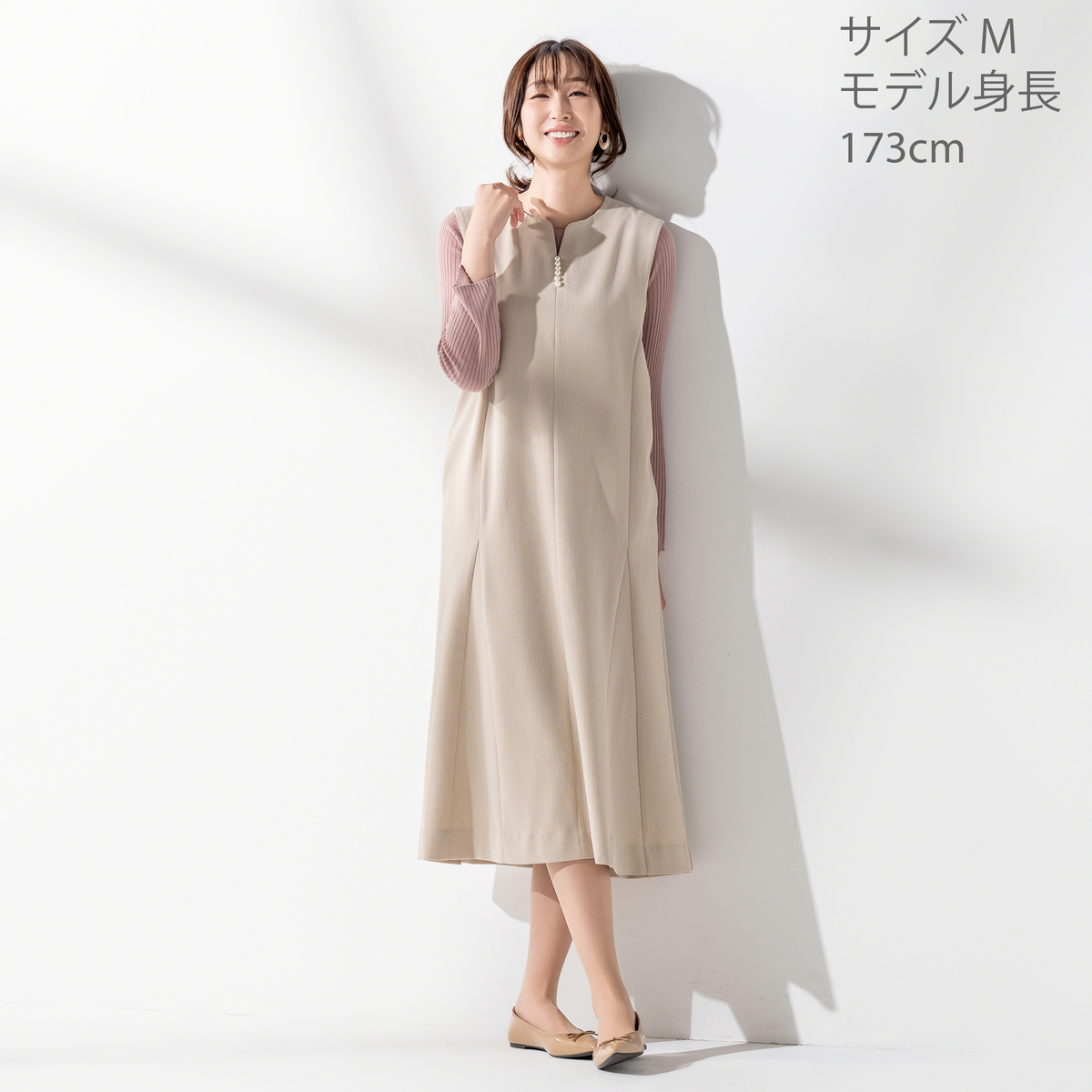 [商品寸法(ヌード)cm] サイズ バスト 着丈 S : 91(72〜80) 115 M : 95(79〜87) 115 L : 100(86〜94) 117 LL : 106(93〜101) 117 3L : 112(100〜108) 117 サイズ 肩幅 ウエスト ヒップ S : 38 (58〜64) 107(82〜90) M : 39 (64〜70) 111(87〜95) L : 40 (69〜77) 116(92〜100) LL : 41 (77〜85) 122(97〜105) 3L : 42 (85〜93) 128(102〜110) [素材] 表地:ポリエステル80% レーヨン15% ポリウレタン5% 裏地:ポリエステル100% [お手入れ] 洗濯機洗い可 [注意事項] ※商品寸法の誤差は多少発生します。ご了承下さい ※淡色製品には蛍光増白剤入り洗剤を使用しないで下さい ※洗濯後はすぐに脱水し、形を整えて干して下さい。長時間、水につけたままにしないで下さい ※濃色製品は着用中の摩擦により色移りすることがあります。また、雨や汗等で濡れた状態で着用すると色移りすることがあります。その際はお早めに洗濯をして下さい ※アイロン時にはあて布を使用して下さい ※装飾部分にはアイロンを当てないで下さい ※洗濯ネットを必ず使用して下さい ※洗濯の際、色落ちすることがありますので、他の物と分けて洗って下さい ※着用時にベルトやバック、周囲の壁など、表面の粗いものとの摩擦や引っかかりに注意して下さい 【中国製】