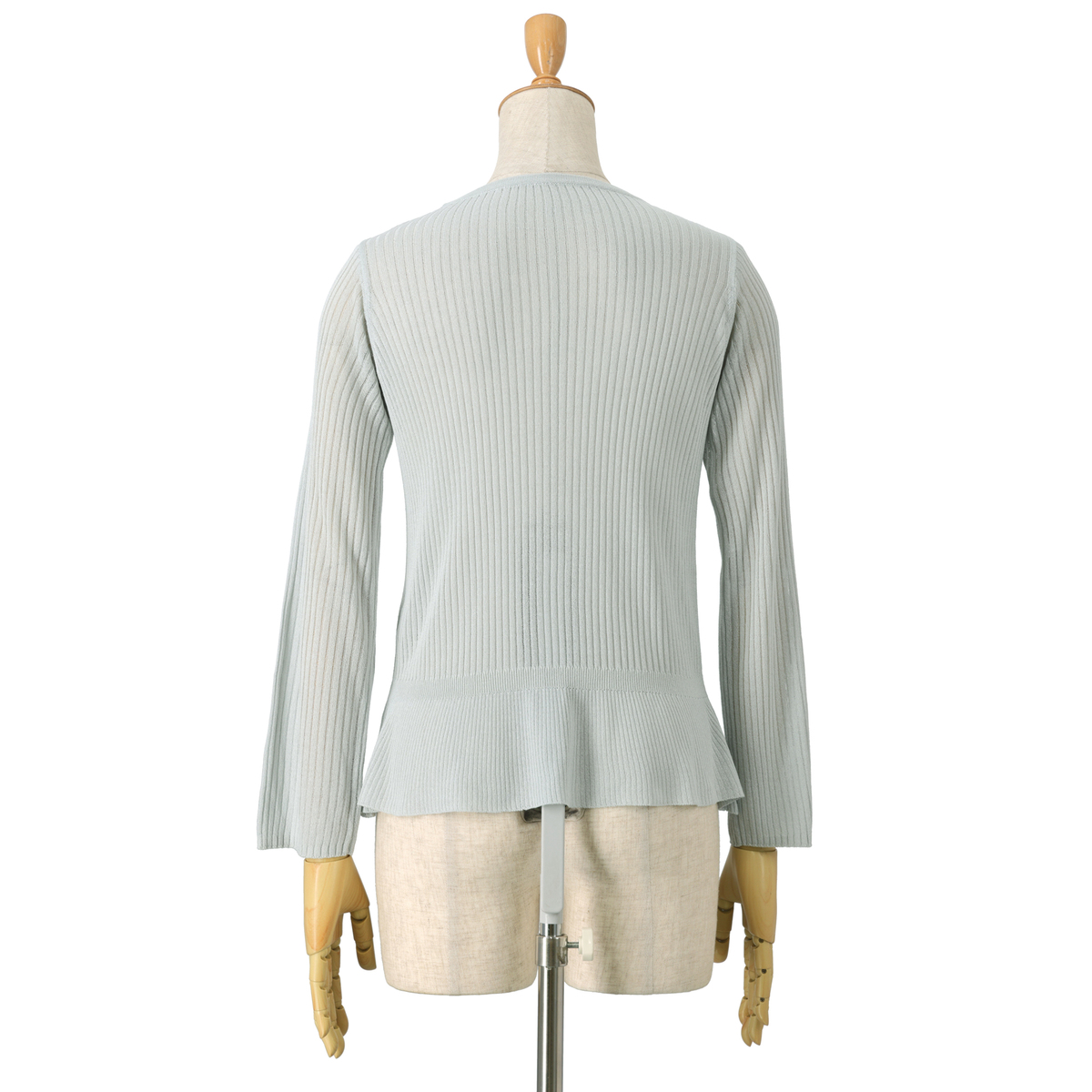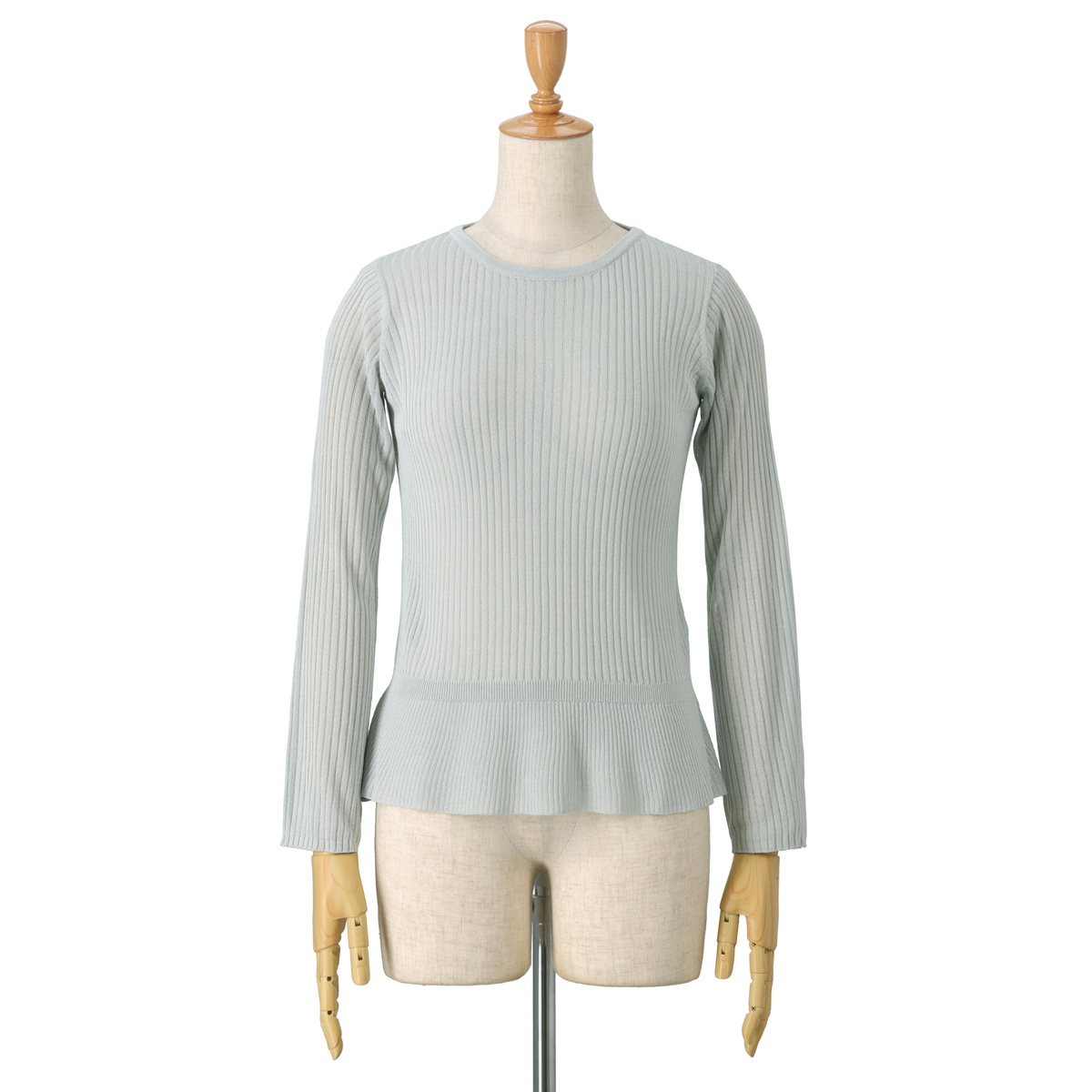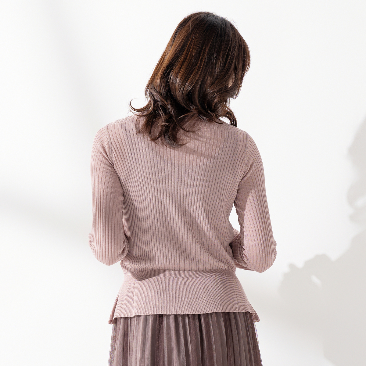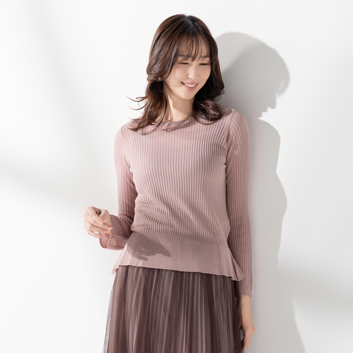 柔らかな素材が肌を美しく見せつつ、軽やかな印象に仕上げます。ボートネックがデコルテをきれいに整え、顔周りを明るく演出。ペプラムシルエットで快適さとシルエットの美しさが両立します。繊細なデザインが装いに華やかさを添えます
