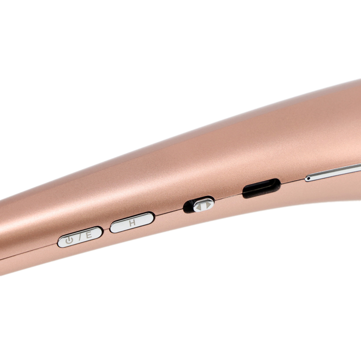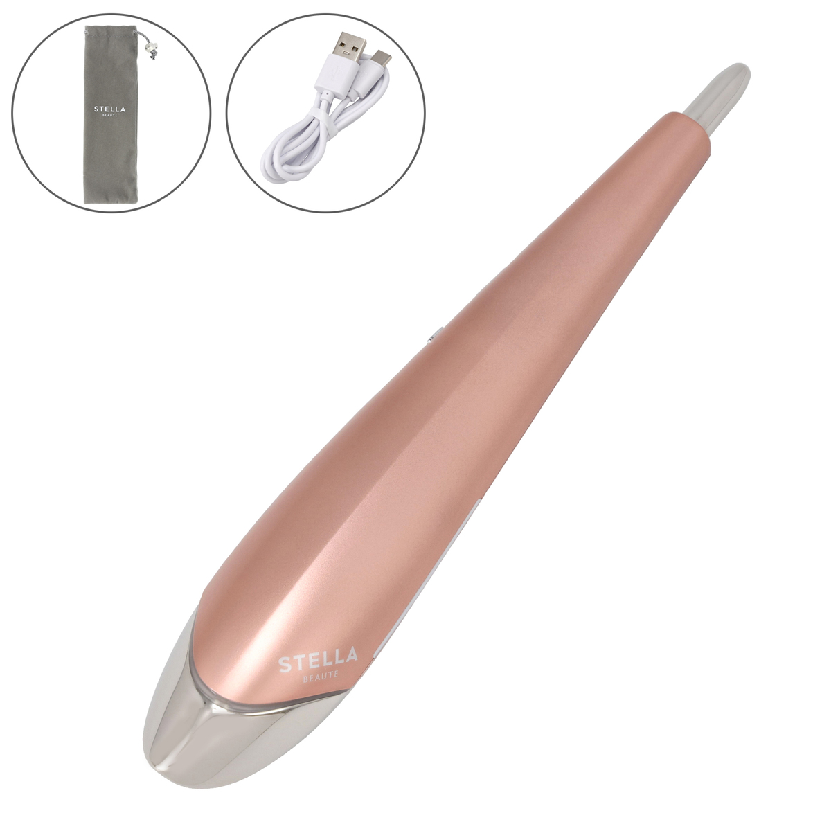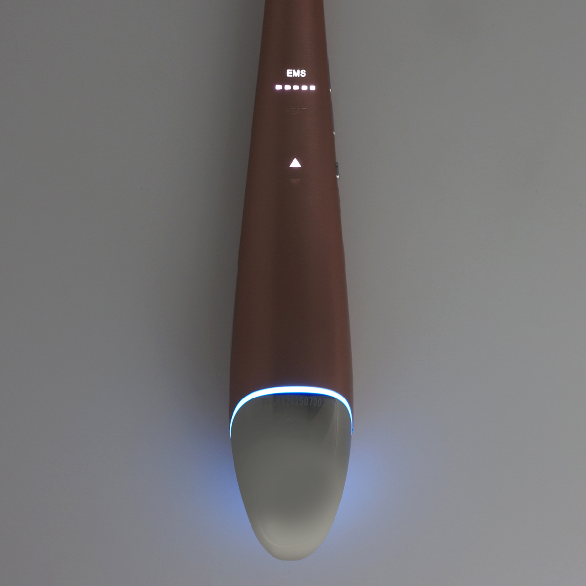 あたため・EMSで筋肉を鍛える・指圧代用器*1が1台で可能なスティック型の美顔器。EMSの電気刺激を表情筋に与え、筋肉を収縮させることにより表情筋をトレーニング。約41度の温めでお顔を温め、目の周りやフェイスラインなどお顔全体に使えます*2