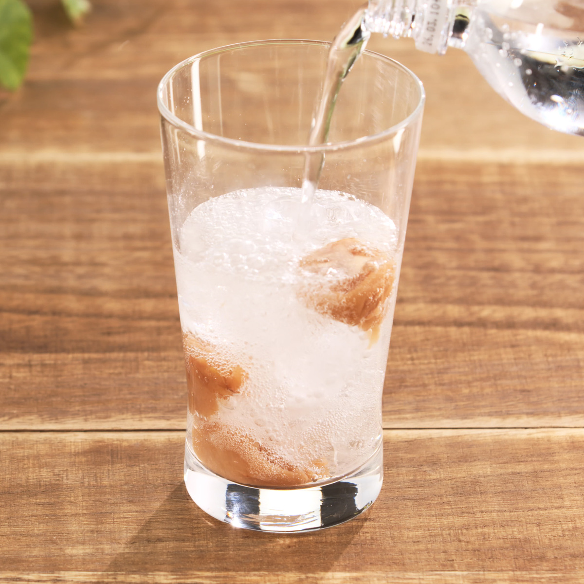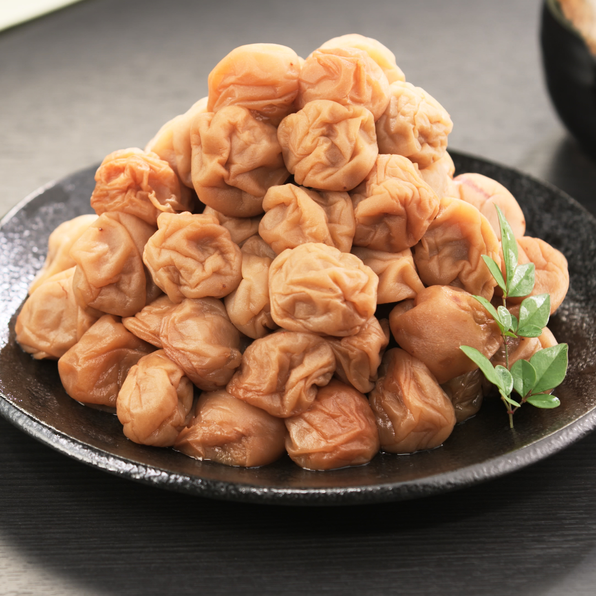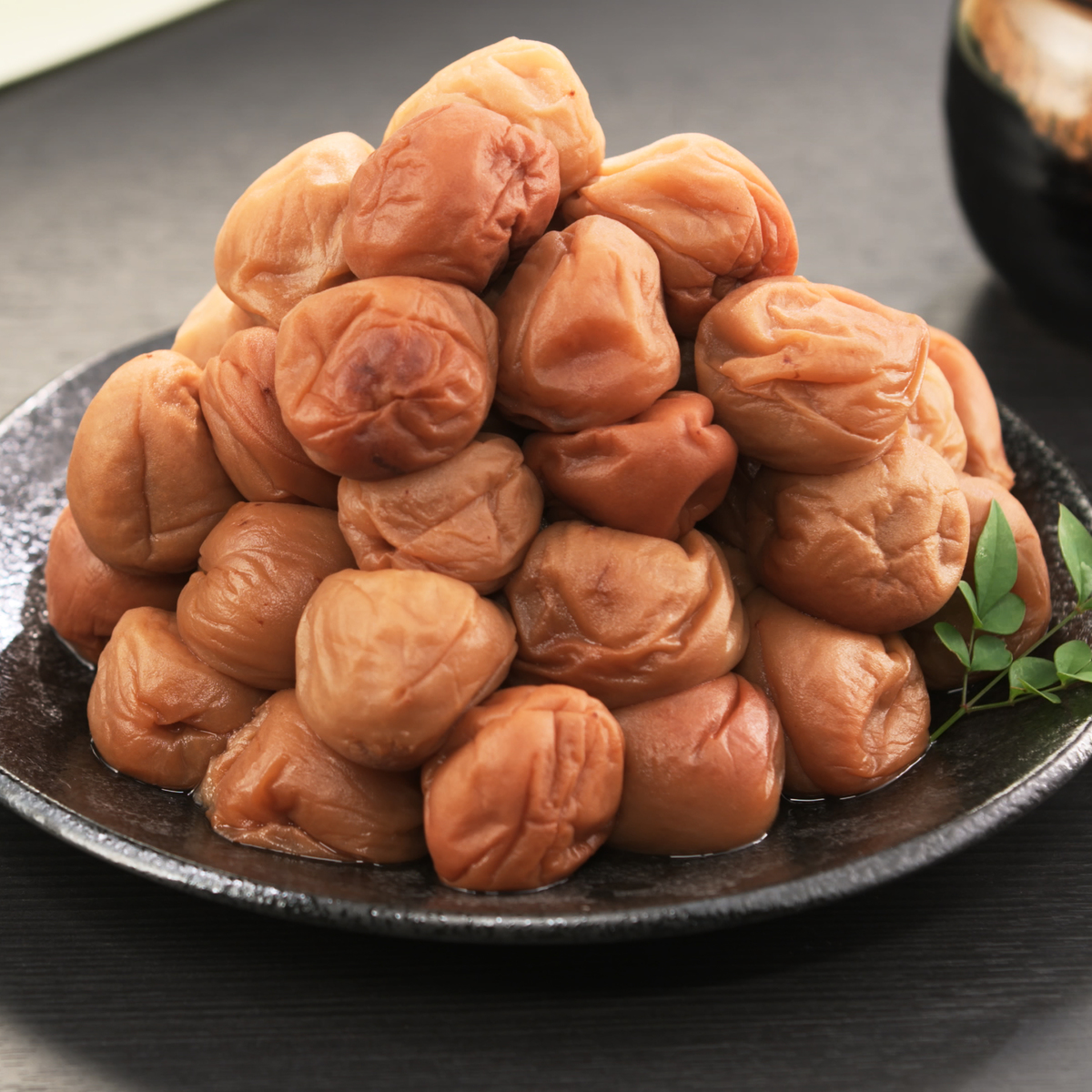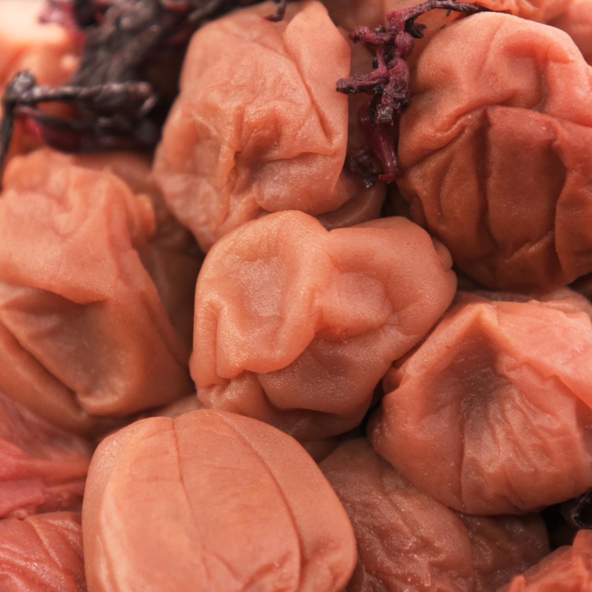 国産の赤しそ液を使って、じっくりと漬け込みました。適度な酸味でご飯ともよく合います。可食部100gあたり塩分約8%(*2)。ジューシーな果肉と、しそのさっぱり感を味わえる中粒2Lサイズの梅干しです