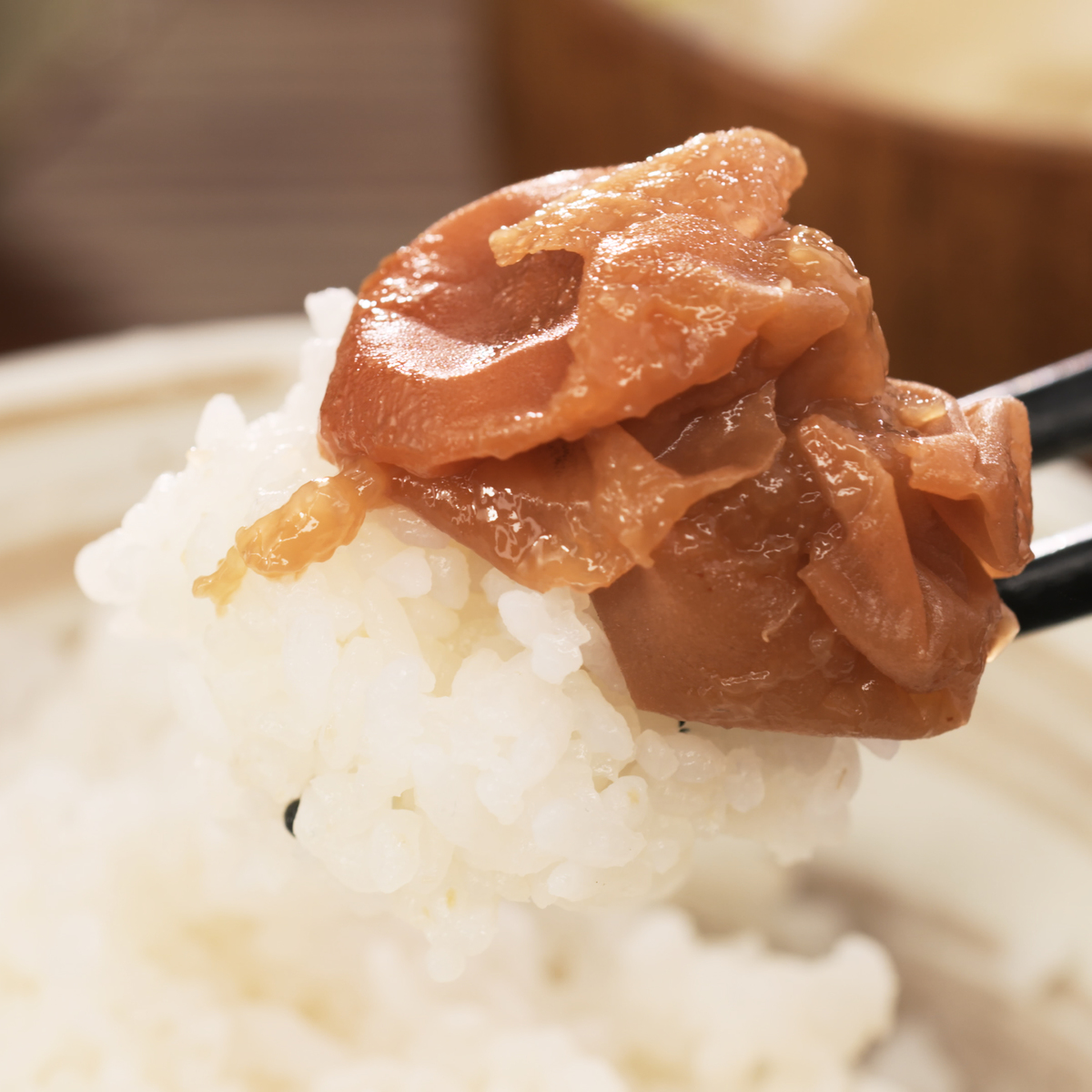 南高梅のおいしさを引き立てるために、上品な甘みのある国産のはちみつを使用しました。可食部100gあたり塩分約8%(*2)。甘酸っぱくて食べやすさがありながらも、食べ応えのある3Lサイズ以上の梅干しでお届けします