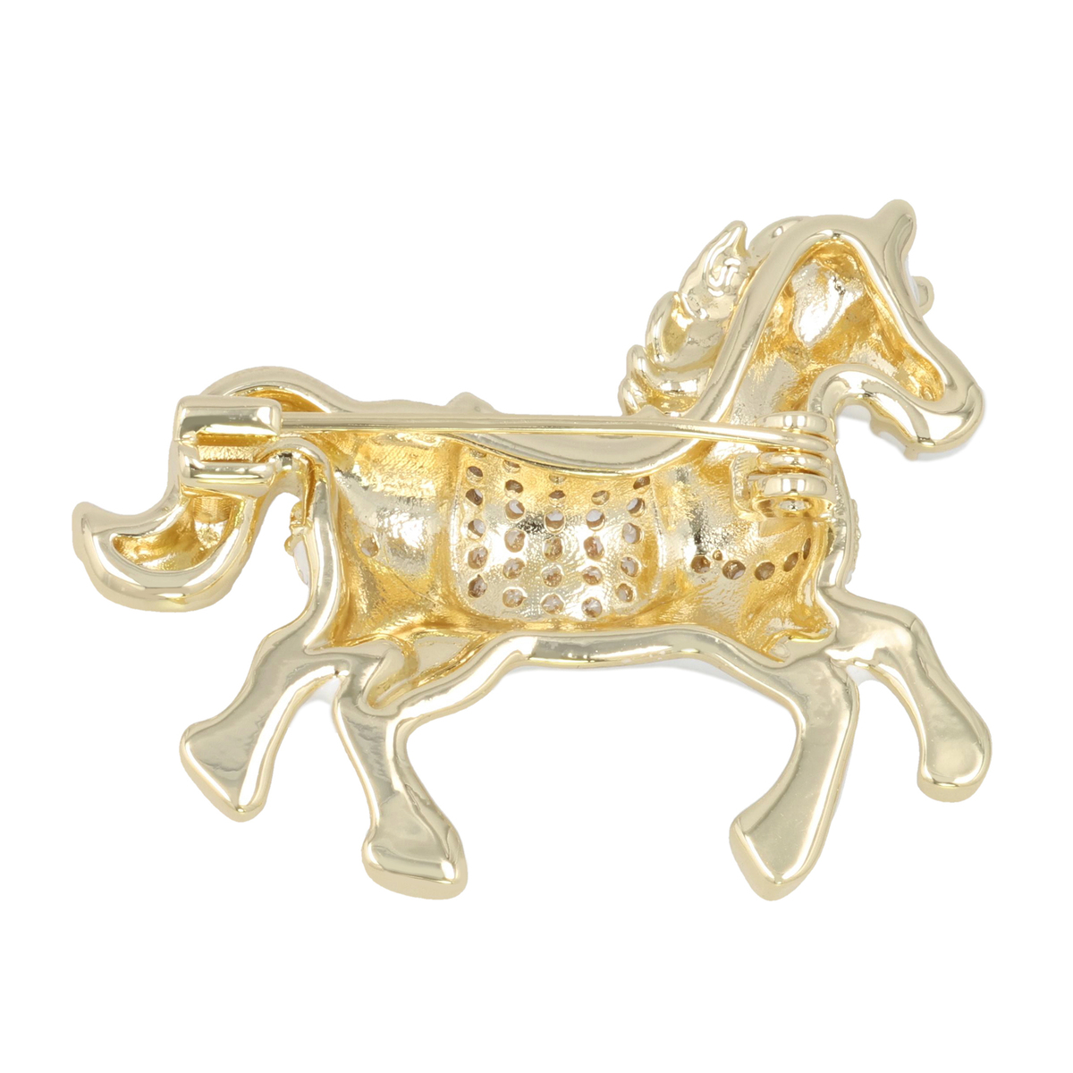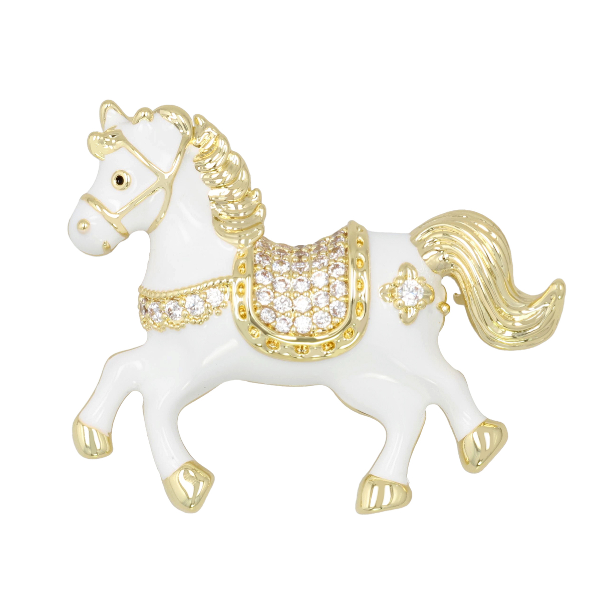 ホワイトとゴールドカラーが美しく映えるポニーのブローチです。繊細なキュービックジルコニアが、優雅な立ち姿に上品なきらめきを添えます