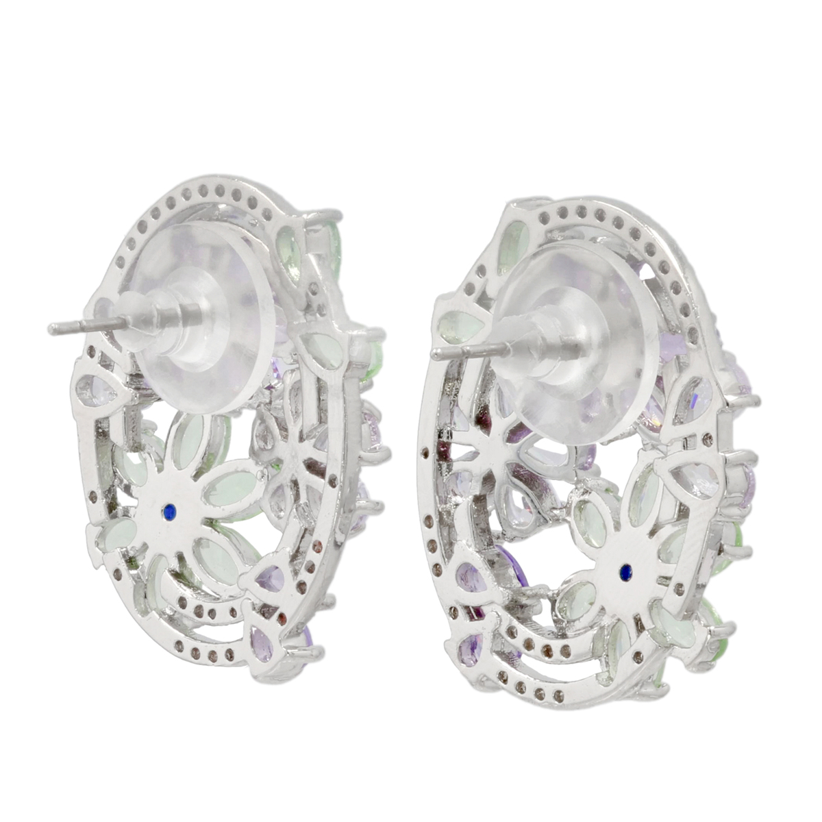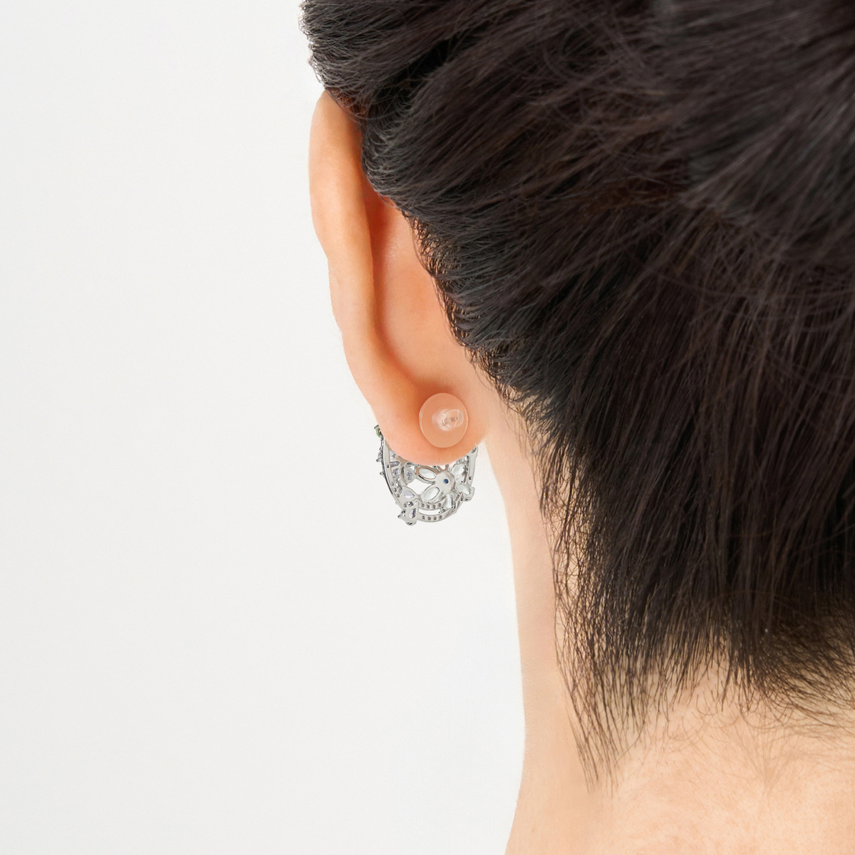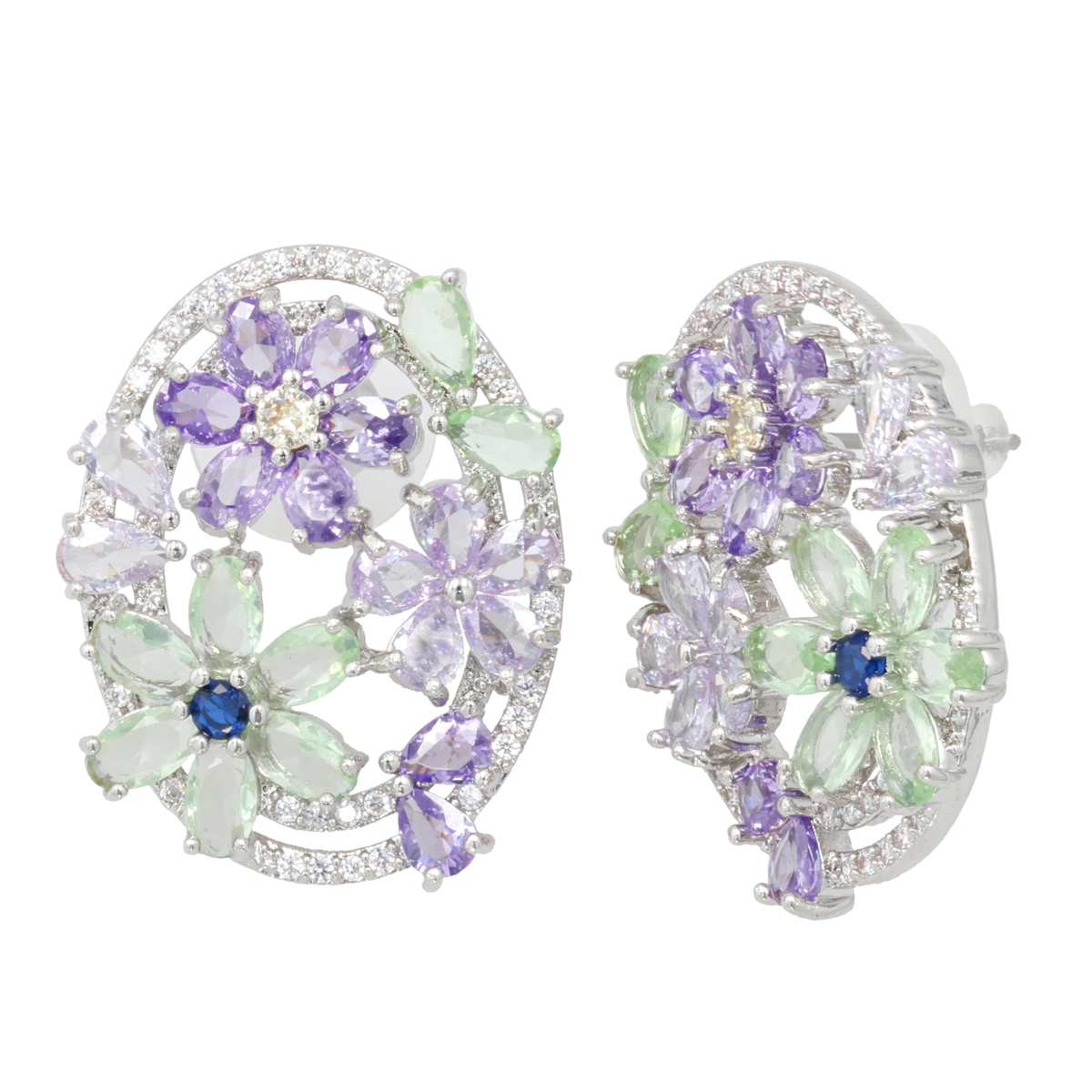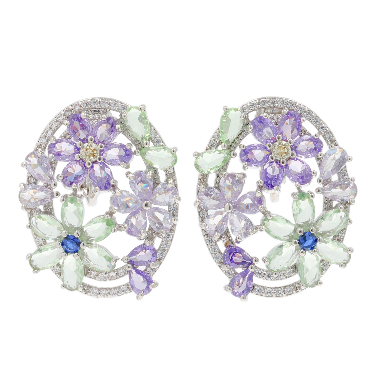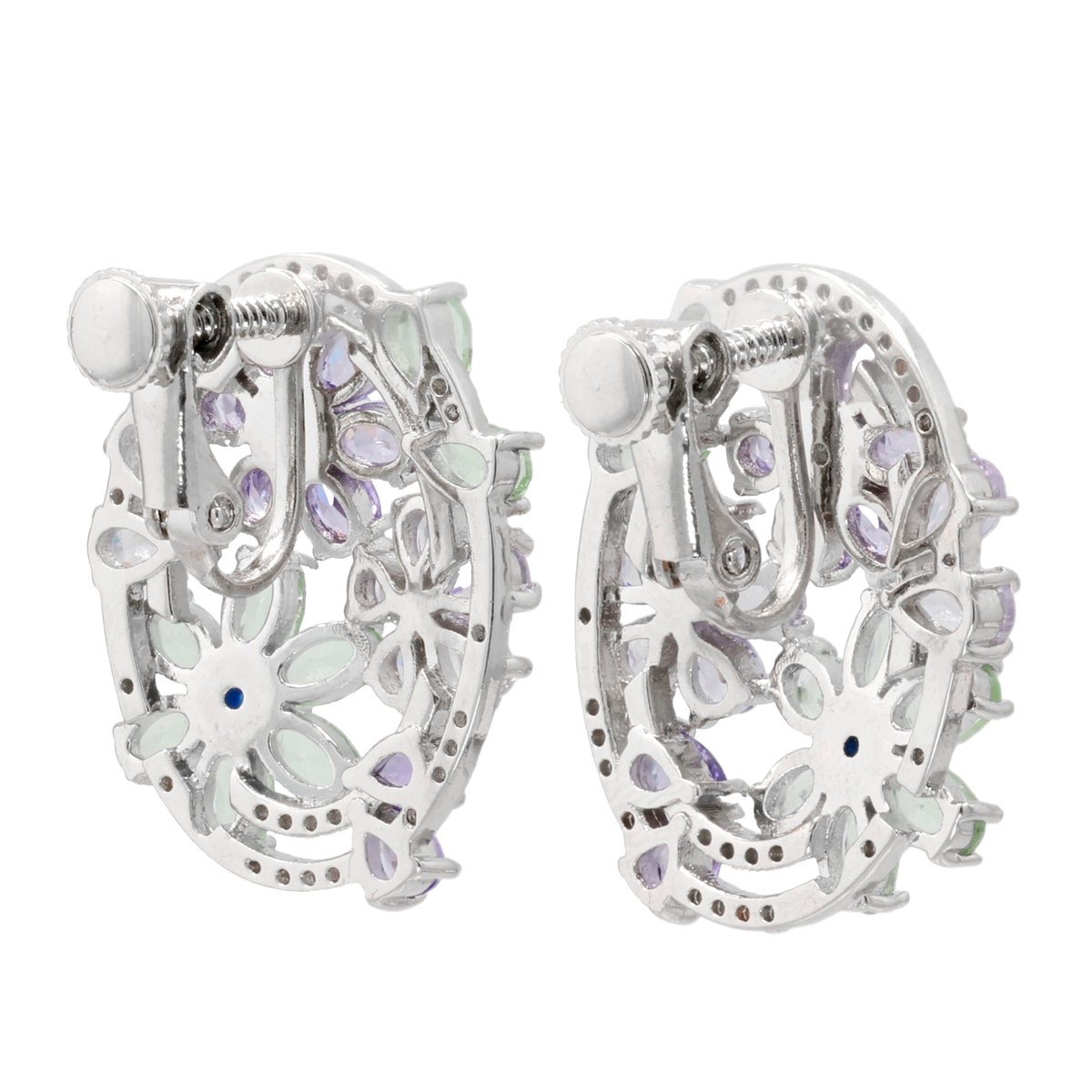 お花の中心にはコントラストカラーのキュービックジルコニアを配し、耳元に鮮やかな輝きをプラスしました
