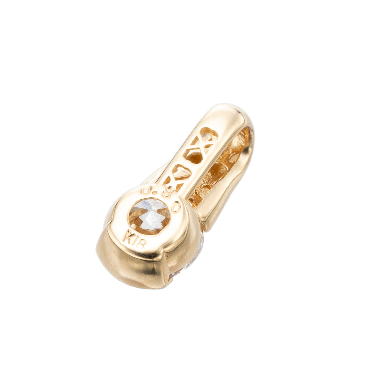 一粒石の美しさを活かしたダイヤモンドペンダントヘッド。煌めきを重視して選ばれたブリラーレ品質のダイヤモンドをソリティアで仕立てています。地金は18金を使用し、ハーフベゼルで留めることで引っ掛かりに配慮しています