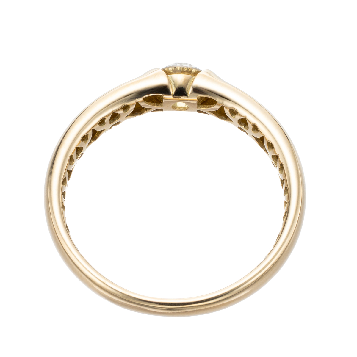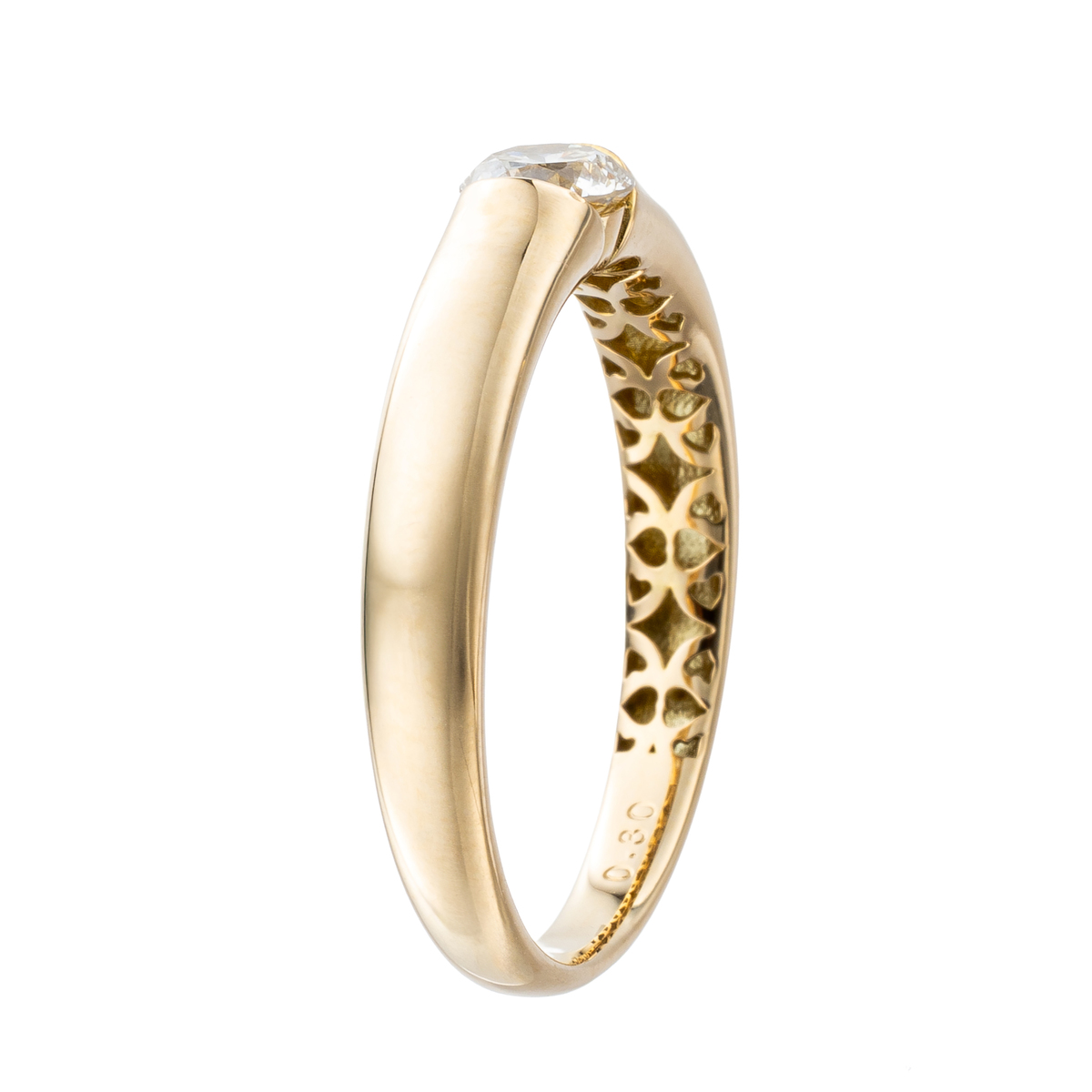 一粒石の美しさを活かしたダイヤモンドリング。煌めきを重視して選ばれたブリラーレ品質のダイヤモンドをソリティアリングに。地金は18金を使用し、ハーフベゼルで留めることで引っ掛かりに配慮しました