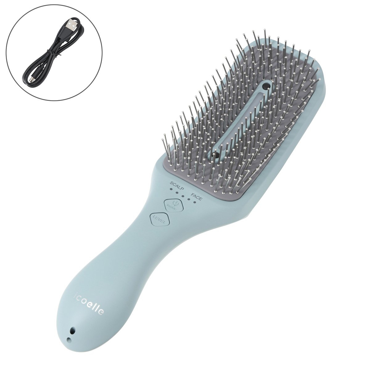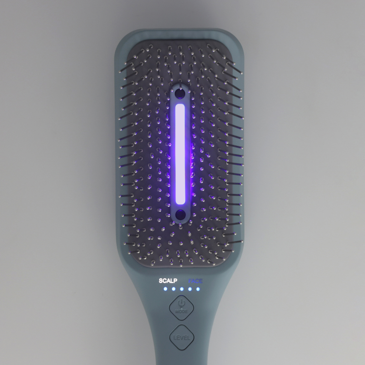 スカルプモードとフェイスモードのどちらも1回5分間のオートプログラムで、レベルは5段階(*4)。224本のピンが頭皮にしっかり接地し、捉えられるようにこだわりました。頭皮用ブラシや髪のブラッシングにも使えます