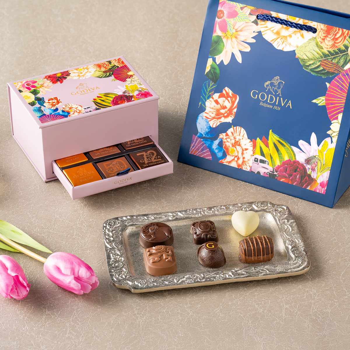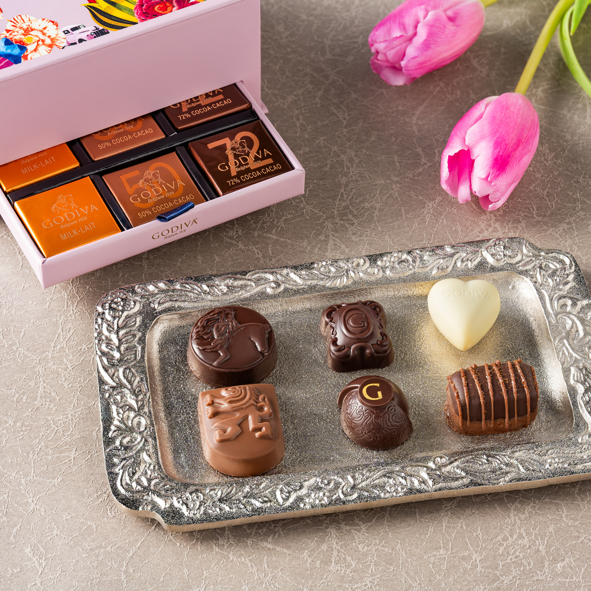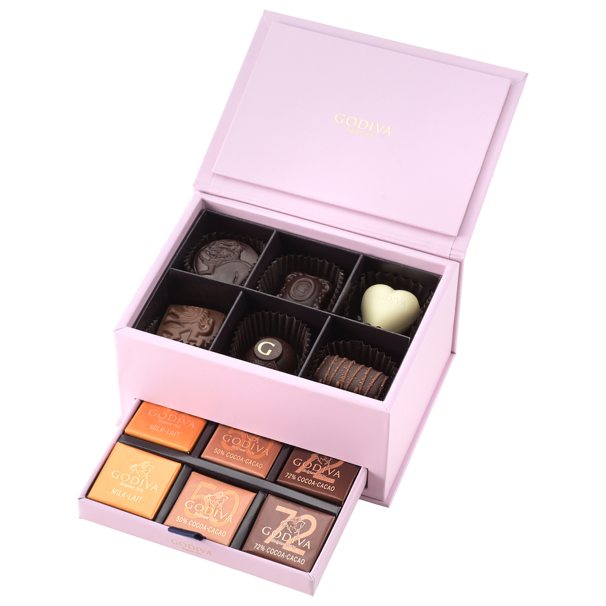 ベルギー王室御用達として伝統を継承し、革新を重ねてきたゴディバが贈る100周年記念アーカイブショコラコレクション。愛され続ける定番粒に人気のカレ、そして記念粒をシックで華麗なパッケージに詰め合わせました。驚きと喜びを運ぶ遊び心と共に、100年の歴史を巡る贅沢なひとときをお楽しみください