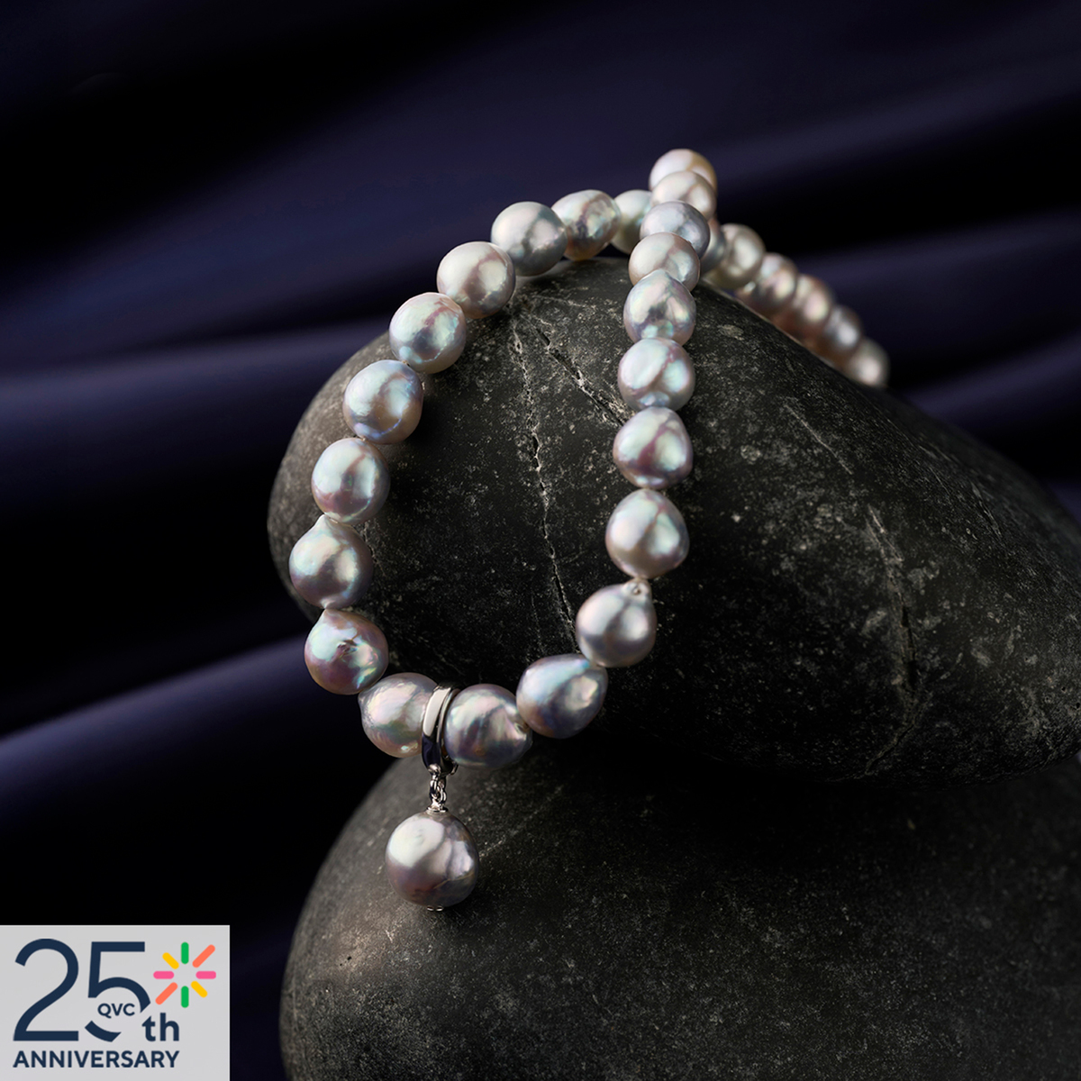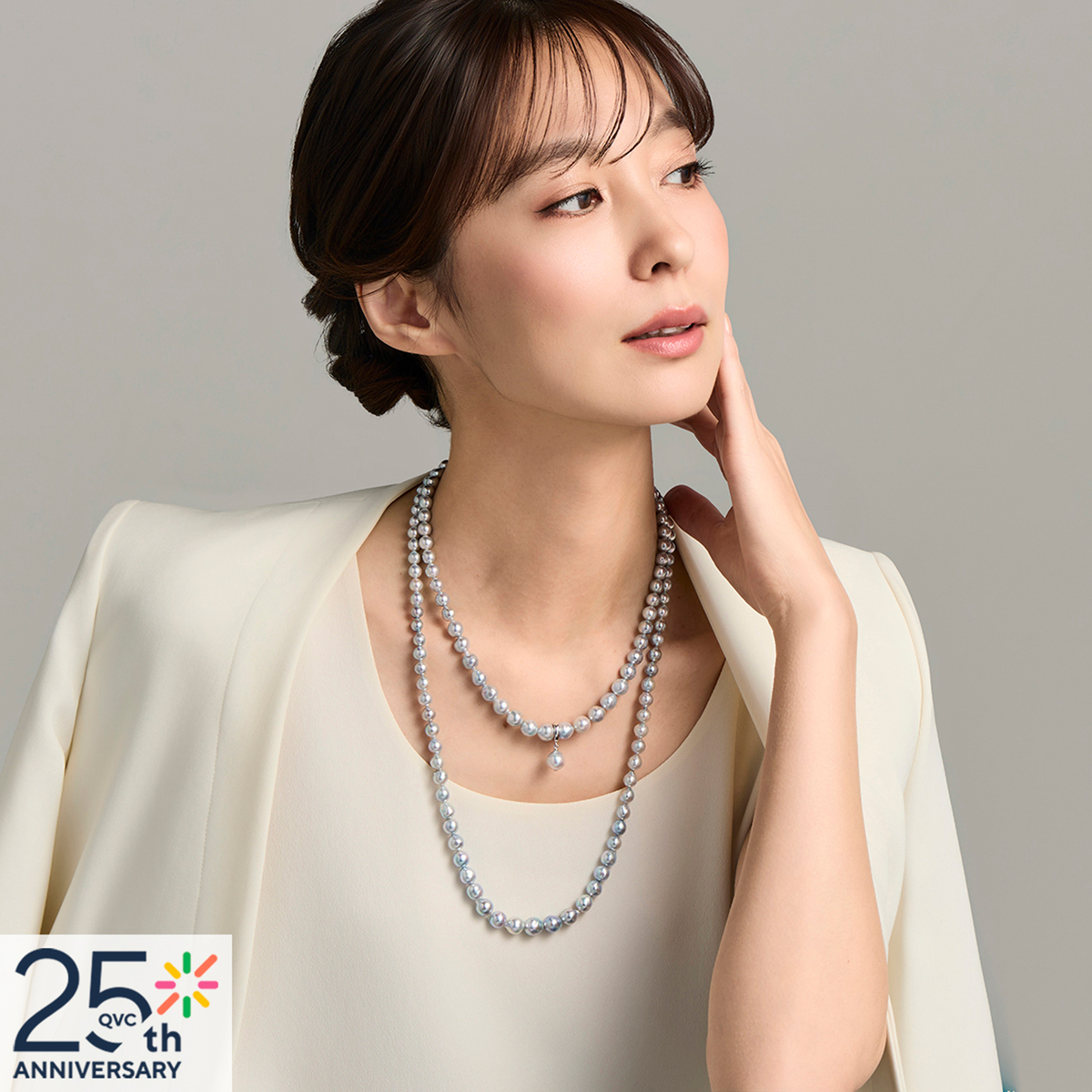 ナチュラルカラーの中でも選び抜かれた真珠を使用したグレー系バロックの和真珠ネックレス。今回は、QVC25周年記念の特別セットとして、アコヤ真珠の中では大珠のグレー系9.5mm珠を用いたペンダントヘッド付きです