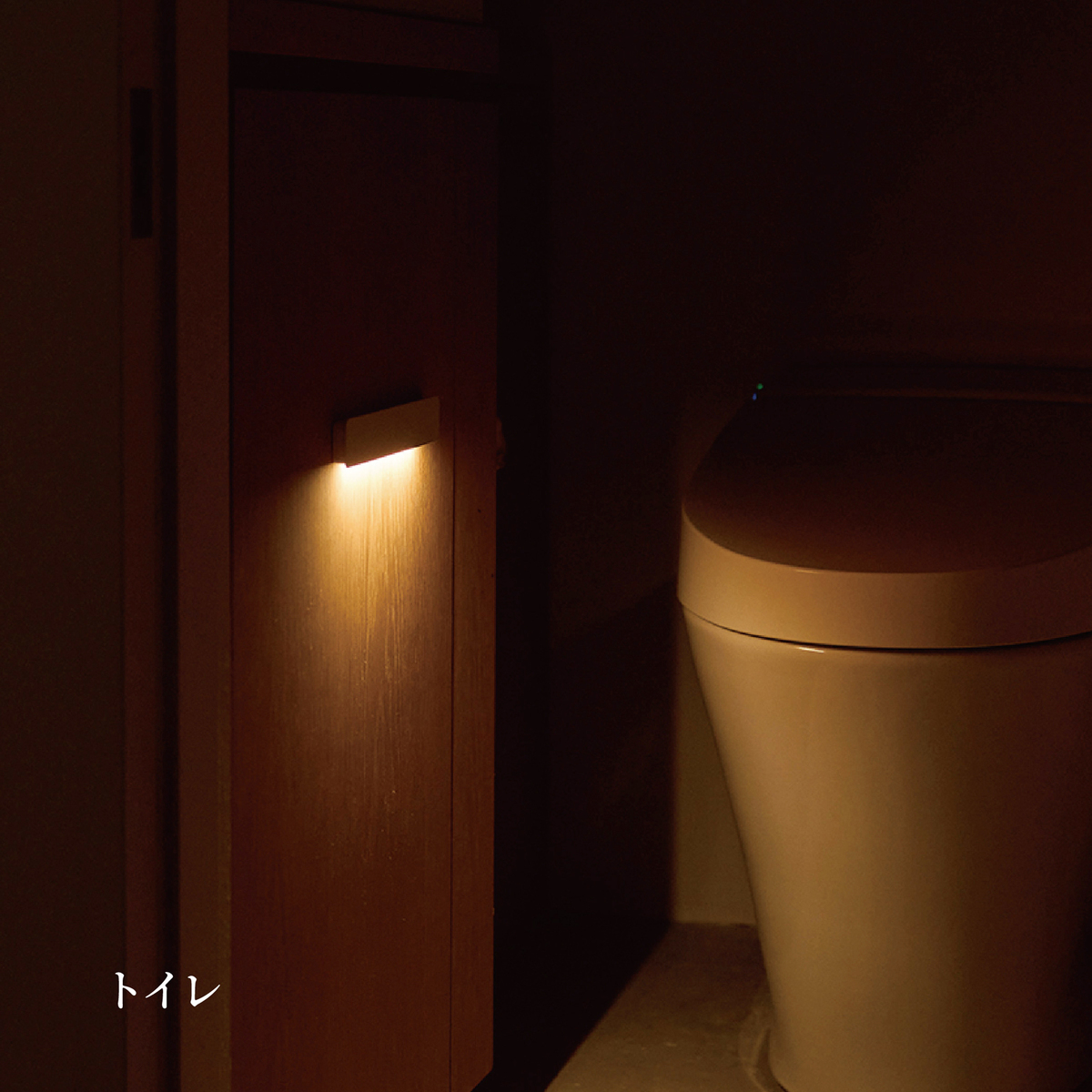 あかりが欲しい場所をピンポイントに照らすモデルです。0.3Wの電球色LEDで、色温度は2700K。周囲が暗い時に人が来ると熱センサーが探知し、自動点灯します。消灯までの時間は、スライドスイッチで5秒・OFF・30秒から選べます