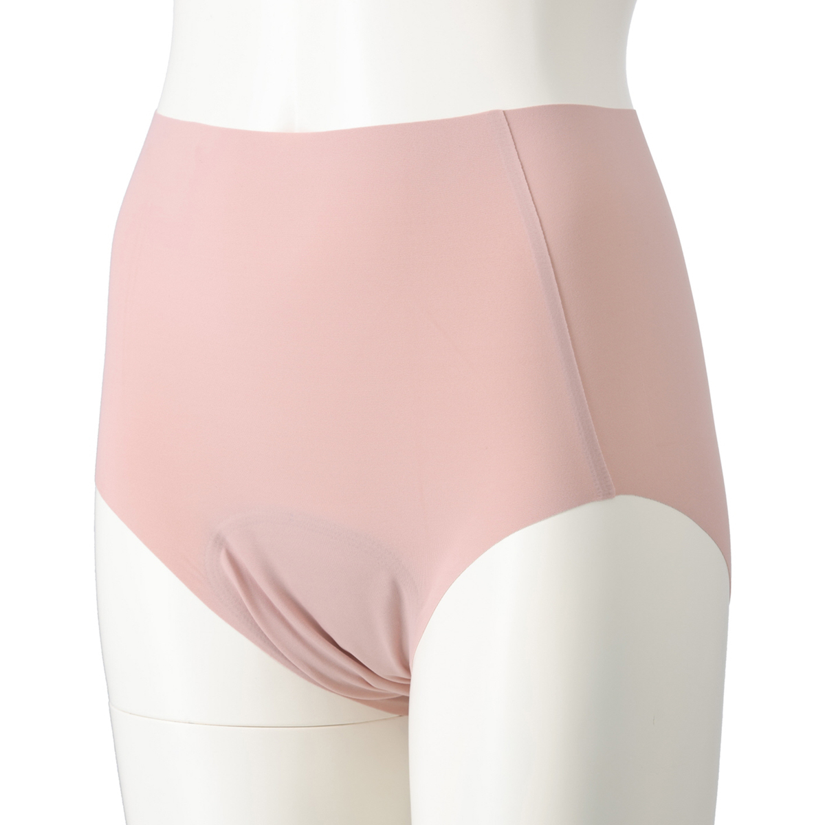 シームレス無縫製仕様の吸水ショーツ。身生地にはストレッチナイロントリコット素材を使用し、伸縮性のあるピタッとしたフィット感でヒップラインを整えます。縫い目のない切りっぱなし仕様で肌あたりが良く、ボトムスに響きにくいのもポイントです