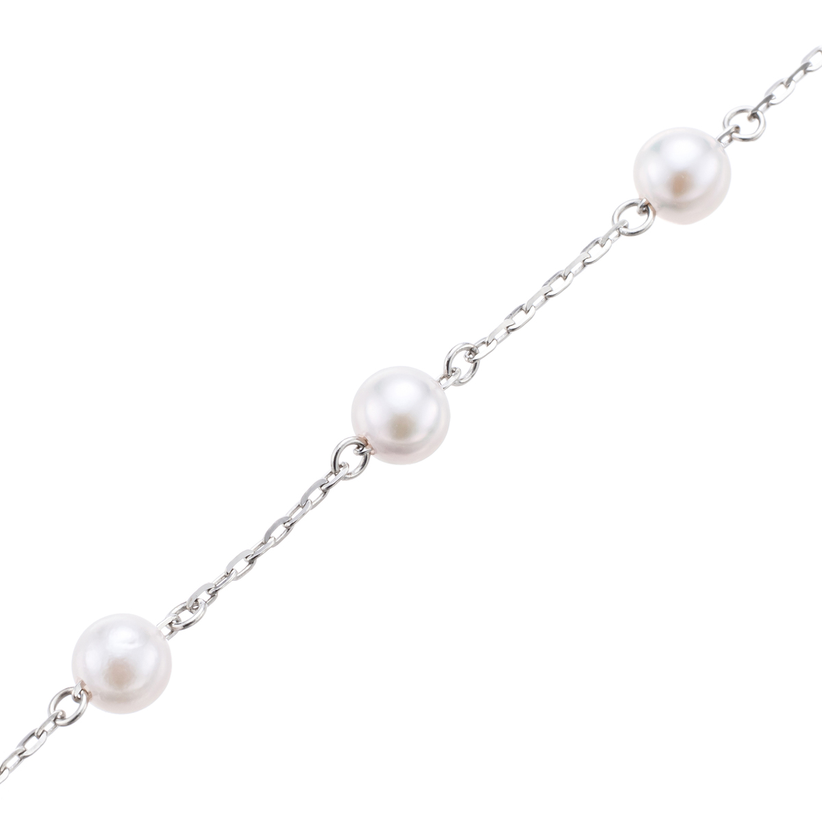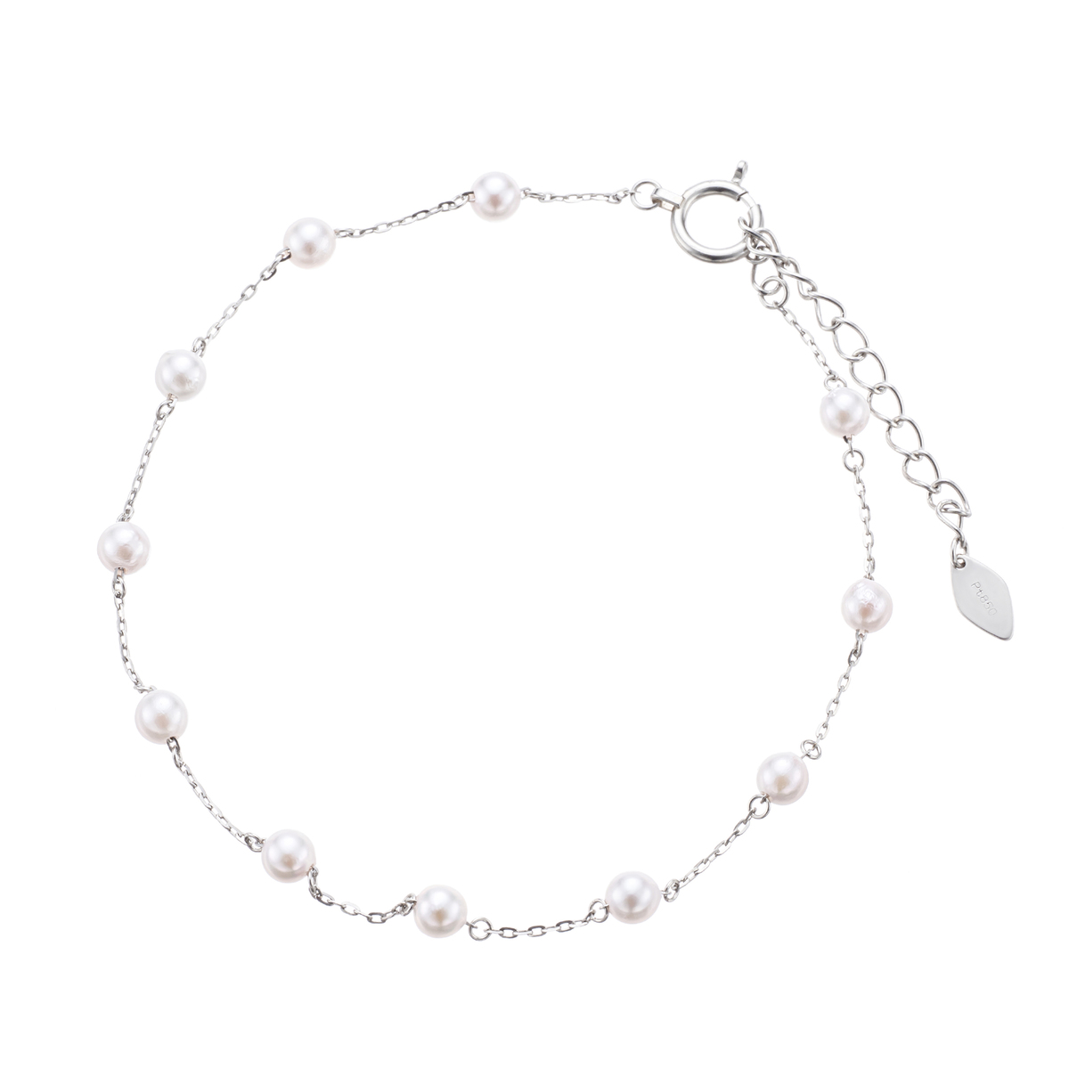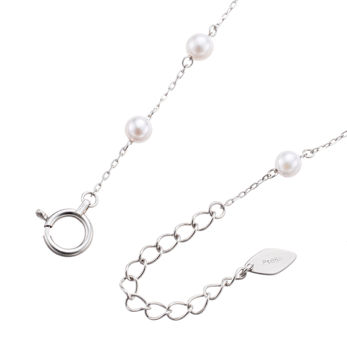 真珠総合研究所でテリがトップグレードの範疇と認められたアコヤ真珠のベビーパールを使用。プラチナ製のステーションブレスレットです。バランスよく配置されたパールが、手元に上品な輝きを添えます。シンプルながら、格調ある印象を演出します
