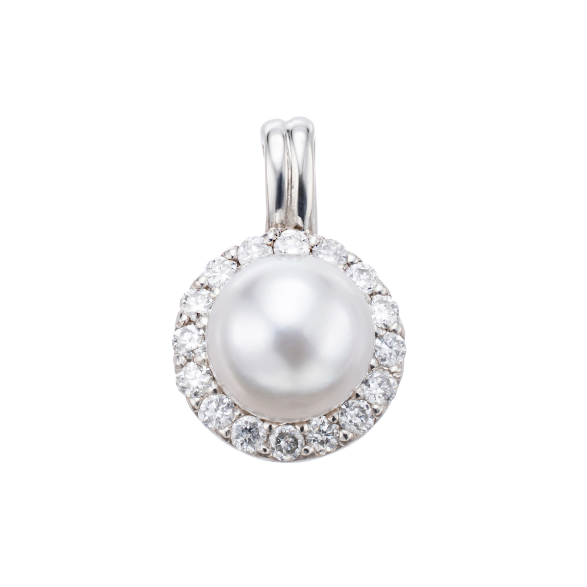 真珠総合研究所でテリがトップグレードと認められたアコヤ真珠のベビーパールを使用。プラチナ製のペンダントヘッドです。ダイヤモンドをあしらったデザインは、上品にもラグジュアリーにも映えます。これ一つで装いを格上げします