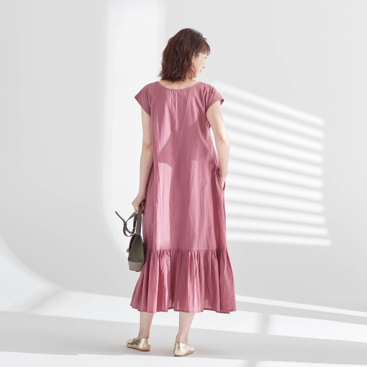 暑い夏に涼しく着ていただける風通しの良い綿100%のワンピースです。素材にはインド綿を使用。暑いインドで採れたインド綿は、綿の中でもとてもさらっとしてべたべたしにくいのが魅力です