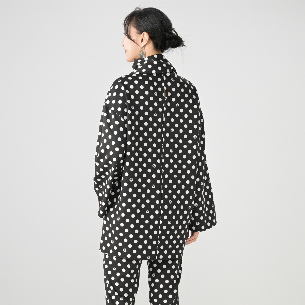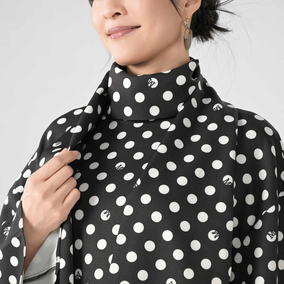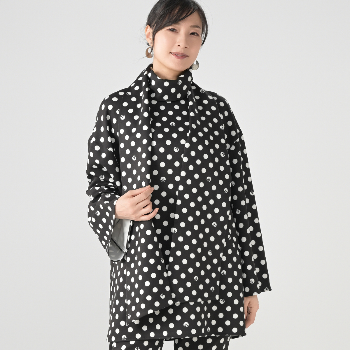 タイが生む華やぎをまとったダブルクロスのプルオーバー。長めの丈が気になる部分をさりげなくカバーしつつ、シルエットは洗練された印象に。左右脇のポケットが実用性を添え、印象的な着こなしと扱いやすさを両立した一枚です