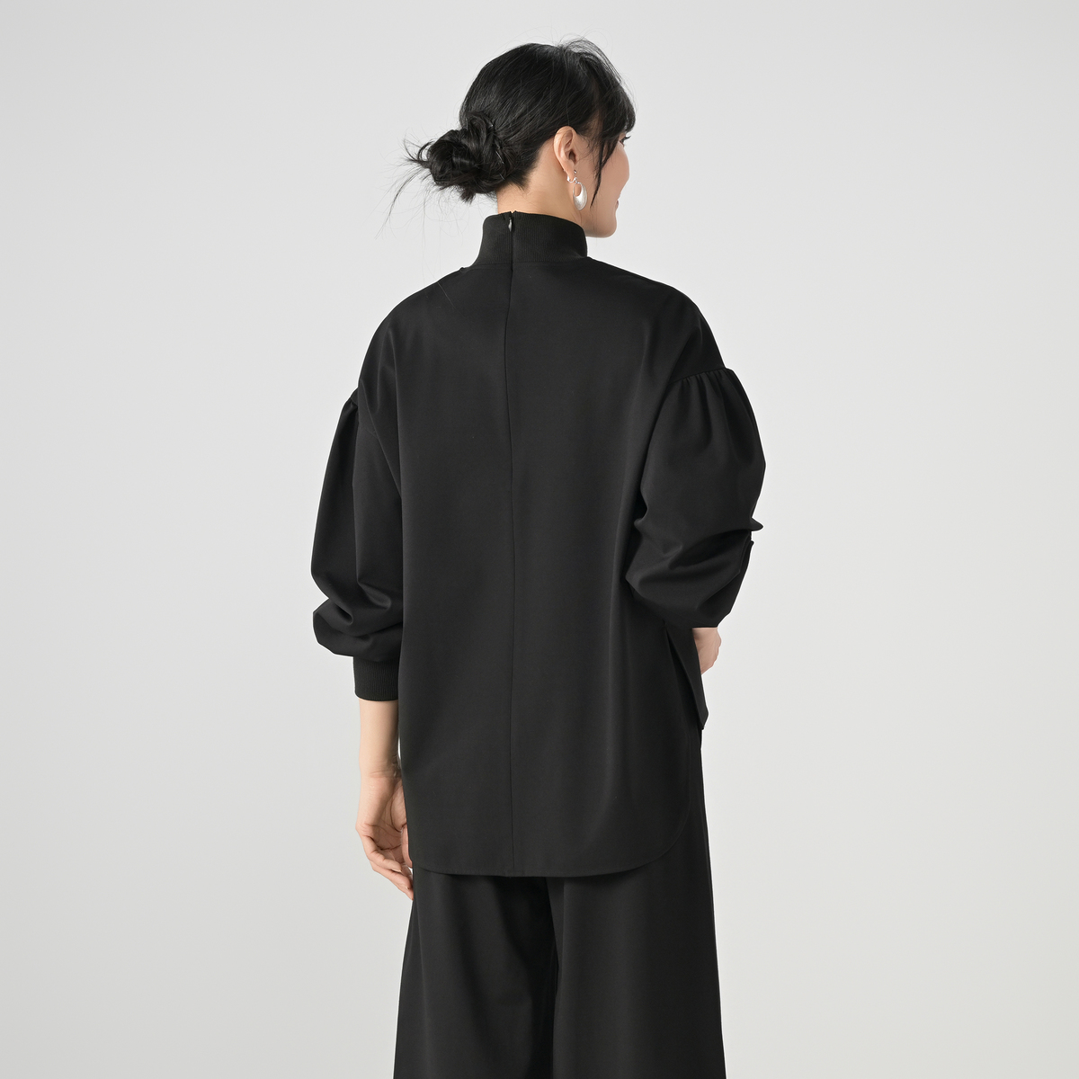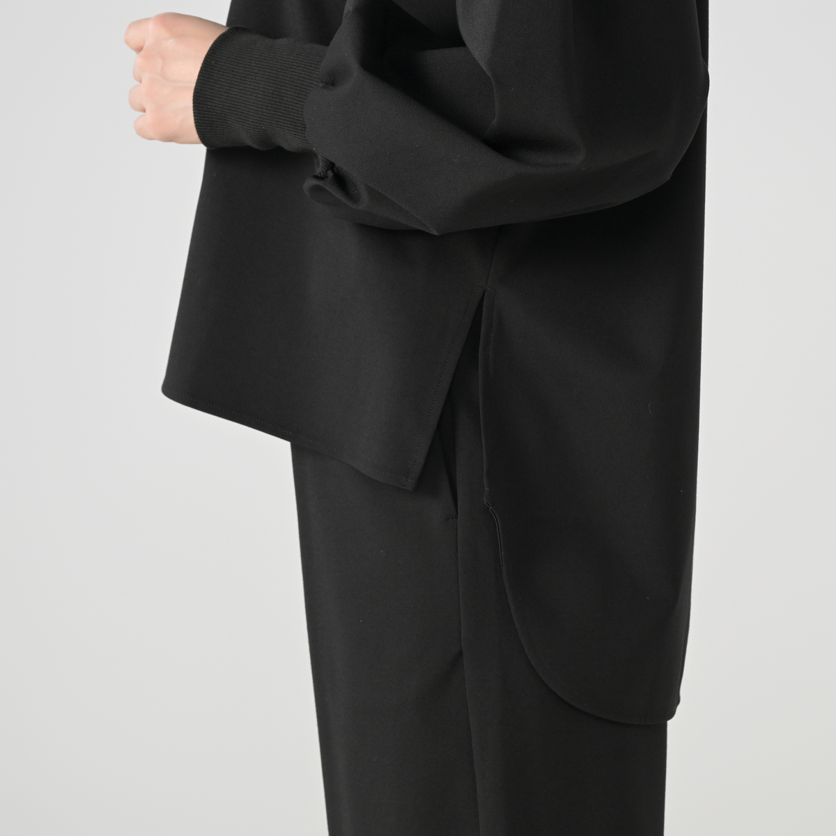 ゆったりとしたエレガントスタイルのストレッチジャージプルオーバー。シンプルなデザインで様々なアイテムと合わせやすく、着回しの幅が広がります
