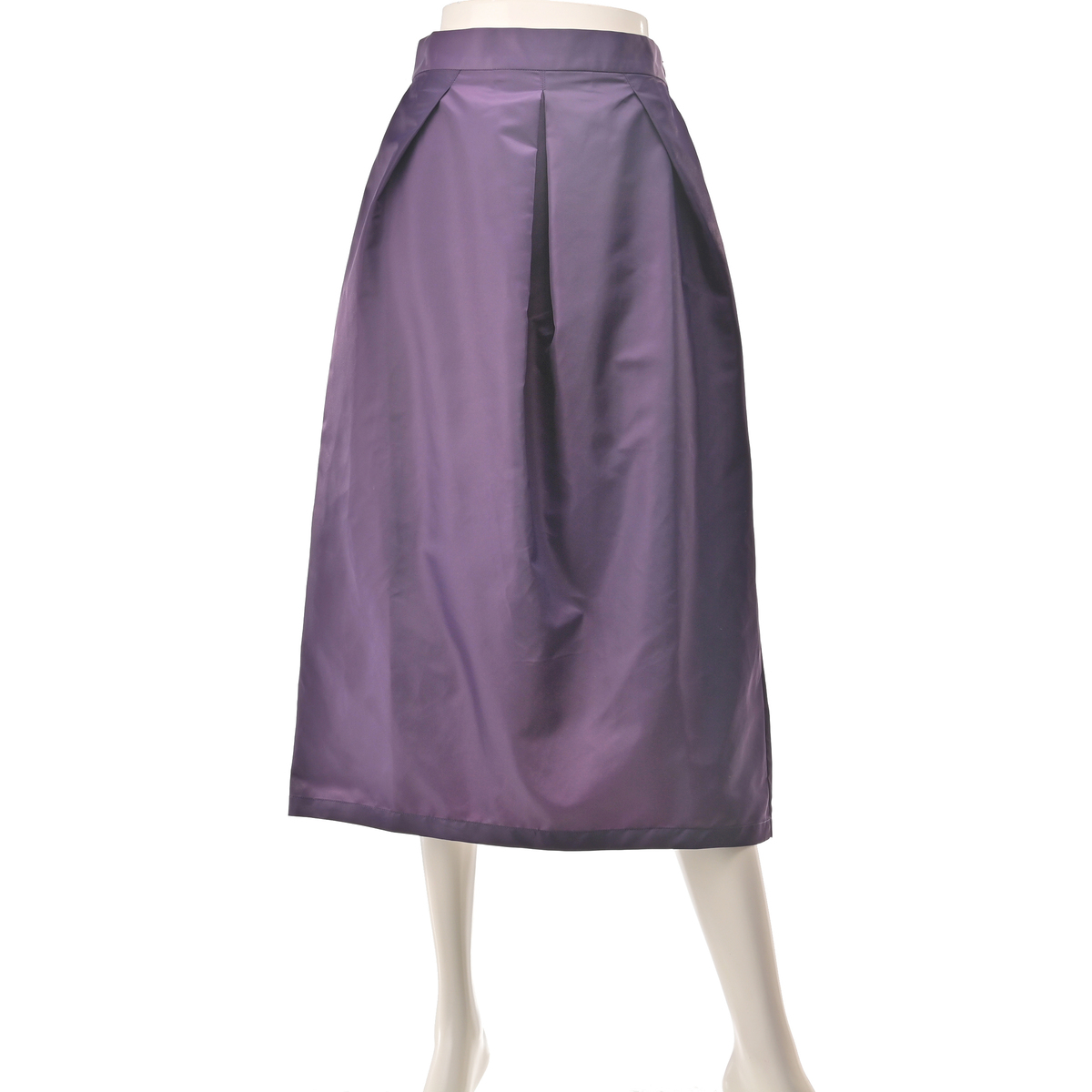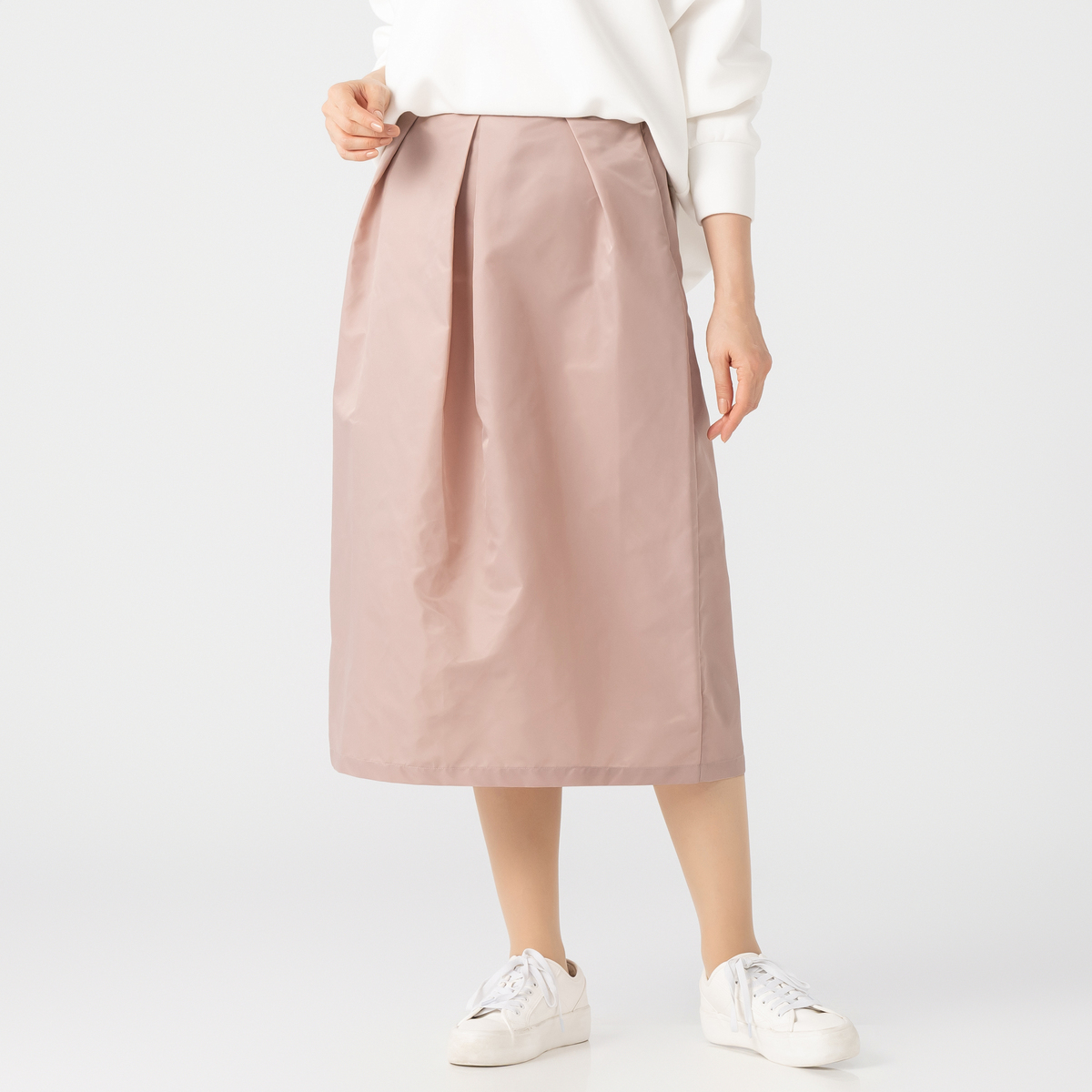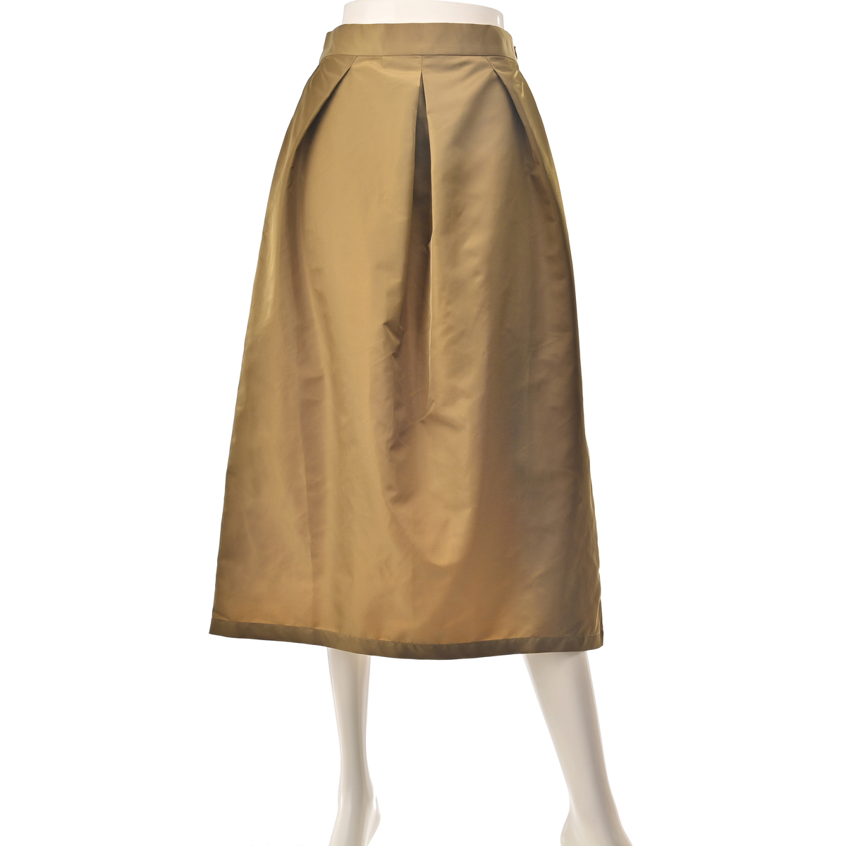 素材独特の光沢感がエレガントで上品な印象を与えてくれる、ウエストにタックを施したAラインのスカートです
