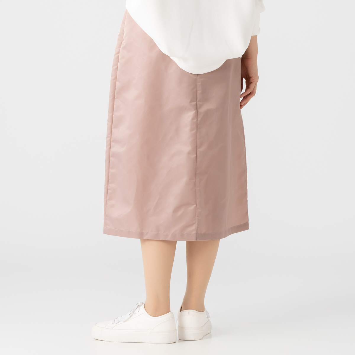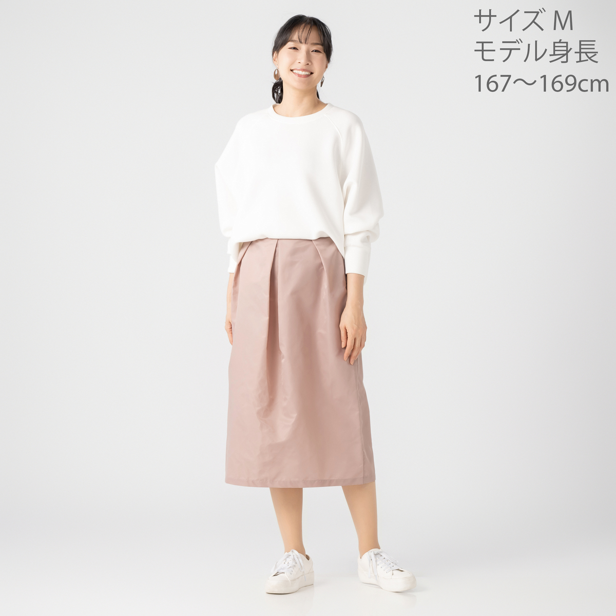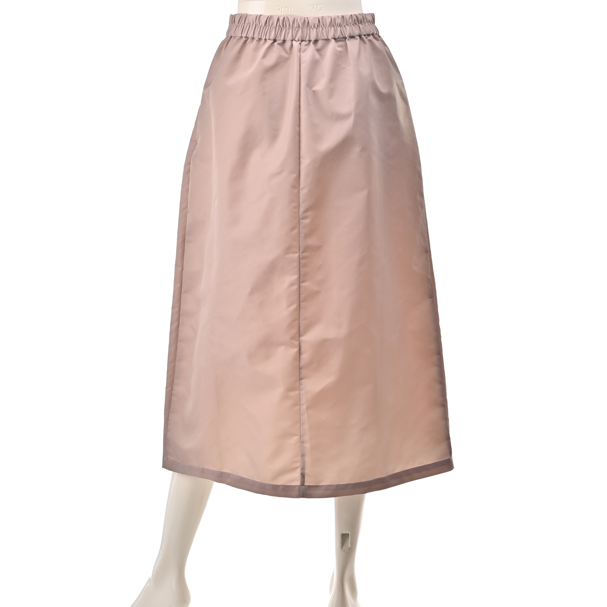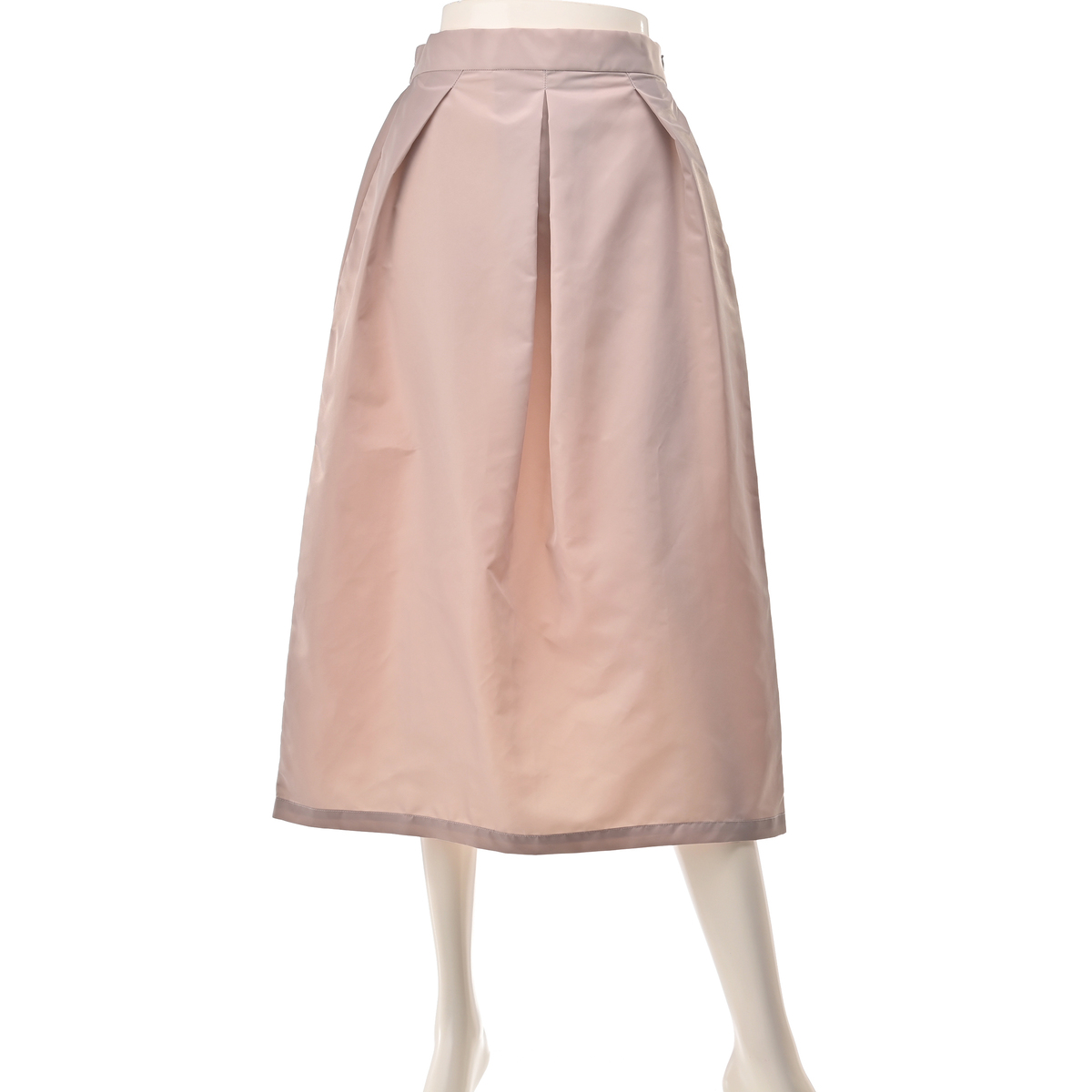 素材独特の光沢感がエレガントで上品な印象を与えてくれる、ウエストにタックを施したAラインのスカートです