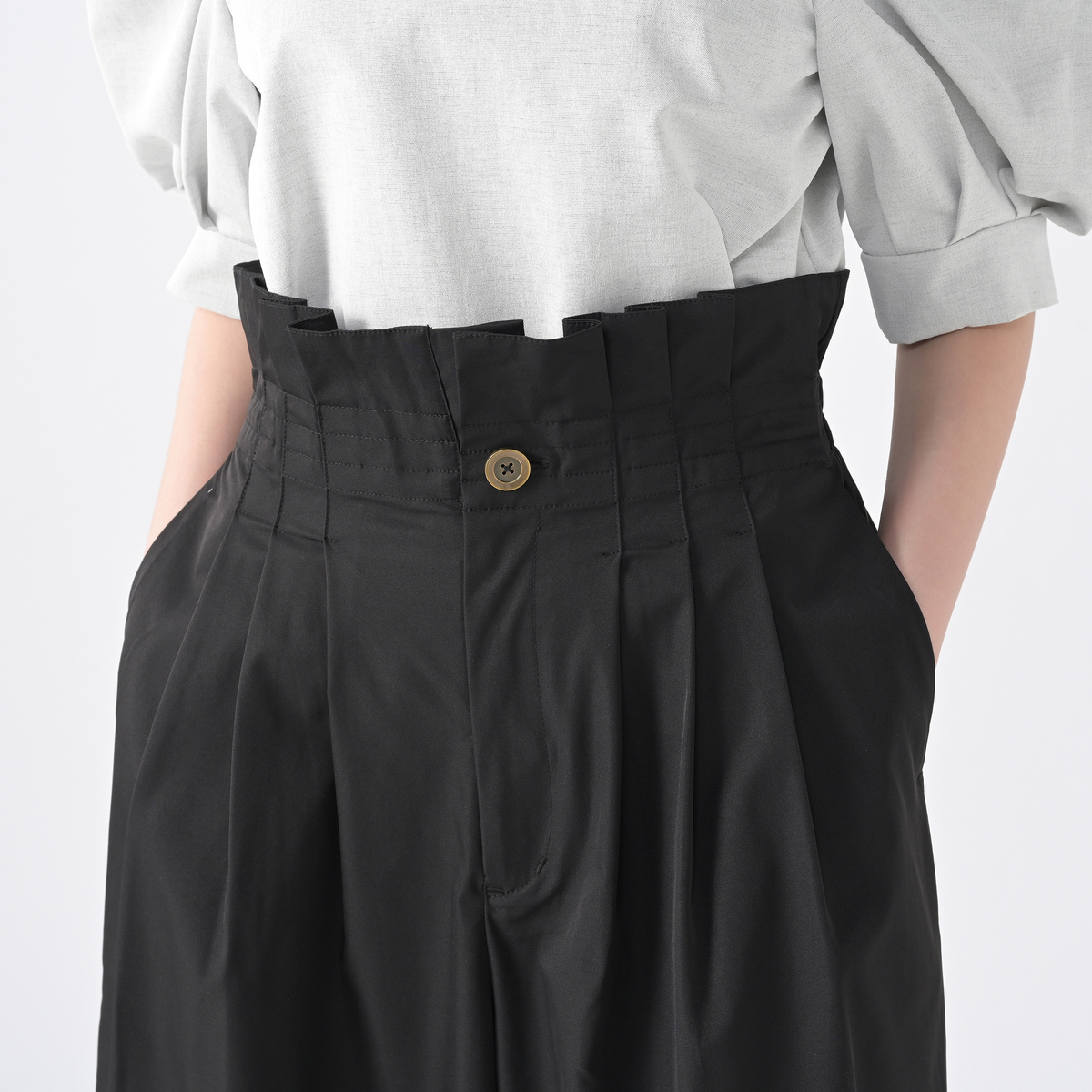 No. 751381 YukaKoshino ウエストフリルのタックワイドパンツ