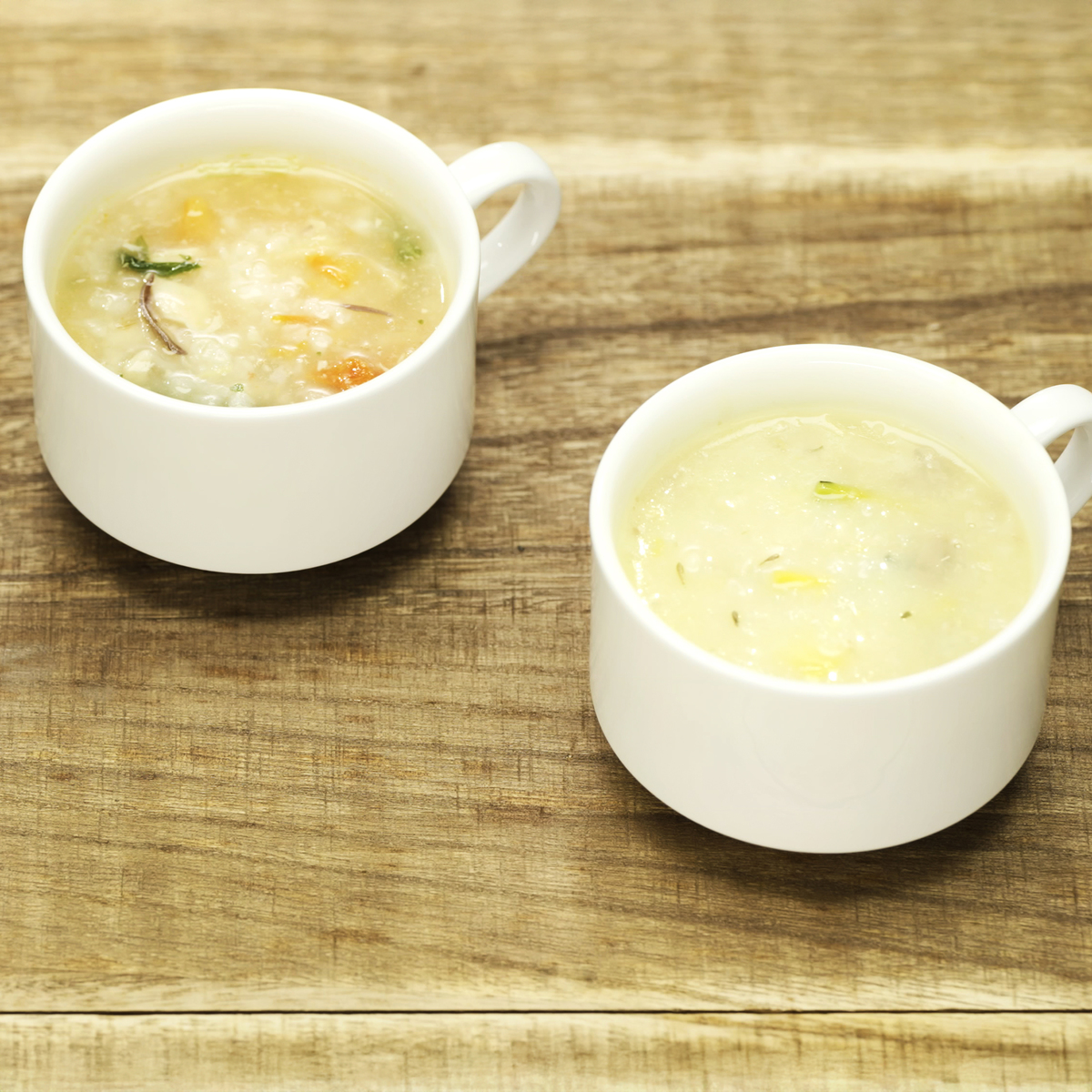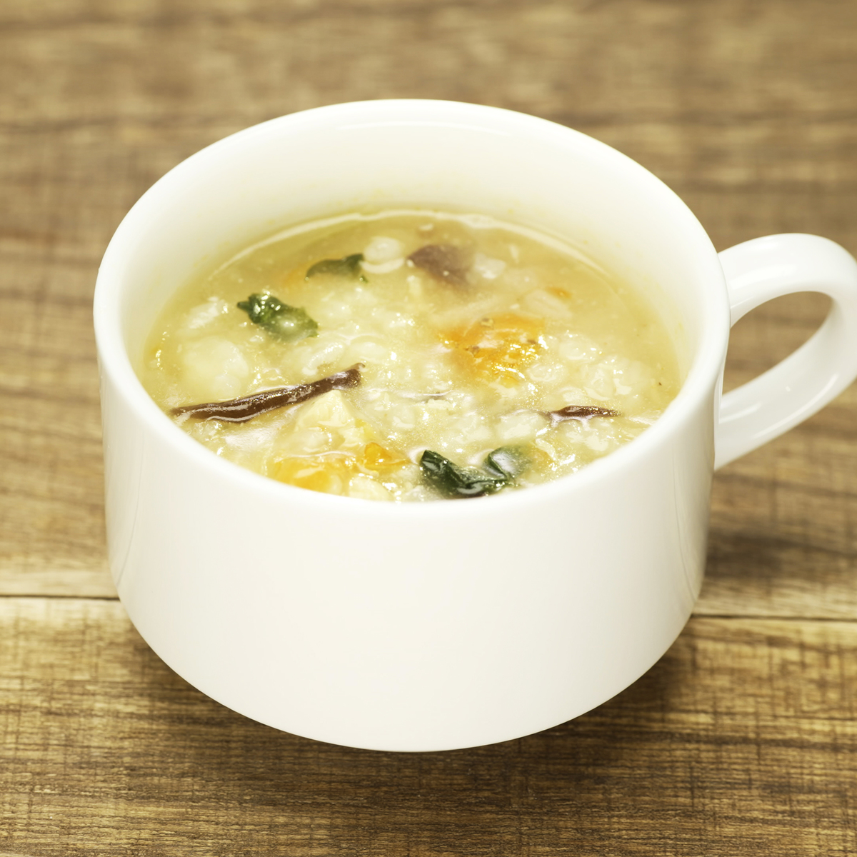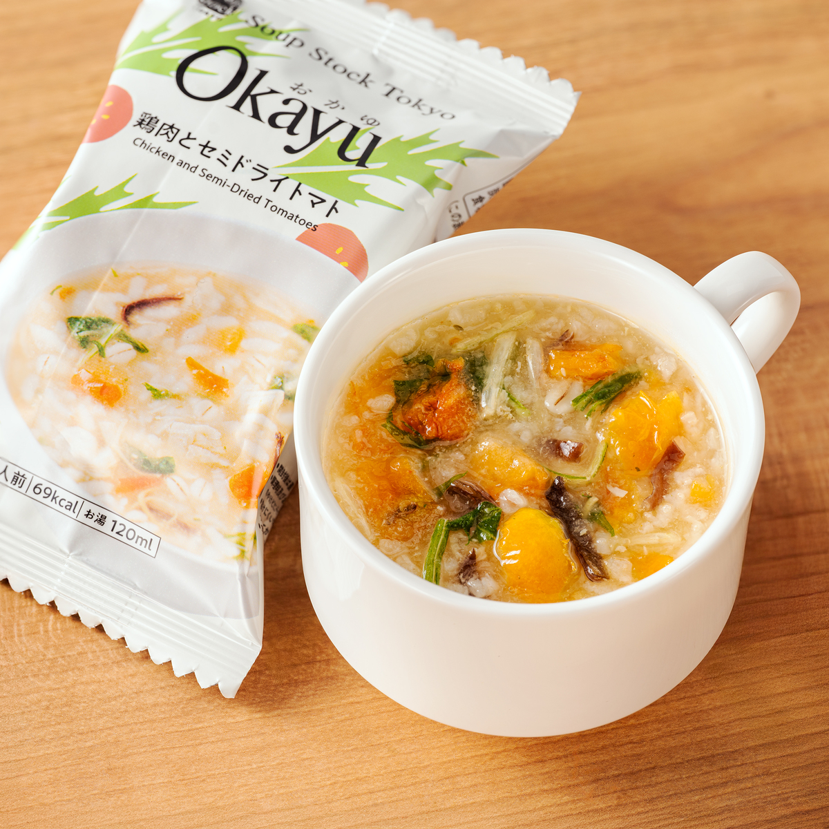[アレルギー物質特定原材料8品目] 小麦、乳 [商品内容] ・2種のきのことチーズ21.4g ・鶏肉とセミドライトマト17.4g 各4個/計8個 [賞味期限] 出荷時点で賞味期限まで120日以上ある商品をお届けします [保存方法] 開封前:直射日光および高温多湿の場所を避けて保存してください 開封後:開封後は直ちにお召し上がりください [お召し上がり方] ・器に中身を1ヶ入れます ・熱湯120mlを注ぎ、よくかき混ぜ、約2分で出来上がります [注意事項] ※調理時及びお召し上がりの際は、熱湯でのやけどに十分ご注意ください ※溶けにくい場合は、ブロックをほぐすようにかき混ぜてください ※パッケージの写真は盛り付け例とイメージです [原料原産地] 白飯(米(国産)) [原産国] 日本 [原材料] 2種のきのことチーズ:白飯(米(国産))、マッシュルーム、水煮まいたけ、濃縮乳、オートミール、チーズパウダー、デキストリン、でん粉、乾燥かぼちゃ、米みそ、野菜エキス、ポークエキス、大麦加工品、食塩、チキンエキス、チーズ、昆布エキス、バター、乾燥ゆず皮、香辛料/酸化防止剤(V.E)、(一部に小麦・乳成分・大豆・鶏肉・豚肉を含む) 鶏肉とセミドライトマト:白飯(米(国産))、蒸し鶏、ドライトマト、デキストリン、水菜、でん粉、生姜、チキンエキス、押麦、フライドオニオン、魚介エキス、生姜ペースト、ポークエキス、乾燥きくらげ、食塩、魚醤粉末、ごま油、香辛料/酸化防止剤(V.E)、(一部に小麦・ごま・鶏肉・豚肉を含む)