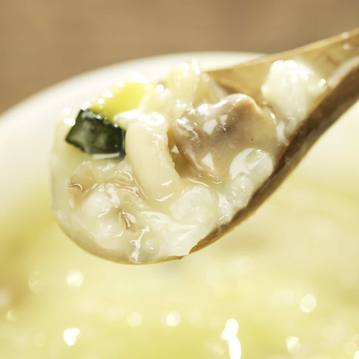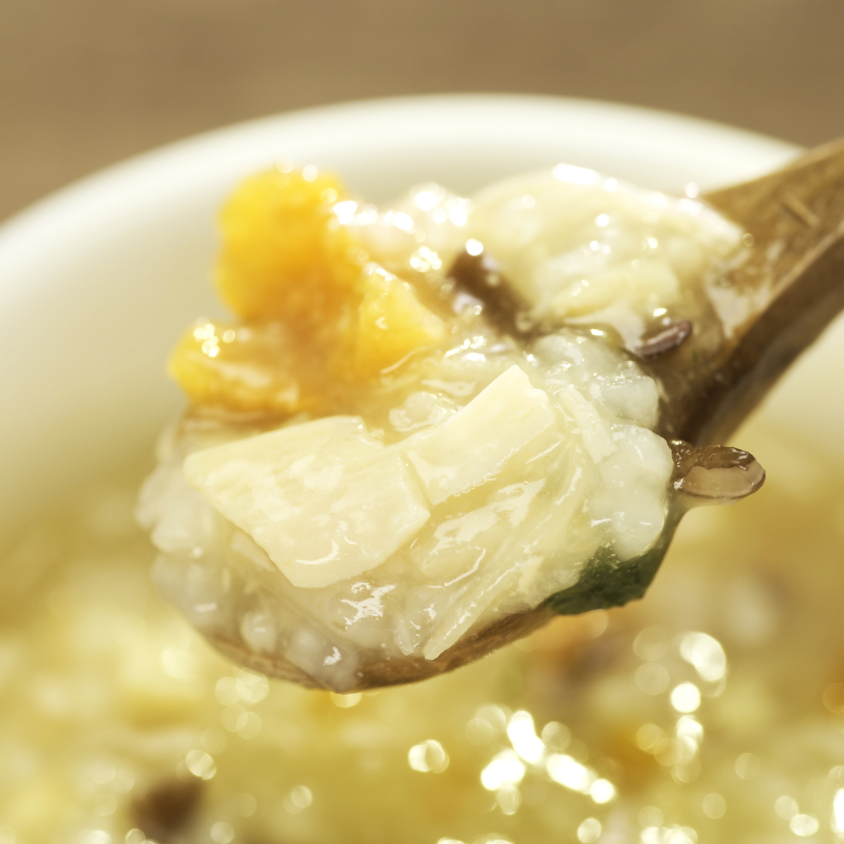 マッシュルームやまいたけ、かぼちゃの旨味をチーズがまとめたお粥です。柚子の風味が時折広がり、味のアクセントに。隠し味に味噌を使い、オートミールでとろみをだしました。腹持ちもよく、リゾットのような味わいを演出しています