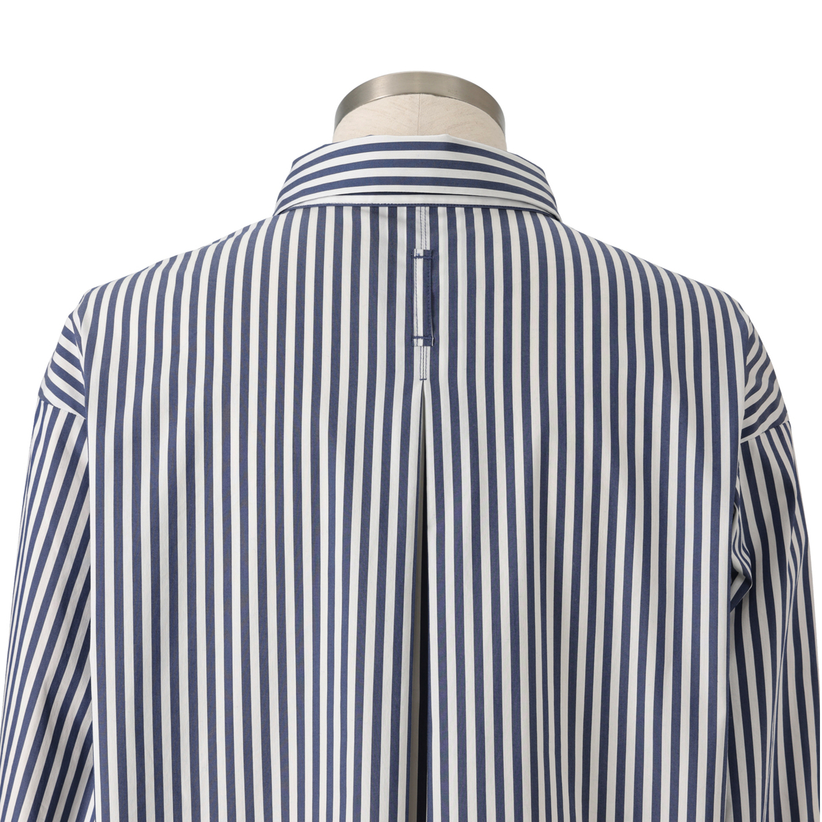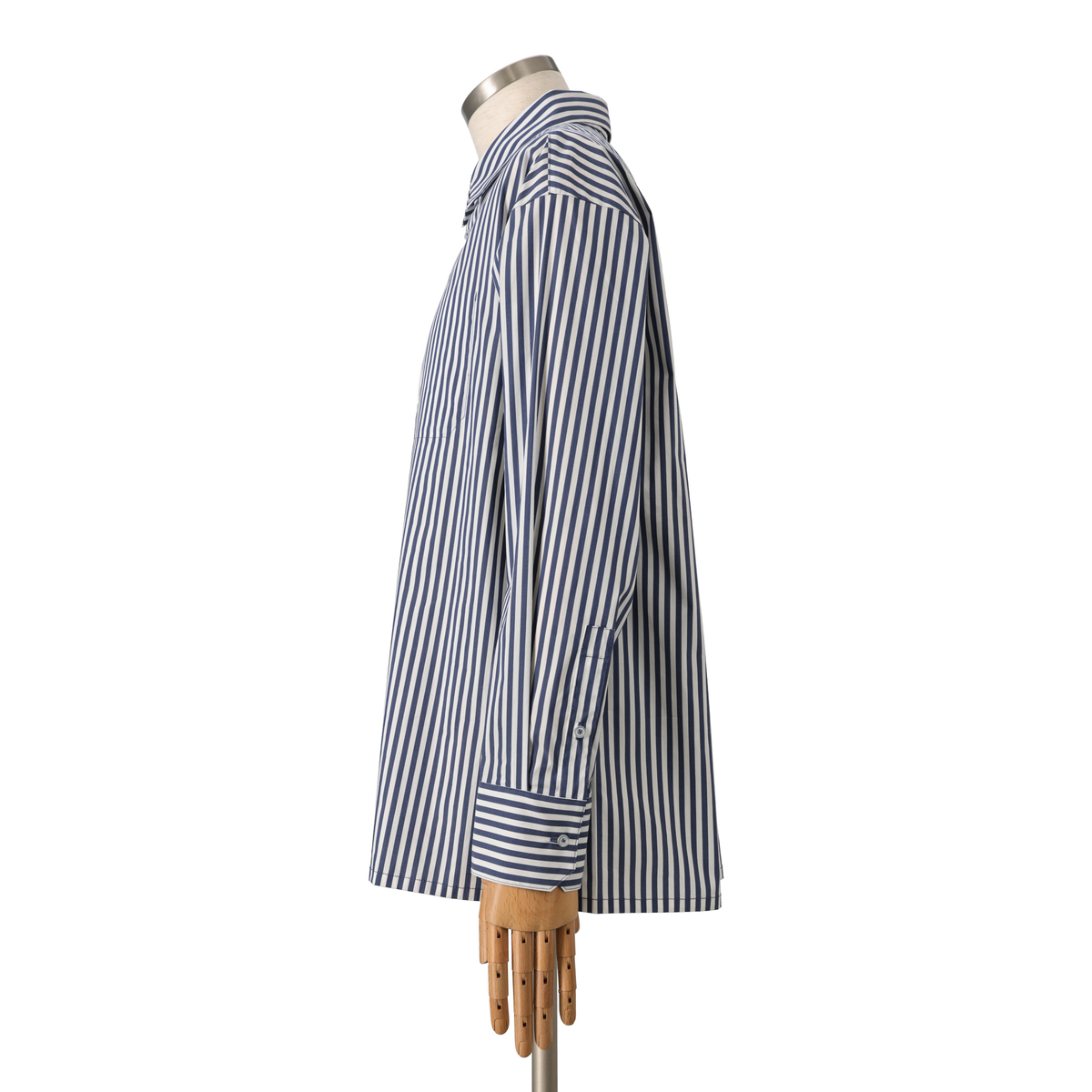 落ち着いた色合いのストライプが大人の空気を引き寄せるシャツ。ゆったりとしたシルエットで体をやさしく包み、リラクシングな着心地を楽しめます。左胸内側にポケットを備え、シンプルながら実用性も確保。合わせるアイテムを選ばず、日常にすっと馴染むデザインです