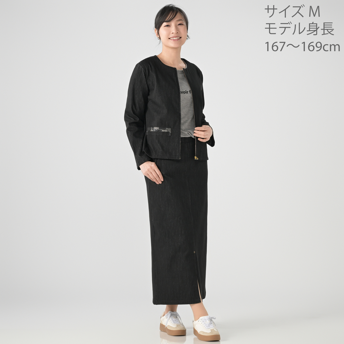 [商品寸法(ヌード)cm] サイズ バスト 着丈 肩幅 S: 98(72〜80) 53.5 40 M: 102(79〜87) 53.5 41 L: 106(86〜94) 53.5 42 LL: 112(93〜101) 55.5 43.5 3L: 118(100〜108) 55.5 45 4L: 124(107〜115) 57.5 46.5 サイズ 袖丈 S: 54 M: 55 L: 55 LL: 56 3L: 56 4L: 57 [素材] 綿65%、ポリエステル30%、ポリウレタン5% [お手入れ] 洗濯機洗い可 [注意事項] ※商品寸法の誤差は多少発生します。ご了承下さい ※洗濯の際は裏返しにし、洗濯ネットを使用して下さい ※淡色製品には蛍光増白剤入り洗剤を使用しないで下さい ※洗濯後はすぐに脱水し、形を整えて干して下さい。長時間水につけたままにしないで下さい ※直射日光や蛍光灯の影響で変色することがありますのでご了承下さい ※濃色製品は着用中の摩擦により色移りすることがあります。また、雨や汗等で濡れた状態で着用すると色移りすることがあります。その際はお早めに洗濯をして下さい ※素材の特性上、着用や洗濯・クリーニング時の摩擦により毛羽立ち、毛玉が発生します。その際はお早めに毛玉取り器等で手入れをして下さい ※洗濯やクリーニングにより徐々に色あせします。また、色落ちすることがありますので、他の物と分けて洗って下さい ※付属部分にアイロンを当てないで下さい 【中国製】