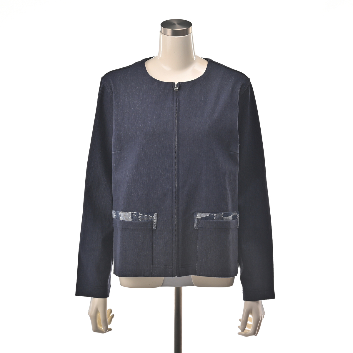 No. 751397 エニワイズ ニットデニムのノーカラーショートジャケット