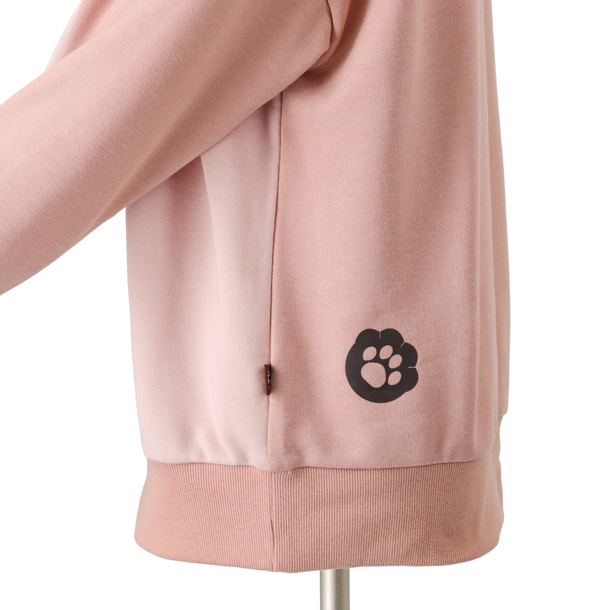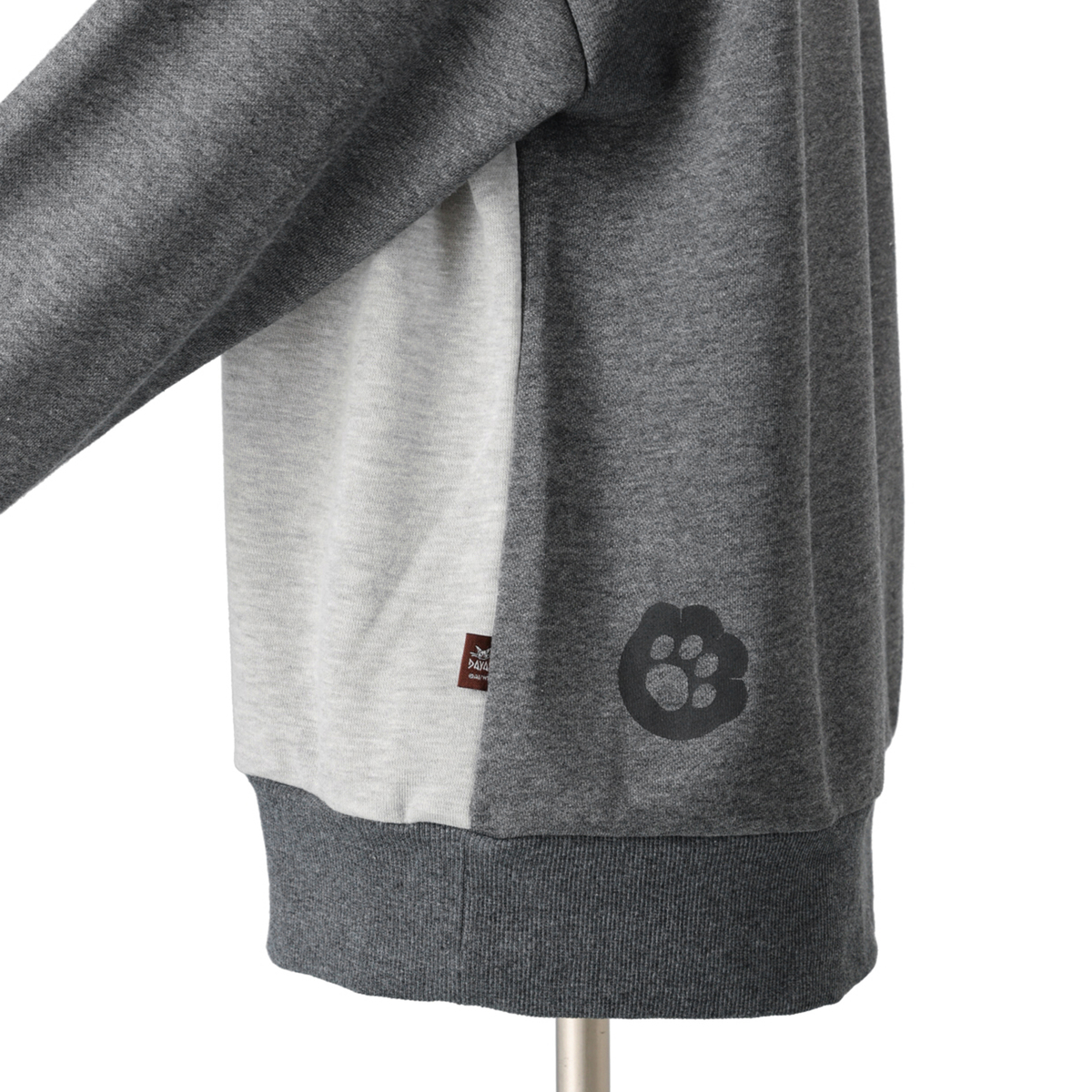 ほおづえをついたダヤンをロゴ刺繍と共にプリントし、後ろ身頃には肉球を添えた遊び心あるデザイン。袖後ろから背中にかけた濃色の配色切替が、着用時の印象をすっきり見せるポイントです