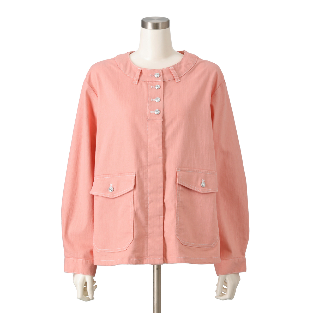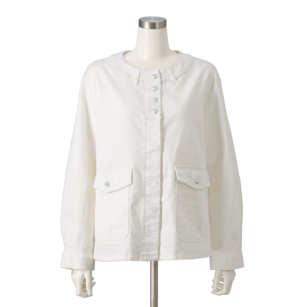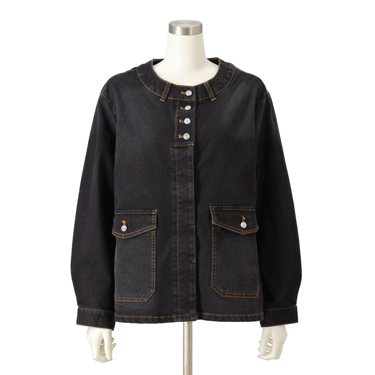 中肉のストレッチデニムを使用したノーカラージャケット。洗い加工による自然な風合いが魅力です