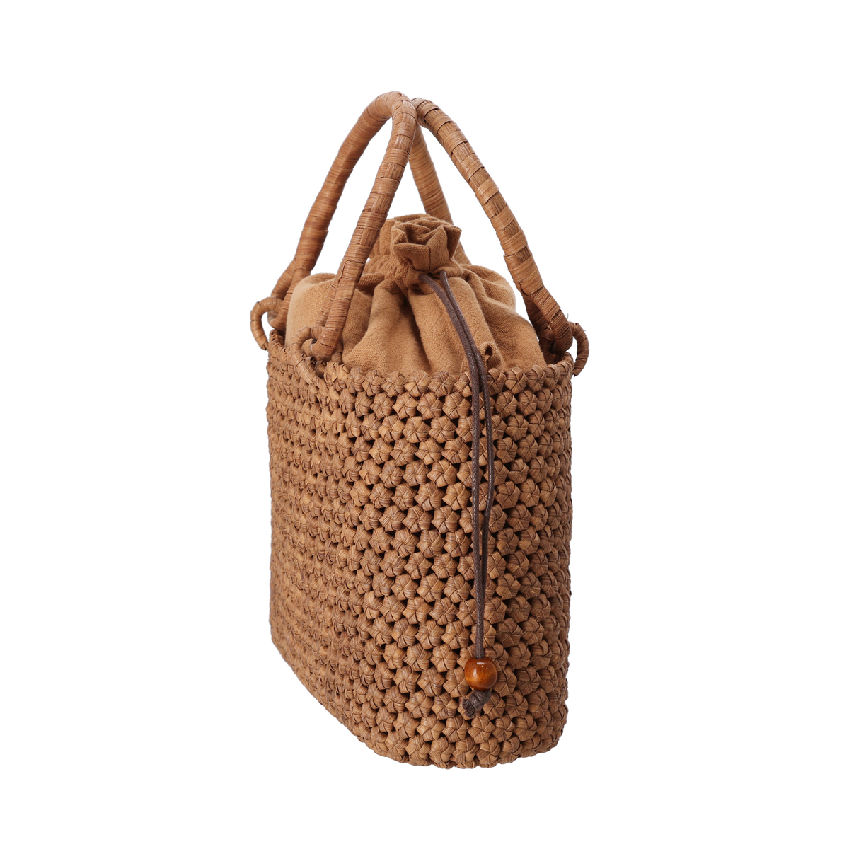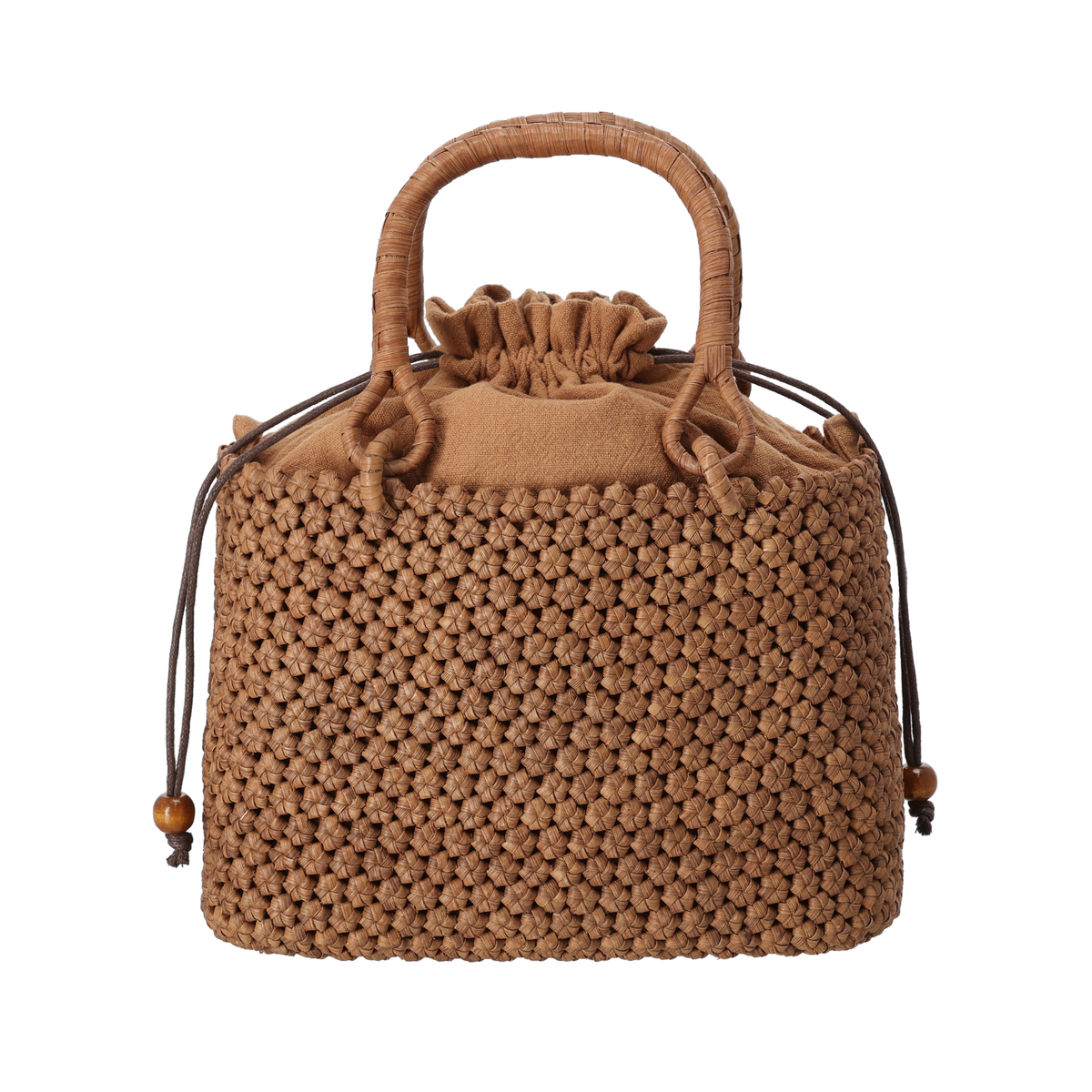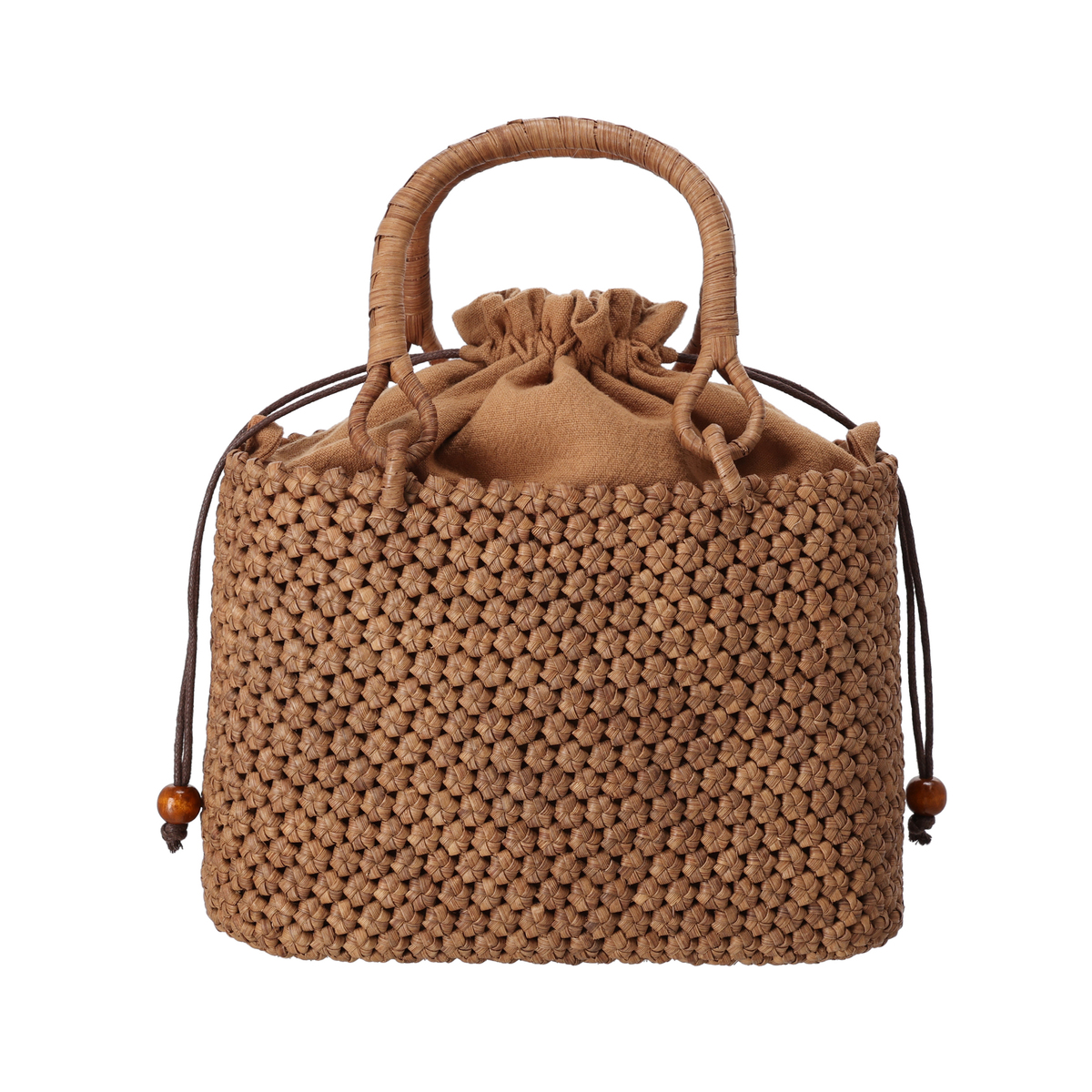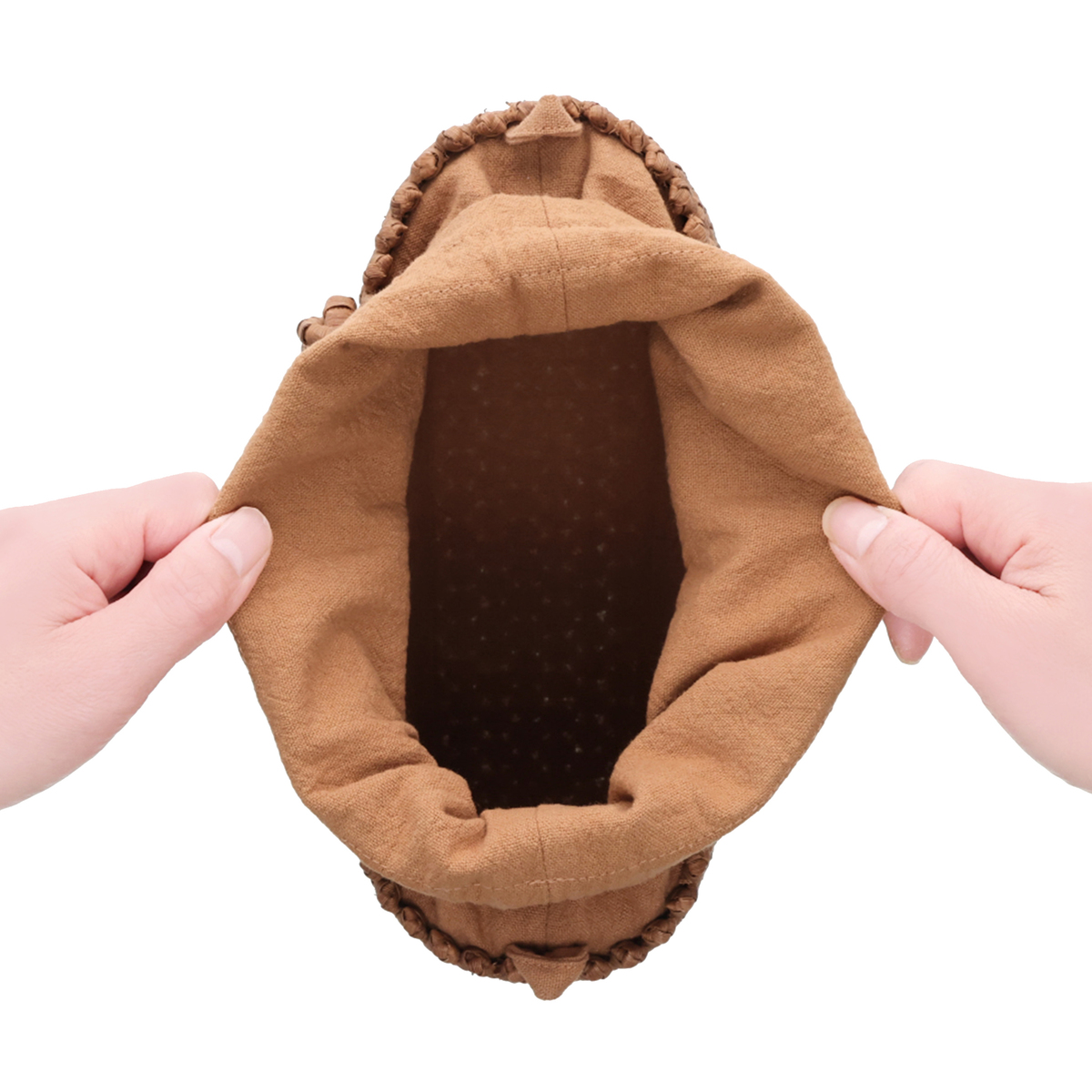 [サイズ(約)] 縦17×横21.5×マチ9.5cm ハンドル立ち上がり:11.5cm ショルダー立ち上がり:50〜59.5cm [重量(約)]※付属品含む 465g [素材] 表地:山葡萄蔓 裏地:レーヨン、麻、綿 [仕様] 付属(取り外し可):ショルダーストラップ×1 開閉:巾着式 底ビョウ:無 [ポケット] 内側:ファスナーポケットx1、オープンポケットx2 外側:無 [注意事項] ※山葡萄の樹皮の細かな戦士がまだ馴染んでおらず、柔らかな生地の着物や洋服などに擦れや、ひっかかる場合がございます。お使いいただくうちに、馴染み、滑らかになってまいりますので、それまでは注意してご使用下さい ※内布にペットボトルなどの水滴が付きますと滲んでしまう場合がありますのでご注意ください ※“ささくれ”が出た際は、爪切りやハサミで根元から切るようにしてください。手で撫でてあげることで次第に色艶が増していきますので毎日のように撫でて育ててあげてください。色艶が出てくるとささくれも無くなり、より丈夫に育ってくれます 【中国製】