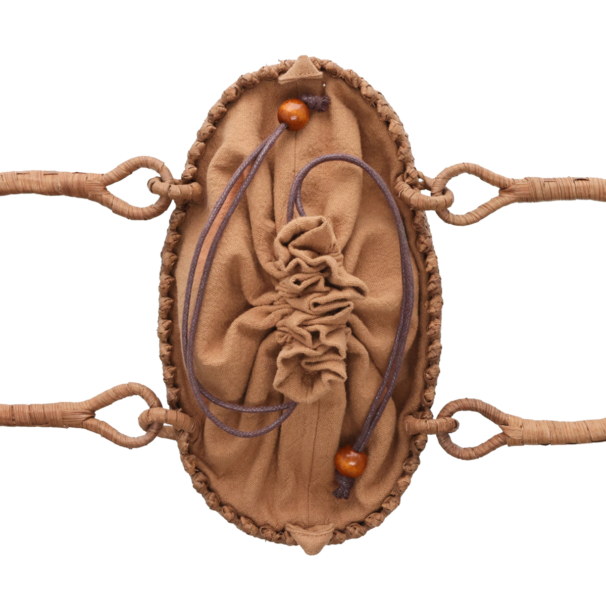 年月が経つに連れて色艶が増し、蔓全体がアメ色に変化していく山葡萄バッグ。原料は山葡萄の蔓(つる)。バッグの蔓に適するものになるまでに長い年月がかかるといわれています。巾着タイプで使いやすく、内側に折り込めば巾着を閉じることなくご使用可能です