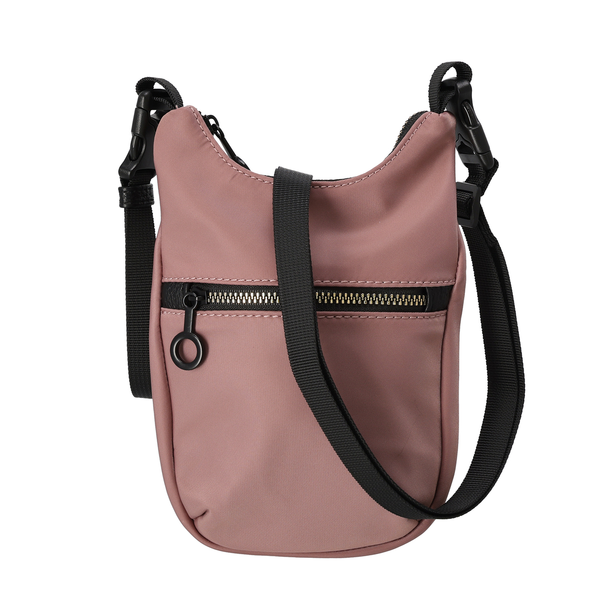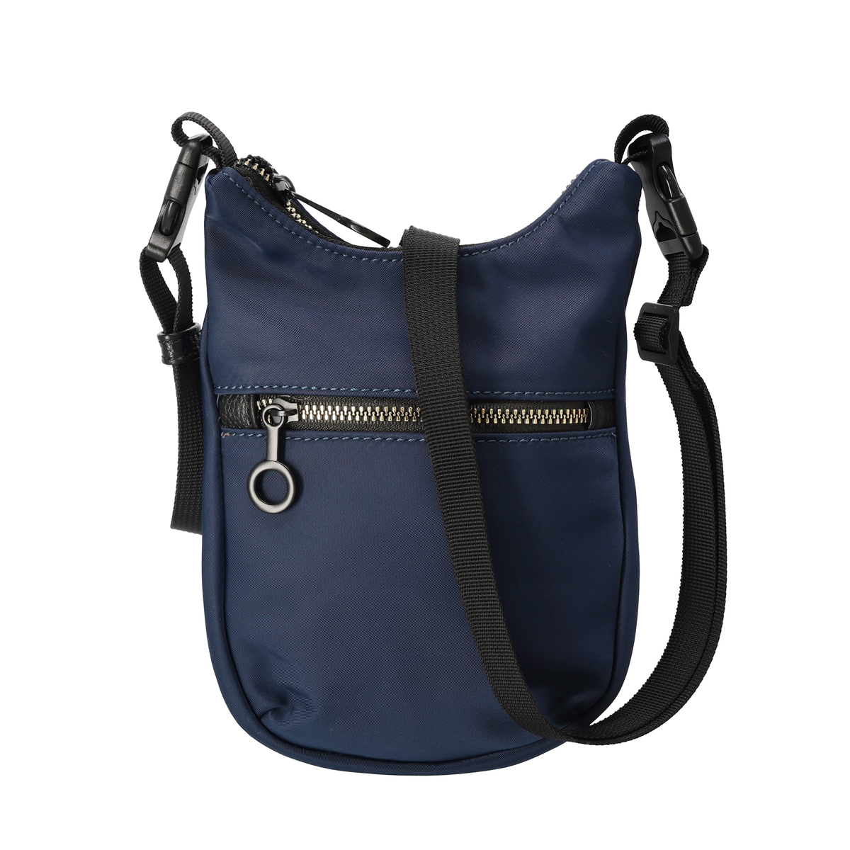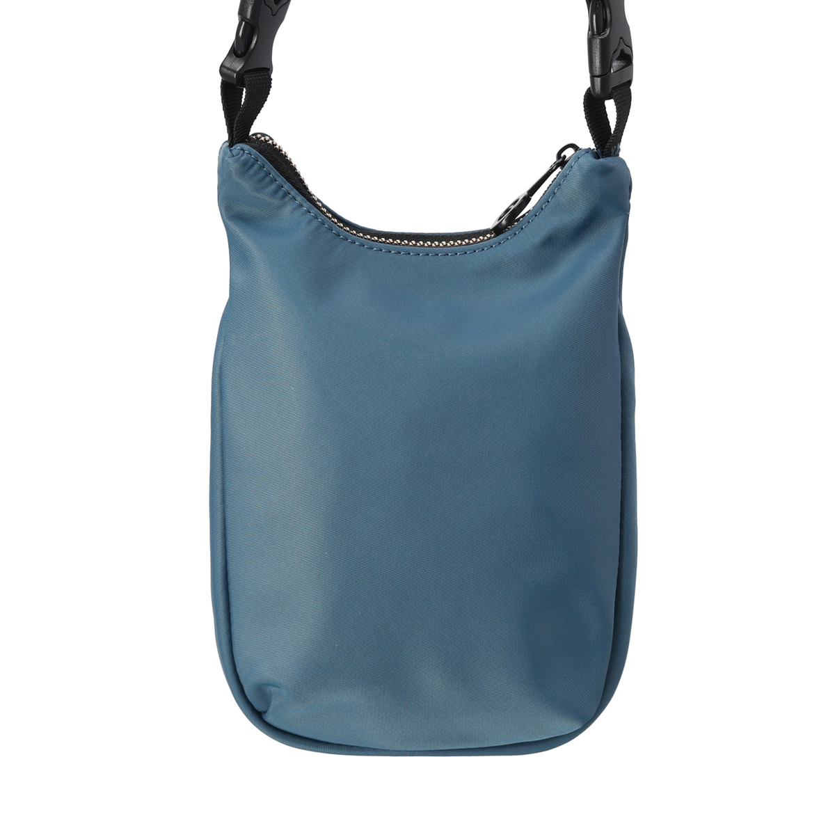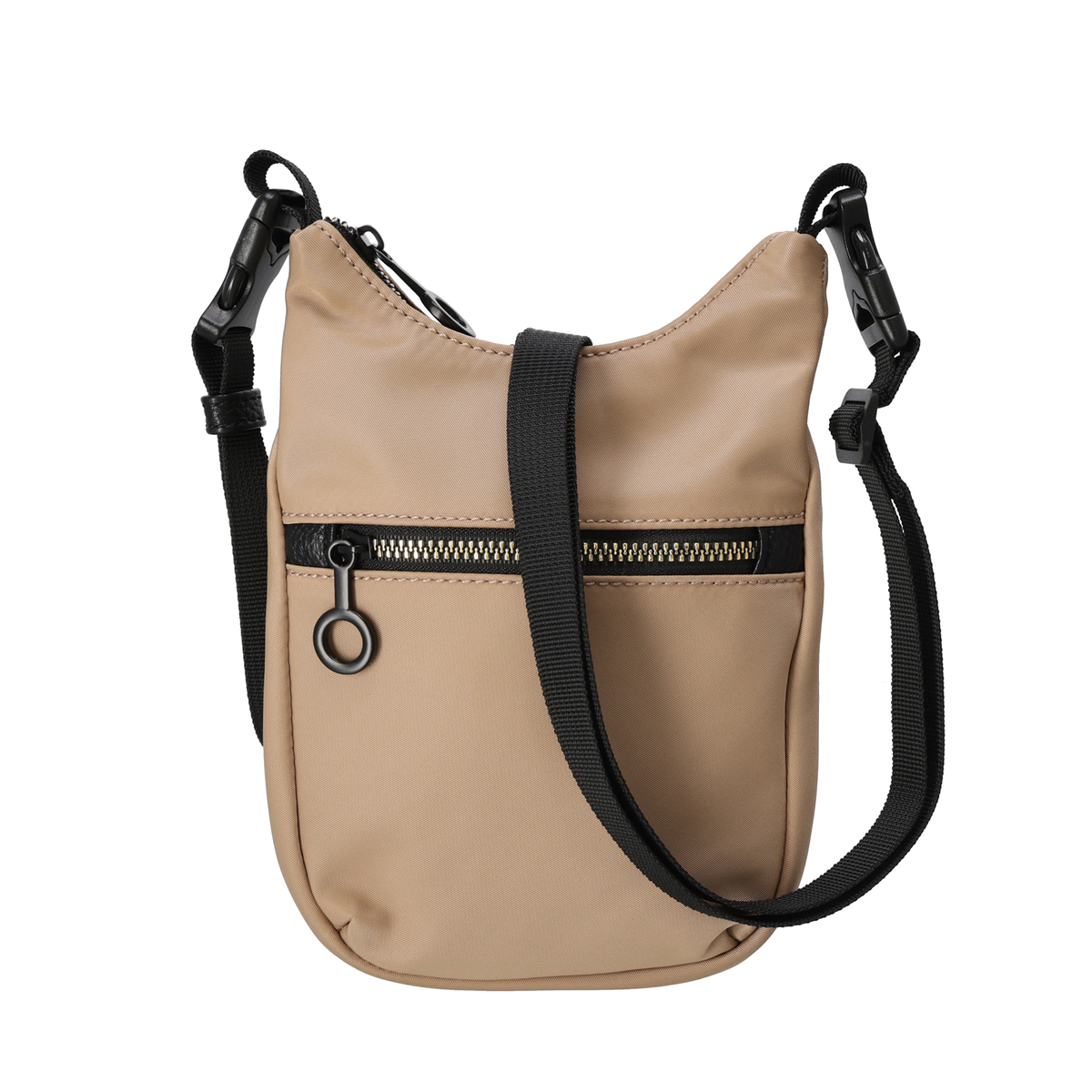 表地に撥水ナイロンを使用したポシェット。ショルダーベルトはプラスチックバックルで着脱でき、短くすることで他のバッグにチャームとして付けることも可能です