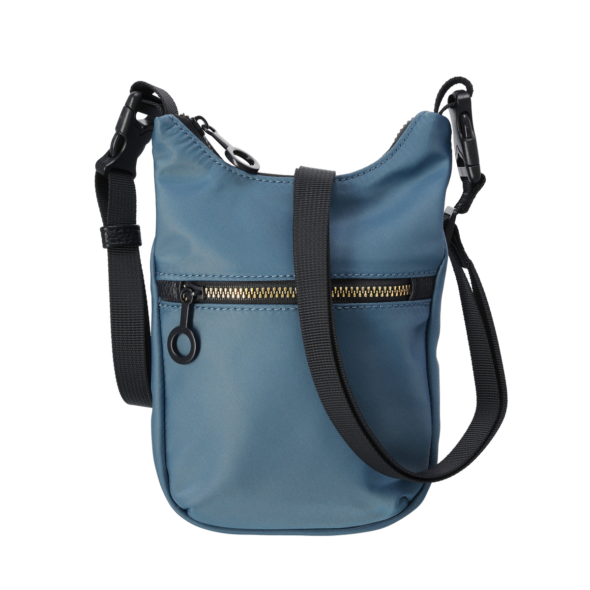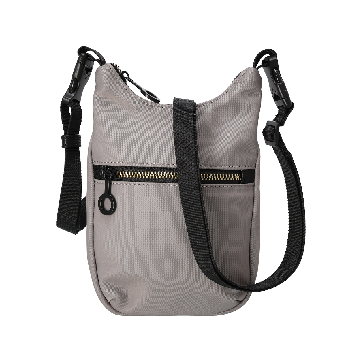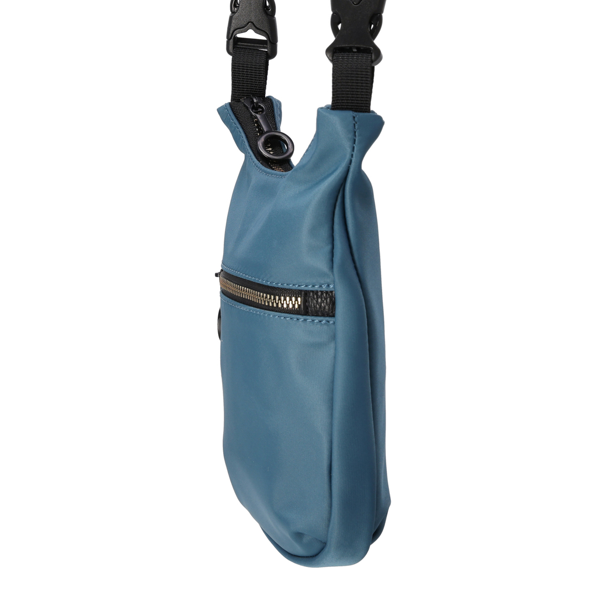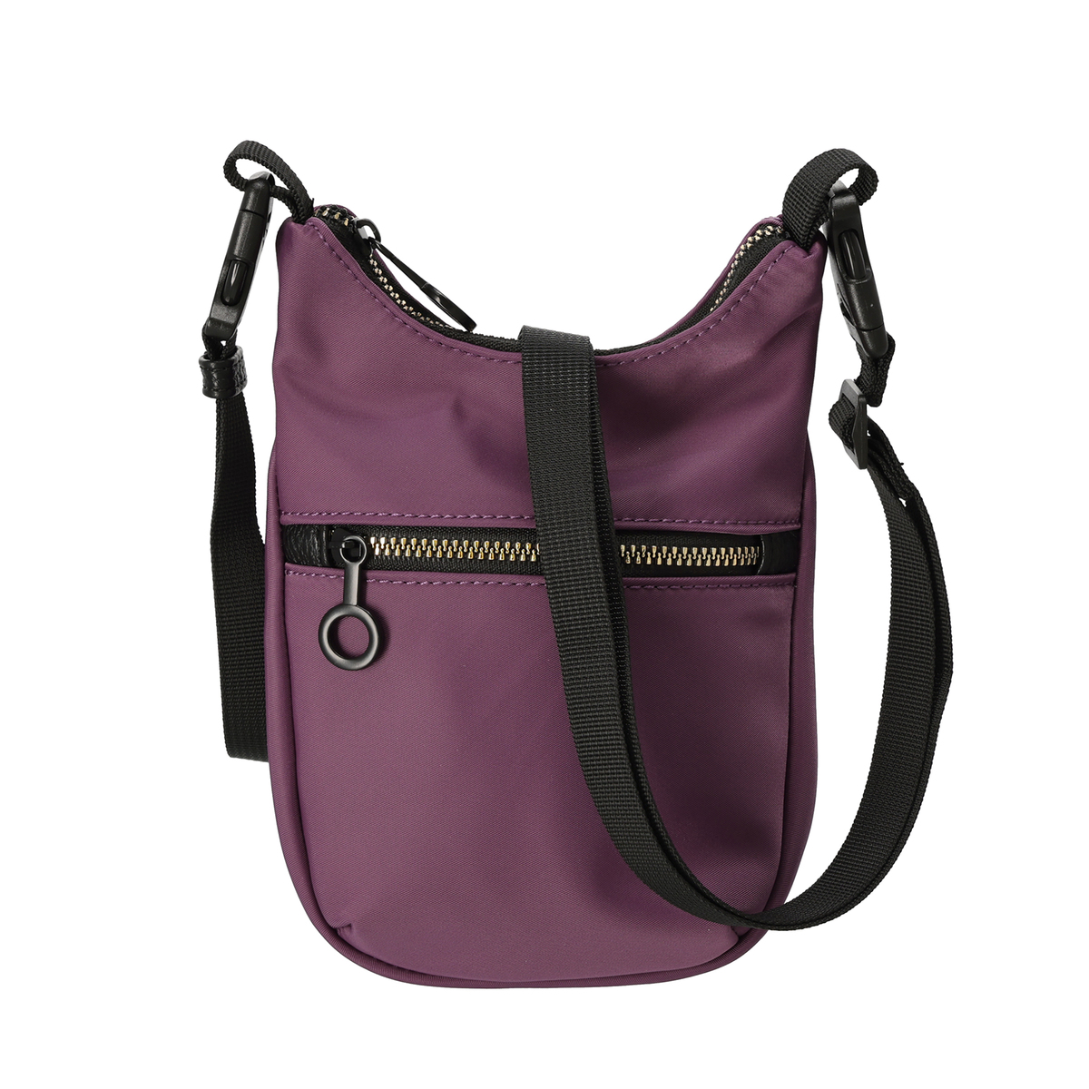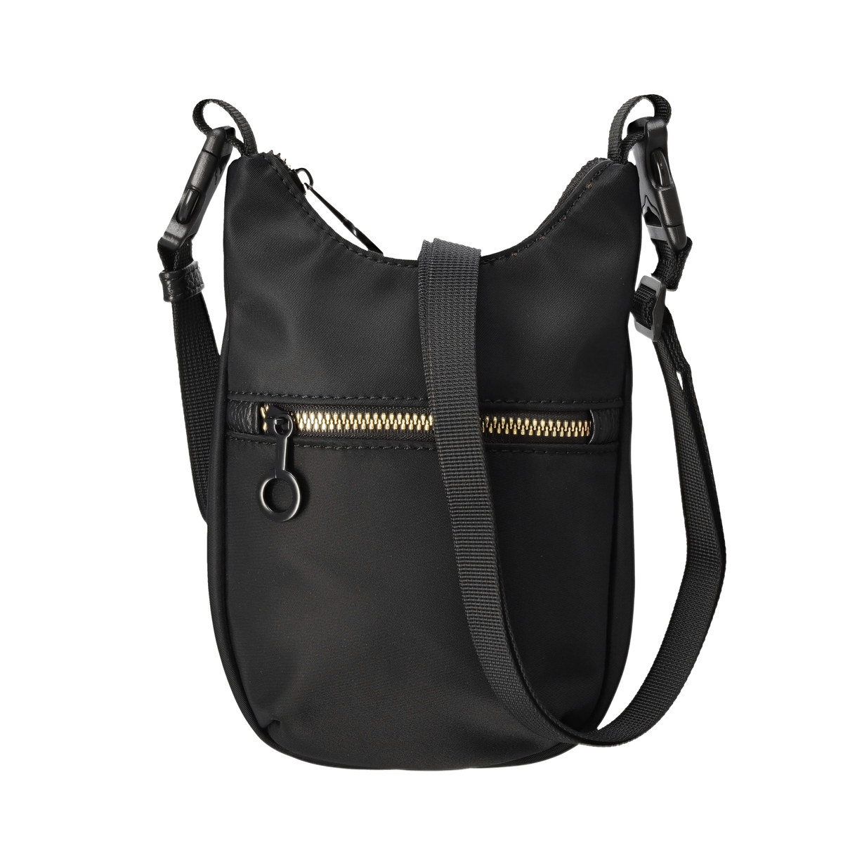 表地に撥水ナイロンを使用したポシェット。ショルダーベルトはプラスチックバックルで着脱でき、短くすることで他のバッグにチャームとして付けることも可能です