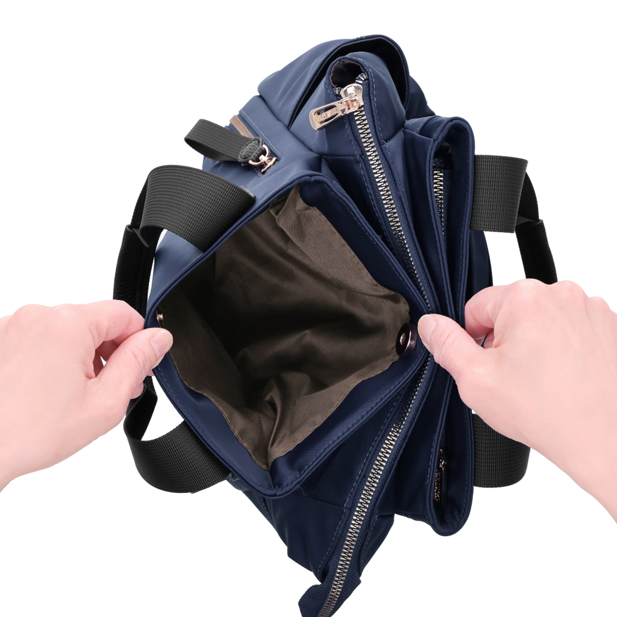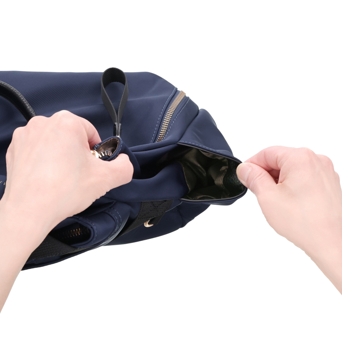 ゴールド系カラーの金具がアクセントになり、上品さと実用性を兼ね備えたデザイン。収納力のある便利な2WAY仕様で、忙しい毎日に頼れるアイテムです